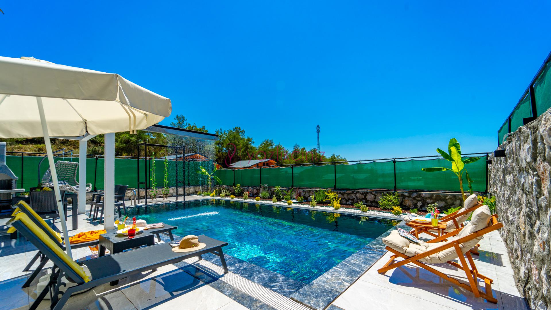 Özel bahçe içerisinde, Boyu 11 m Eni 4 m Derinlik: 150 cm ölçülerinde özel yüzme havuzu yer almaktadır.