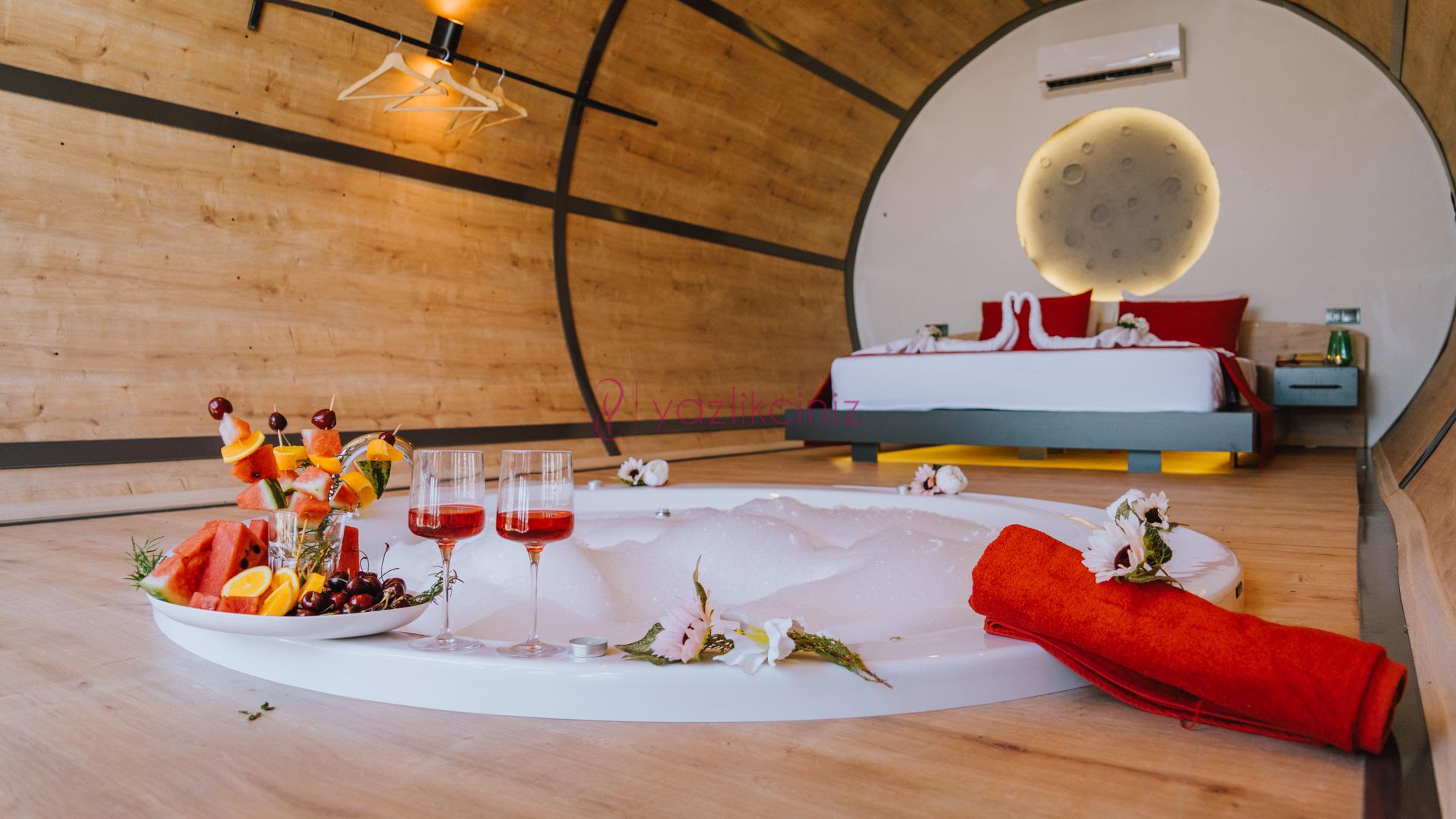 1.Yatak Odası: 1 adet çift kişilik yatak, jakuzi, klima bulunmaktadır.