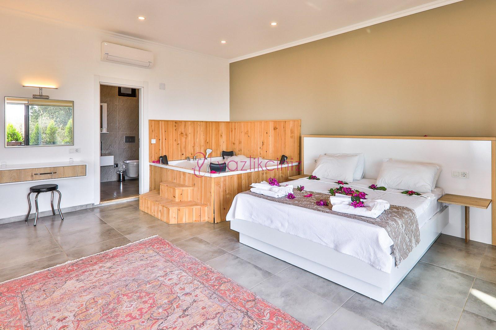 Yatak Odası - 1 (Süit-Aile) : Çift Kişilik Yatak, Klima, Jakuzi, Banyo, Elbise dolabı, komodin.