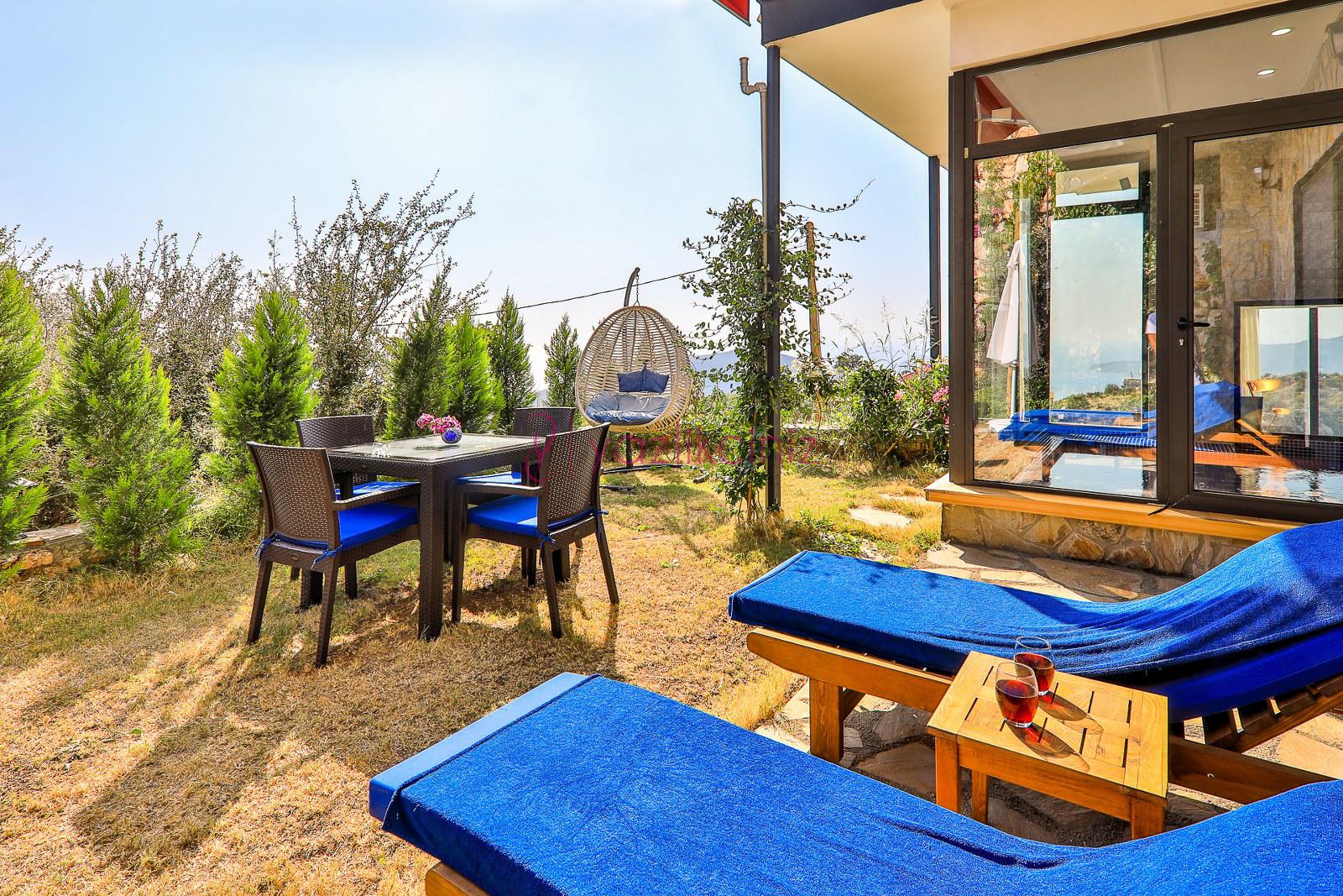 Bahçe içerisinde özel yüzme havuzu, şezlonglar, güneş şemsiyesi, bahçe mobilyaları, barbekü bulunmaktadır.