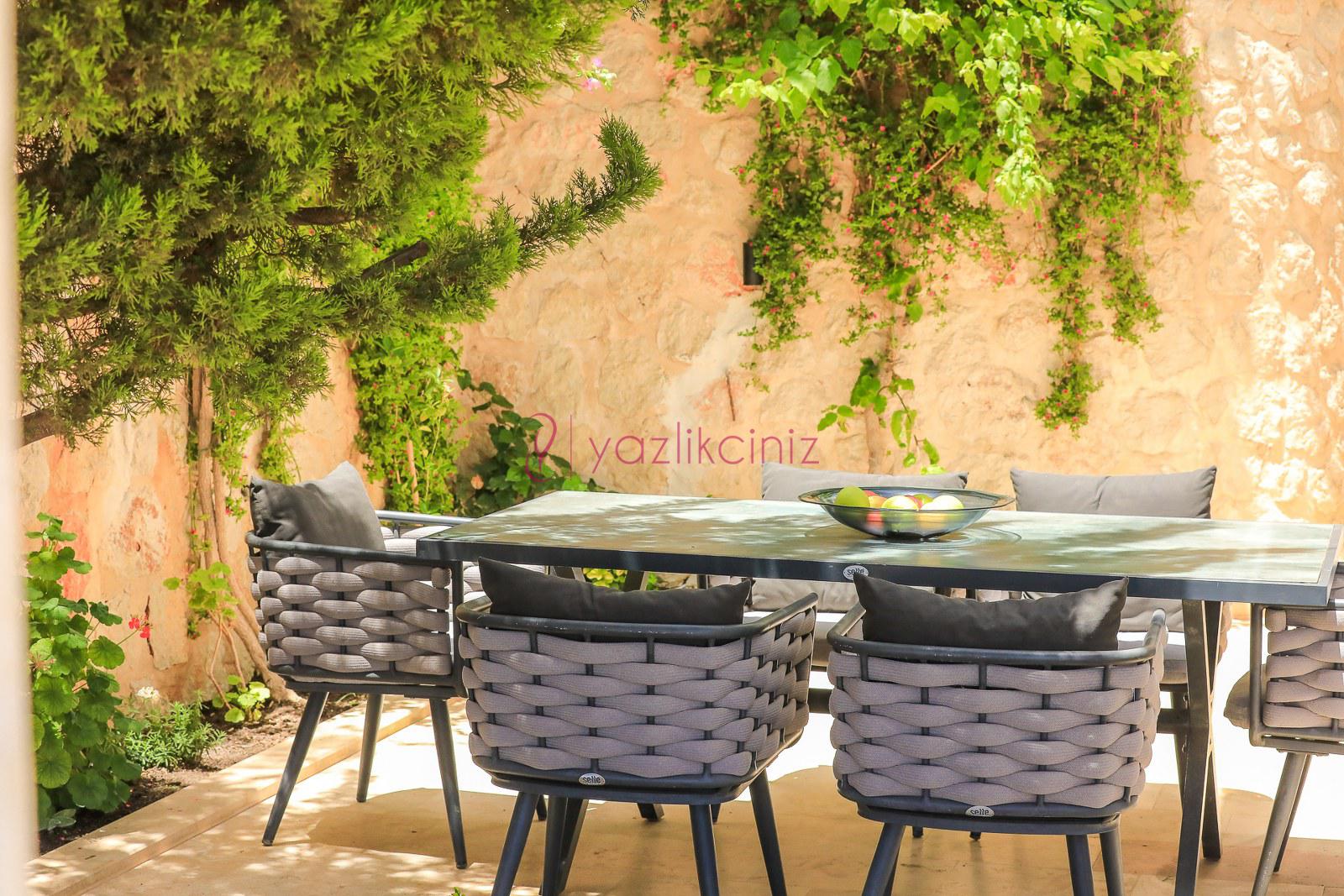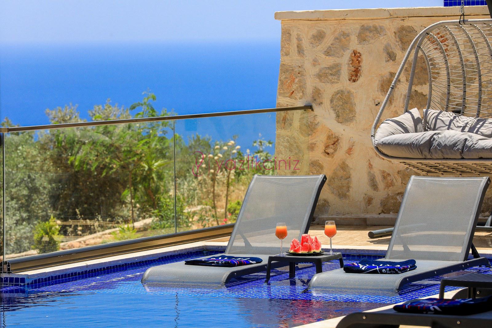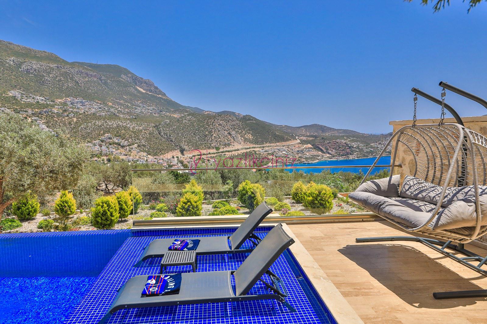 Özel yüzme havuzu, sezlong, semsiye, oturma grubu,salıncak bulunmaktadir.