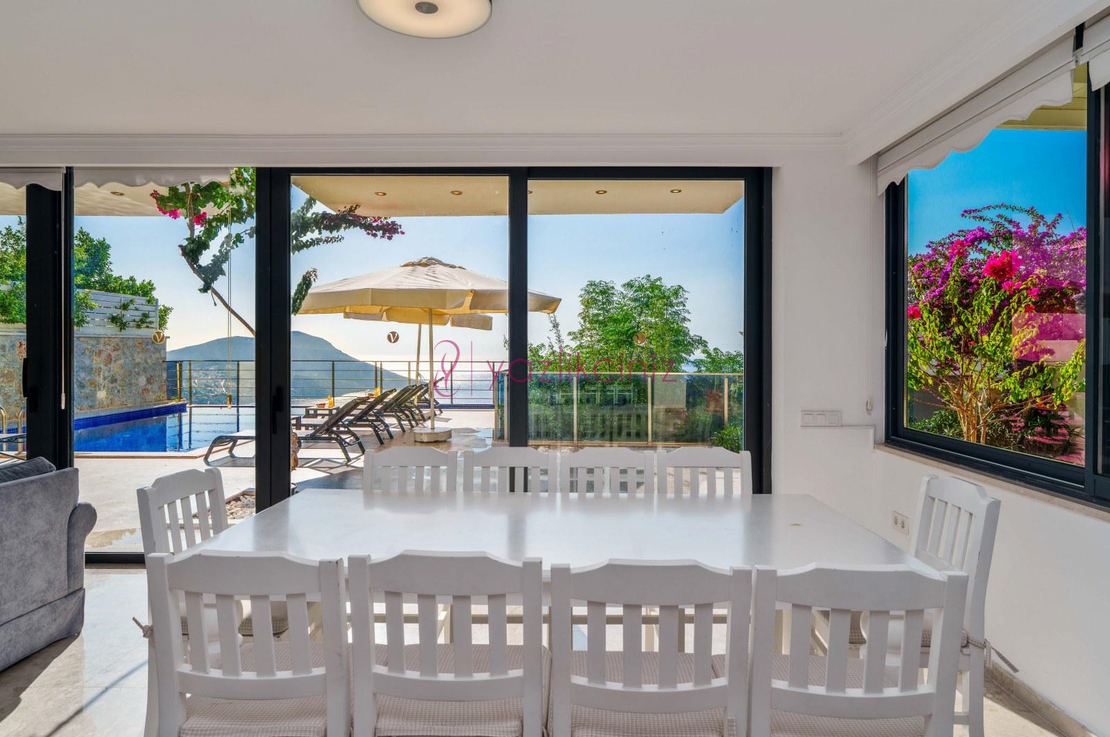 Deniz manzaralı (Zemin Katta) Modern Oturma grubu, Uydu Televizyon, Klima, Yemek Masası, Tuvalet, Havuz kenarına çıkış bulunmaktadır.