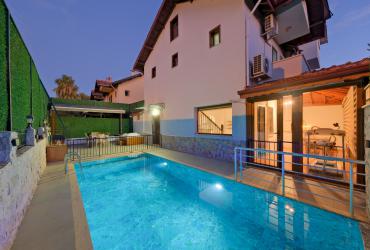 Villa Ramos 4, Fethiye Yanıklar bölgesinde konumlanmış 2 yatak odalı, kendine ait havuzu olan bahçeli ve açık jakuzisi olan kiralık villadır. Villamız site içerisinde konumlanmış olup kalabalık aile ve arkadaş gruplarımız için alternatif villa seçenekleri sunmaktadır. Villalarımız Karaot Plajına 2.2 km mesafede olup doğa ile iç içe huzurlu tatilin kapılarını aralamaktadır.