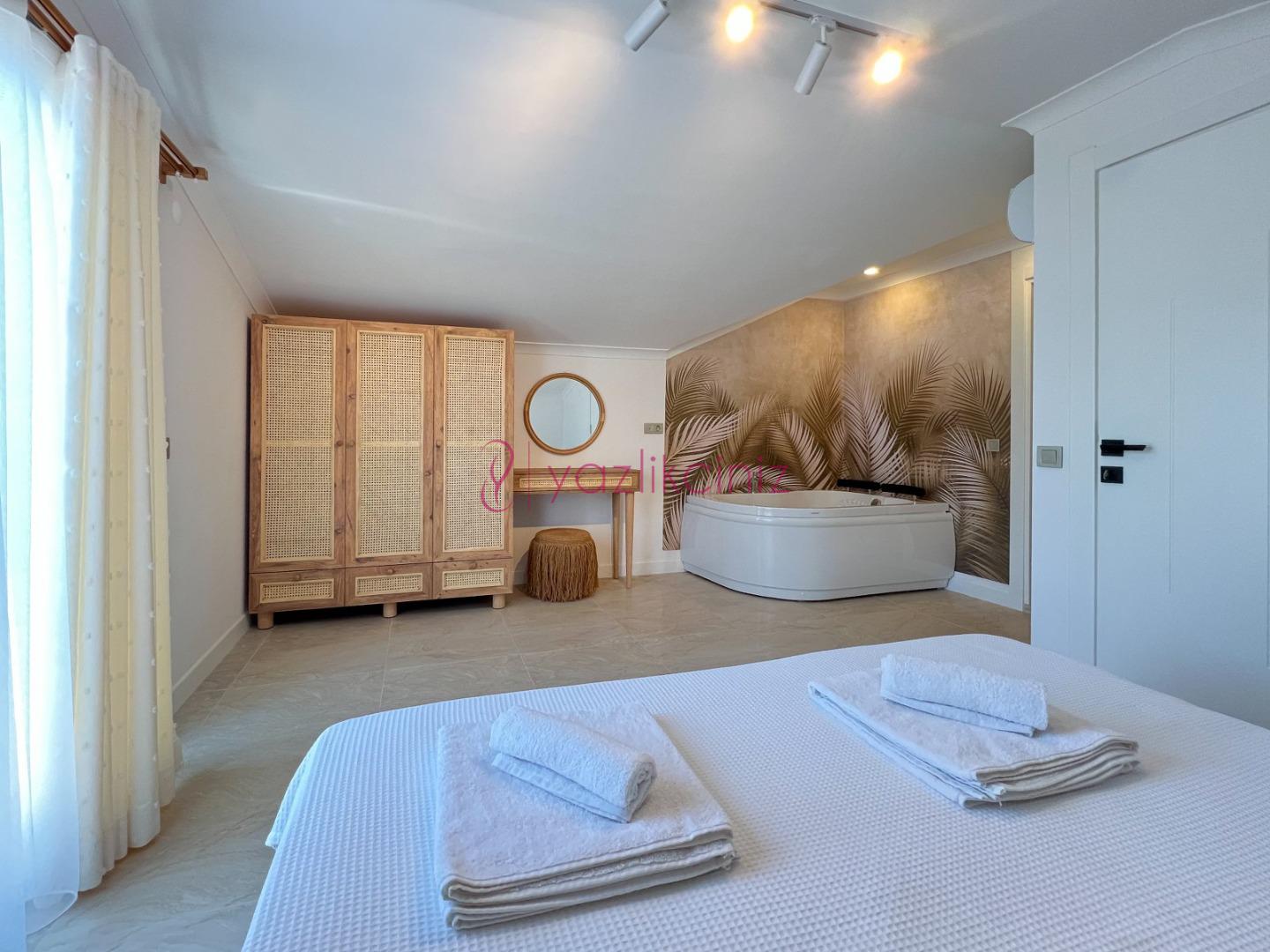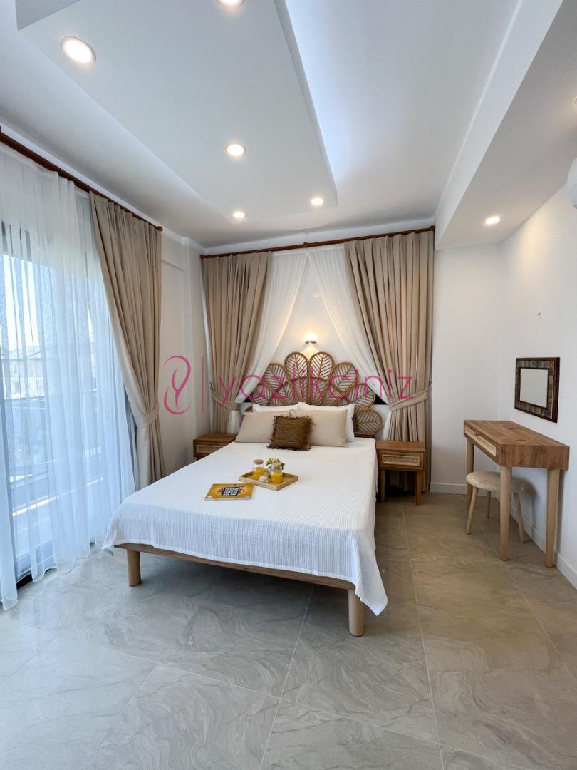 Yatak odası 1: Çift kişilik yatak, klima, komodin, elbise dolabı , makyaj masası, banyo ve tuvalet bulunmaktadır.