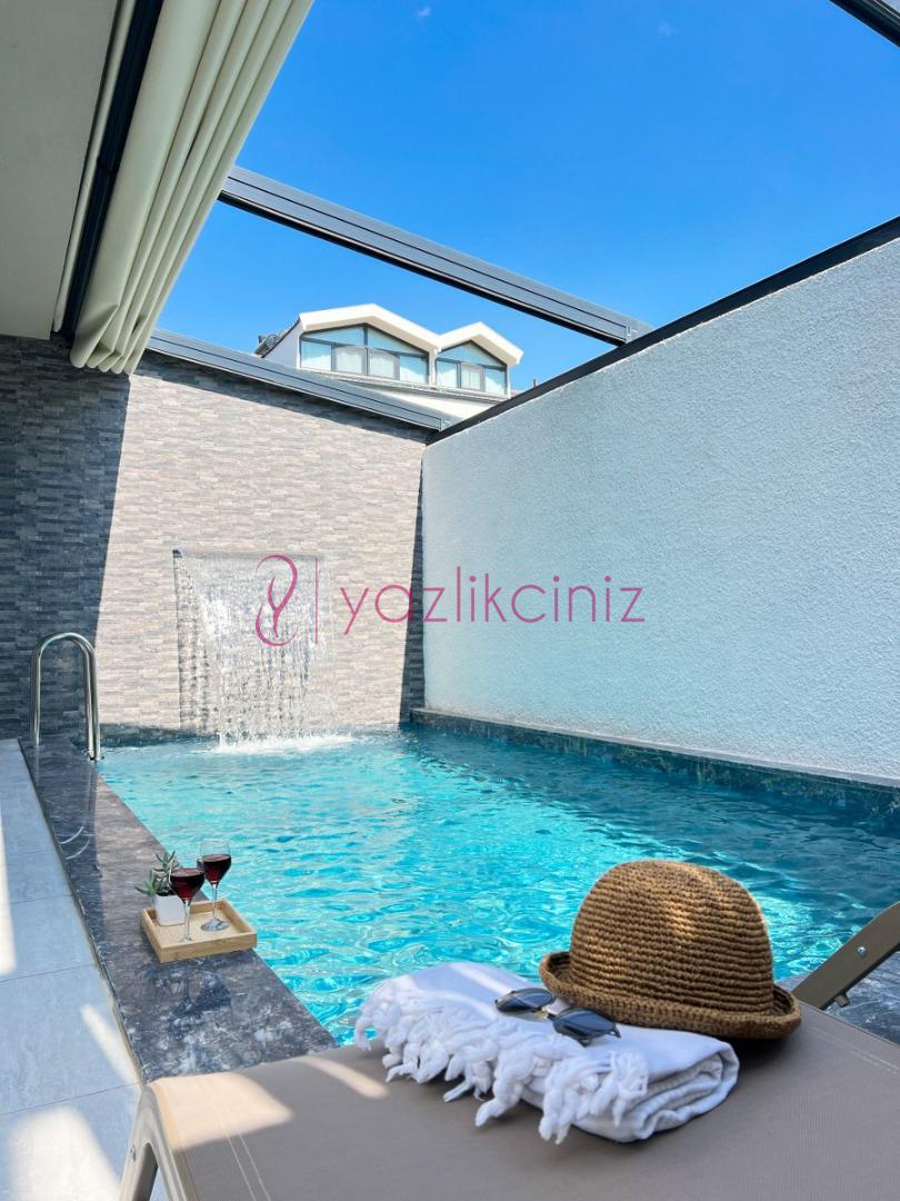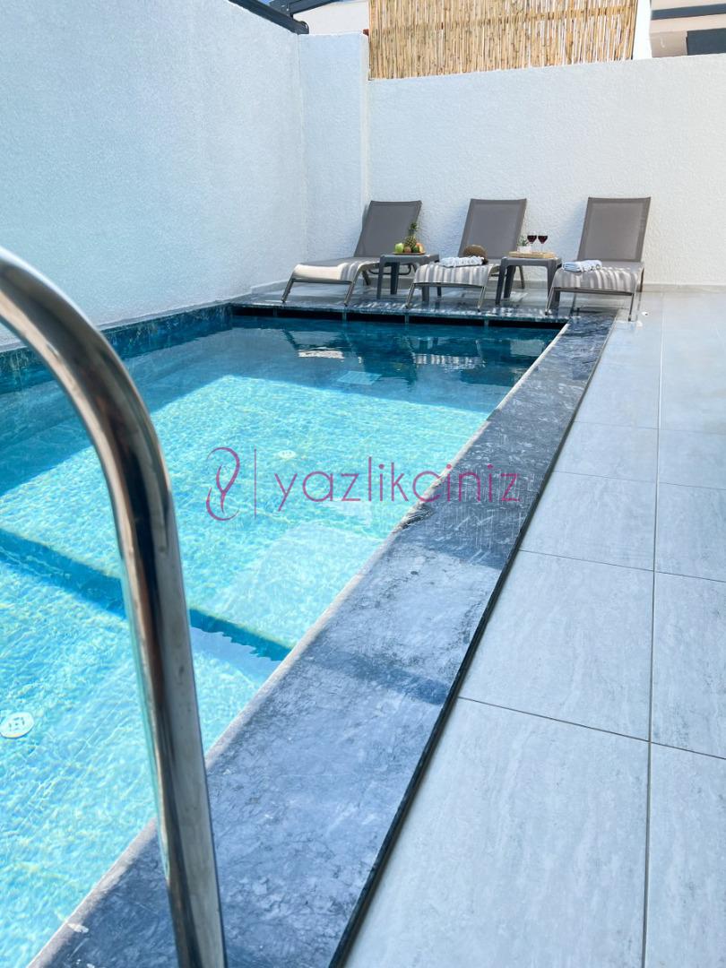 Boy: 8.8 m En: 3,9 m Derinlik: 145 cm  korunaklı havuz bulunmaktadır.