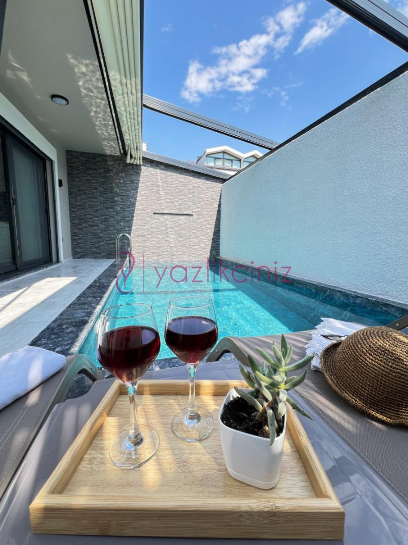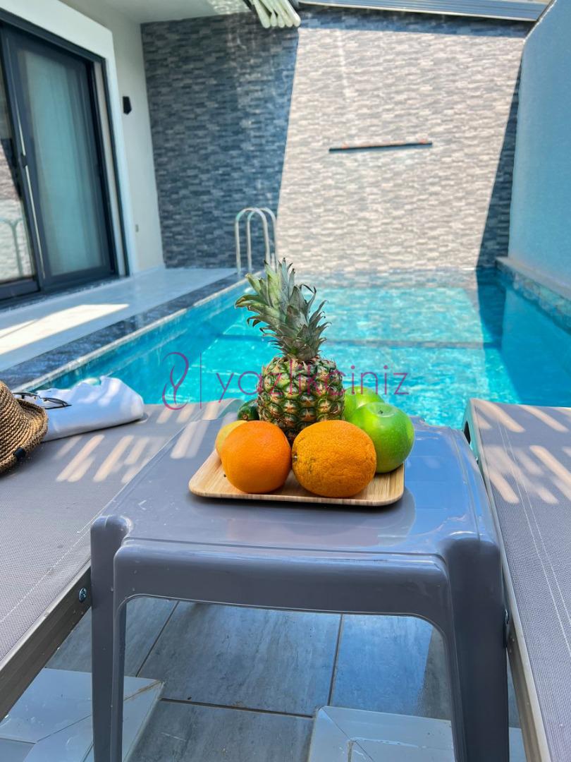 Villanın güneşlenme terası ve havuzun temizliği için gerekli önlemler alınmıştır, fakat villanın diğer bölümlerinin görünürlüğü kesin olarak garanti edilememektedir.