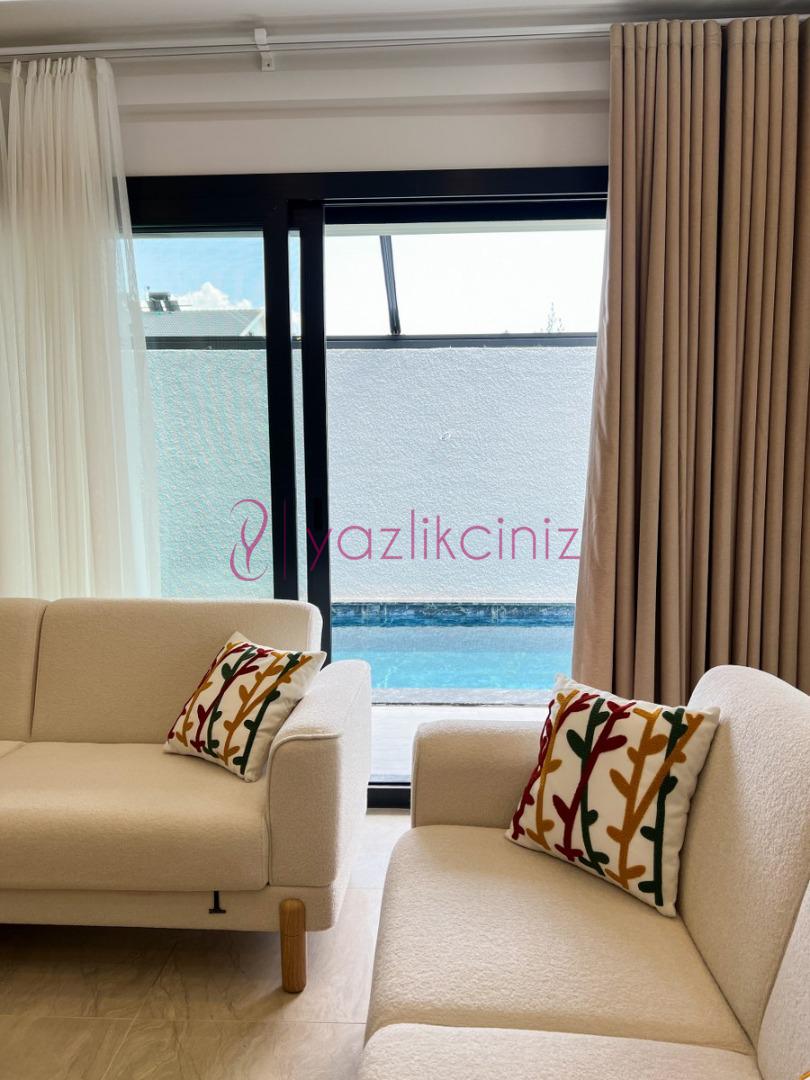 NOT: Bütün evlerimiz aynı dizayna ve aynı eşyalara sahiptir bu sebeple bir tane villamızın fotoğraf çekimi yapılarak diğer villalarımız içinde bu fotoğraflar kullanılmıştır. Tek fark bahçe genişlikleridir, villalarımızın numaraları ve bahçe genişlikleri yer alan krokisi fotoğraflarda mevcuttur. Her villamızın fotoğraf çekimi ayrı ayrı gerçekleştirilerek en kısa sürede güncelleme yapılacaktır.
