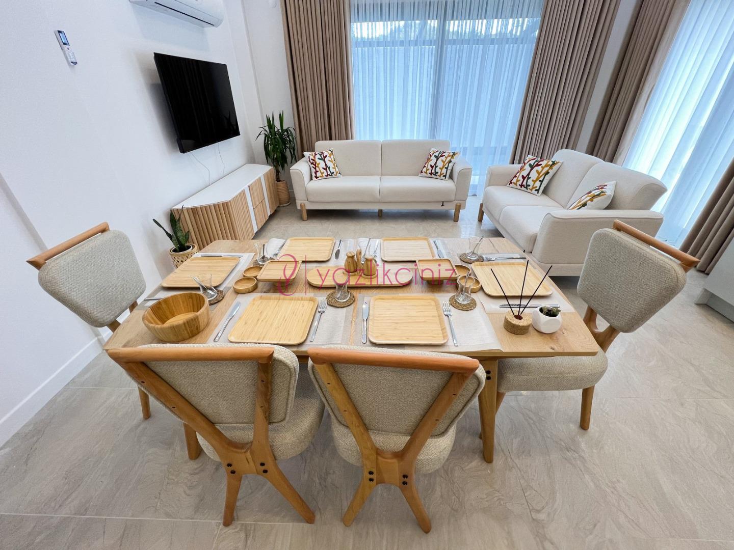 Oturma grubu, televizyon, orta sehpa, uydu alıcısı, klima, bulunmaktadır.