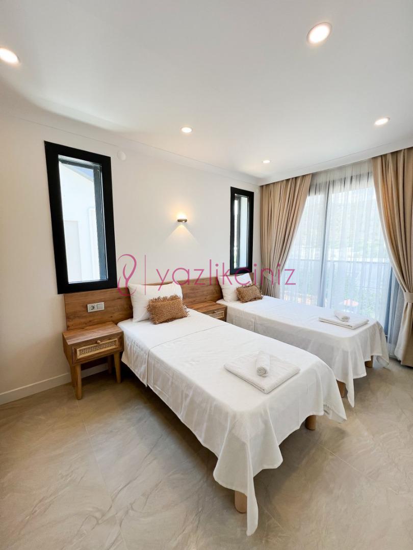 Yatak odası 2: 2 adet tek kişilik yatak, klima , komodin, elbise dolabı , makyaj masası, banyo ve tuvalet bulunmaktadır.