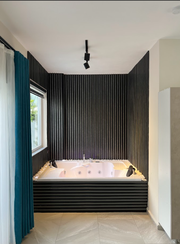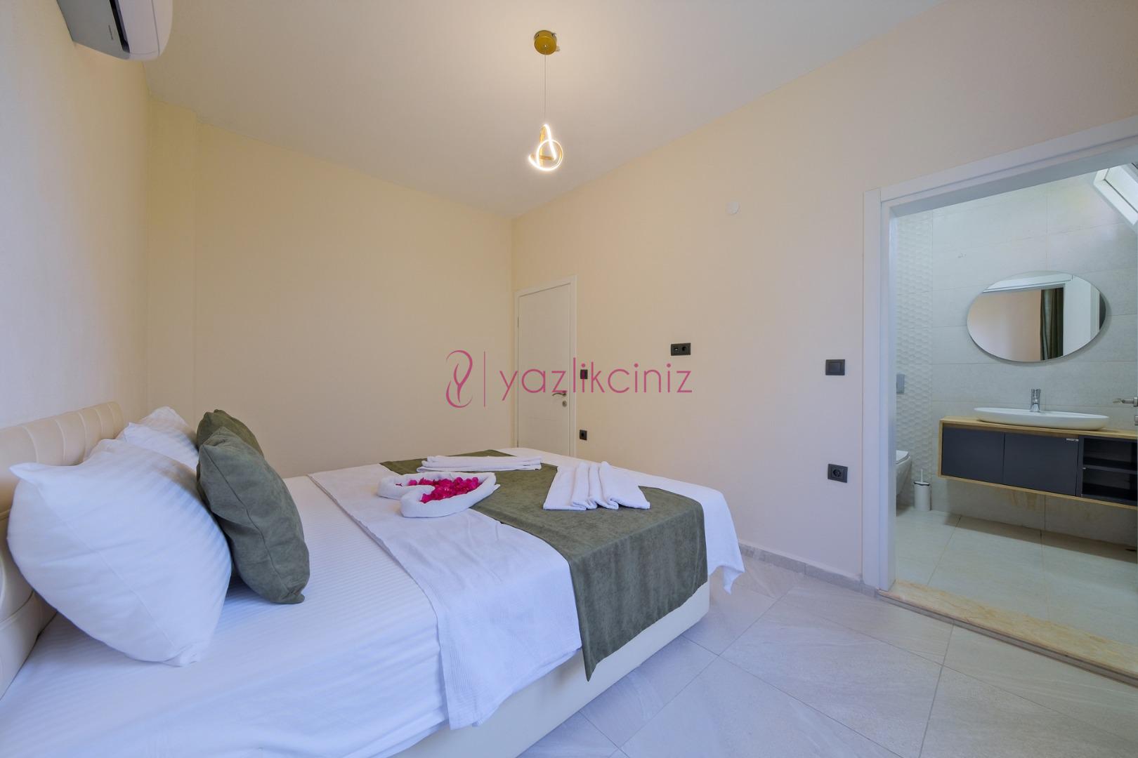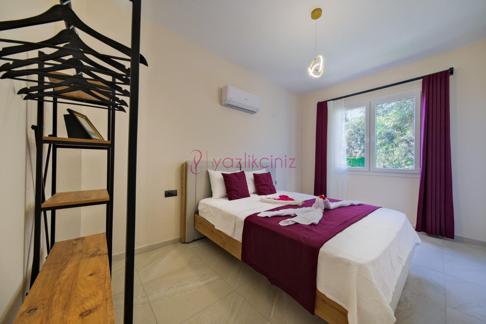 Yatak odası 1: Çift kişilik yatak, klima, komodin, elbise dolabı , makyaj masası, sauna banyo ve tuvalet bulunmaktadır.