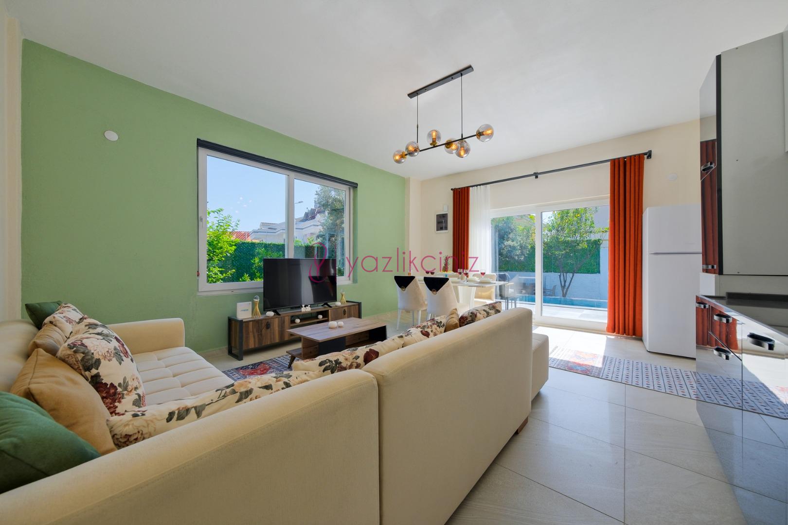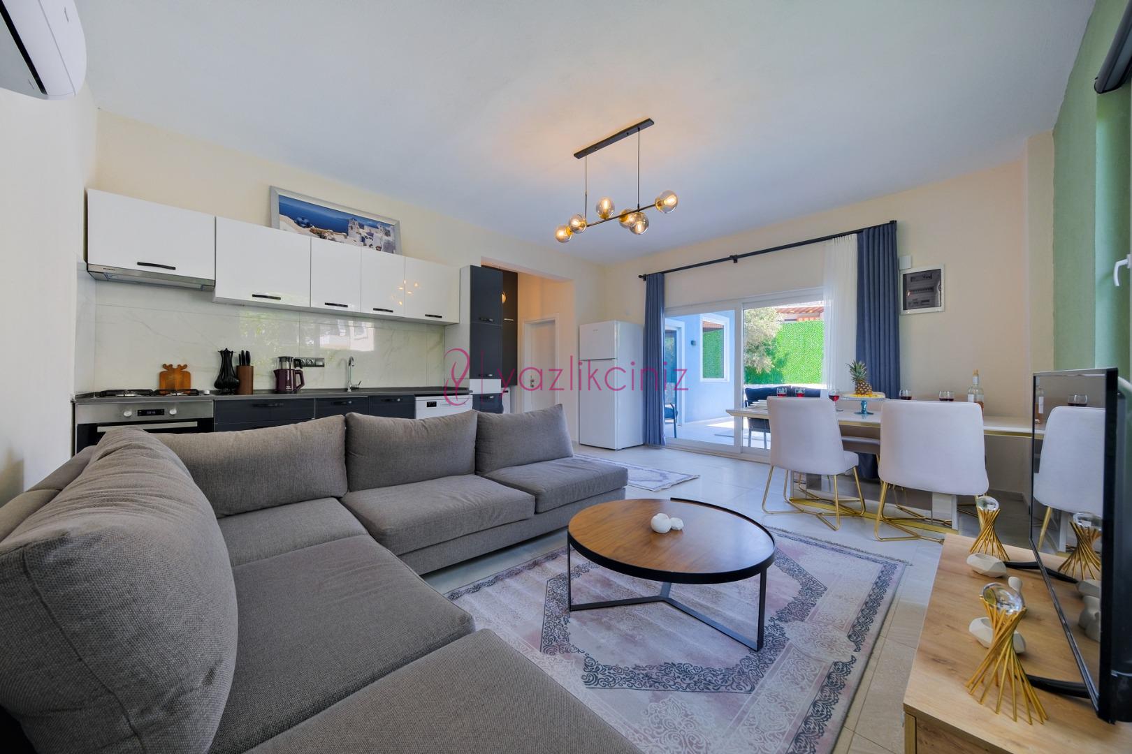 NOT: Bütün evlerimiz aynı dizayna ve aynı eşyalara sahiptir bu sebeple bir tane villamızın fotoğraf çekimi yapılarak diğer villalarımız içinde bu fotoğraflar kullanılmıştır. Tek fark bahçe genişlikleridir, villalarımızın numaraları ve bahçe genişlikleri yer alan krokisi fotoğraflarda mevcuttur. Her villamızın fotoğraf çekimi ayrı ayrı gerçekleştirilerek en kısa sürede güncelleme yapılacaktır.