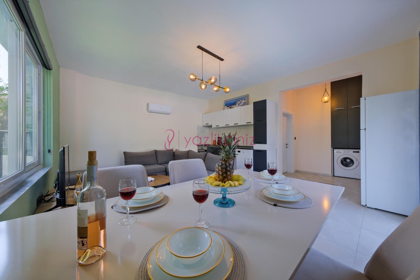 Buzdolabı, çamaşır makinesi, bulaşık makinesi fırın, mikrodalga fırın, 4 lü ocak, su ısıtıcısı(kettle), tost makinesi, yemek masası ve 4 kişi için mutfak takımı bulunmaktadır.