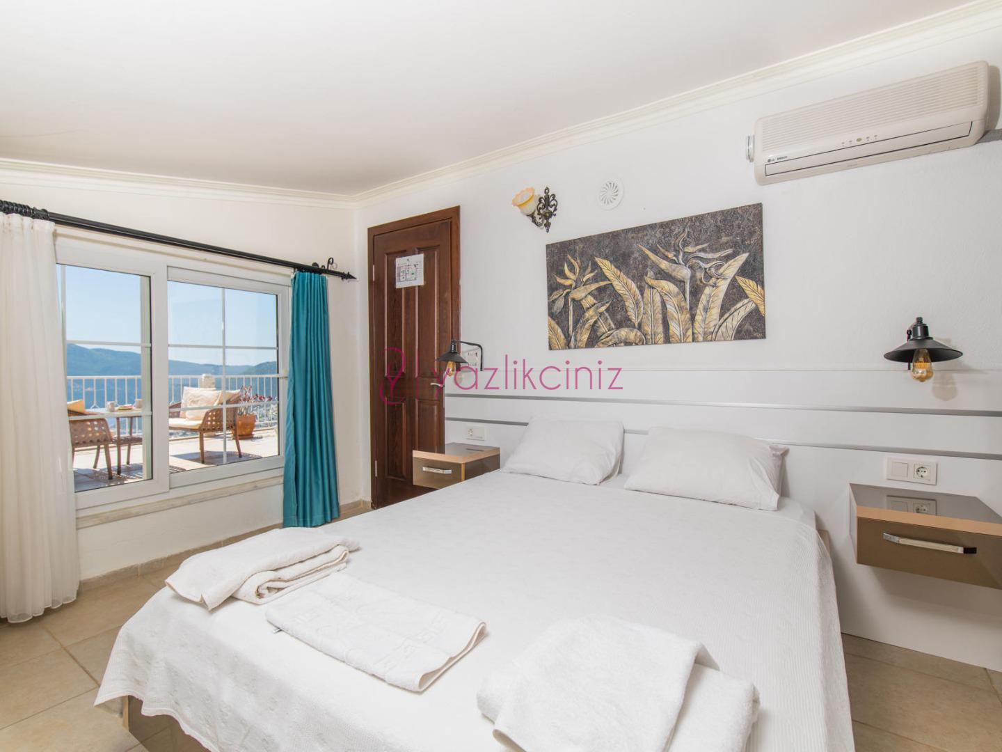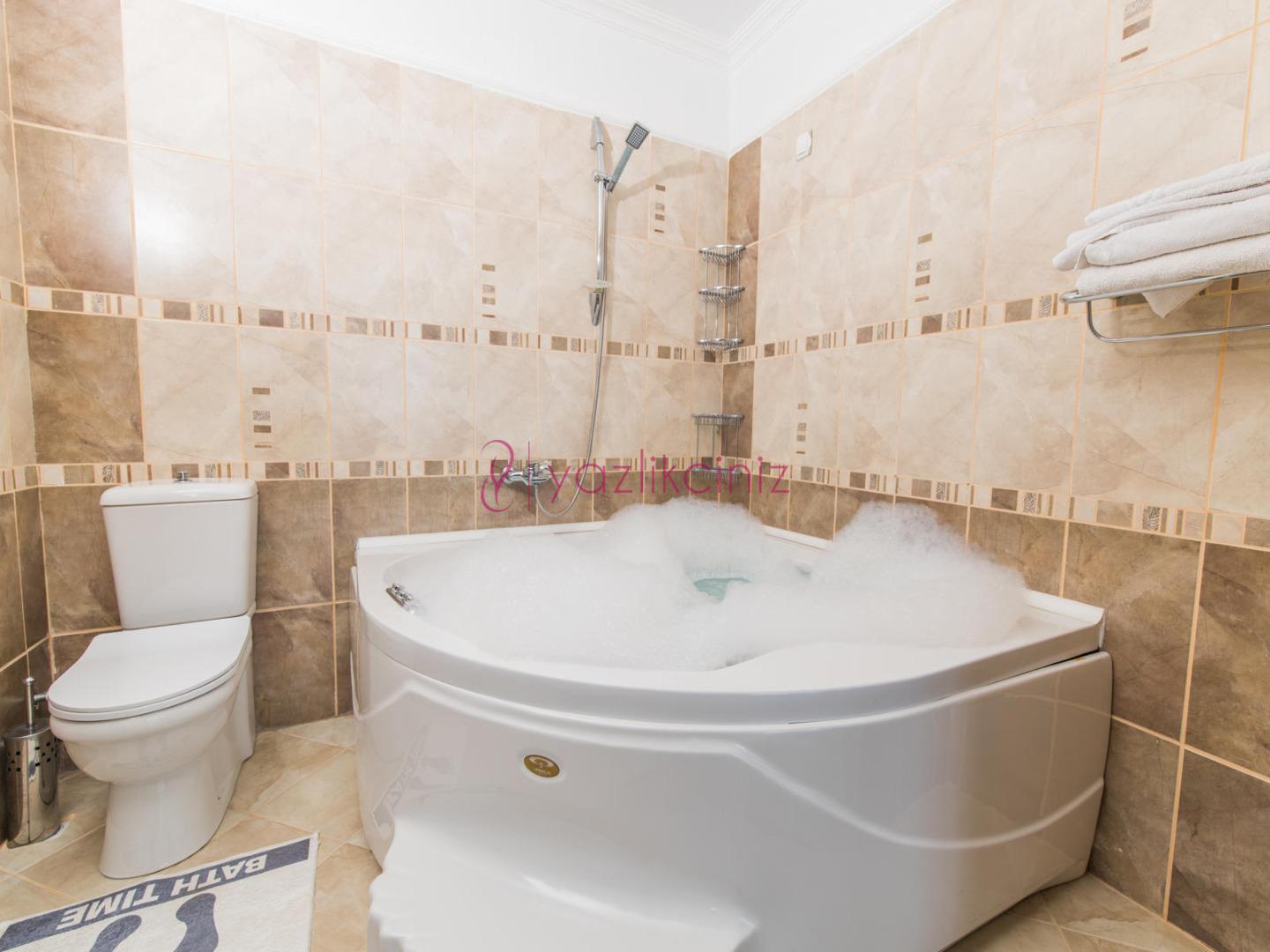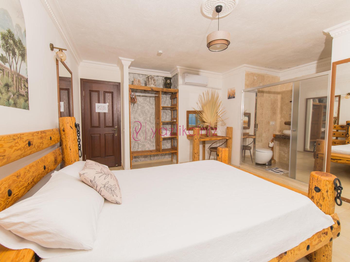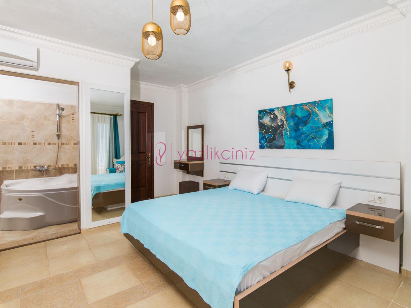 Yatak Odası 1: 1 adet çift kişilik yatak, komodin klima, elbise dolabı , jakuzi, tuvalet ve banyo bulunmaktadır.