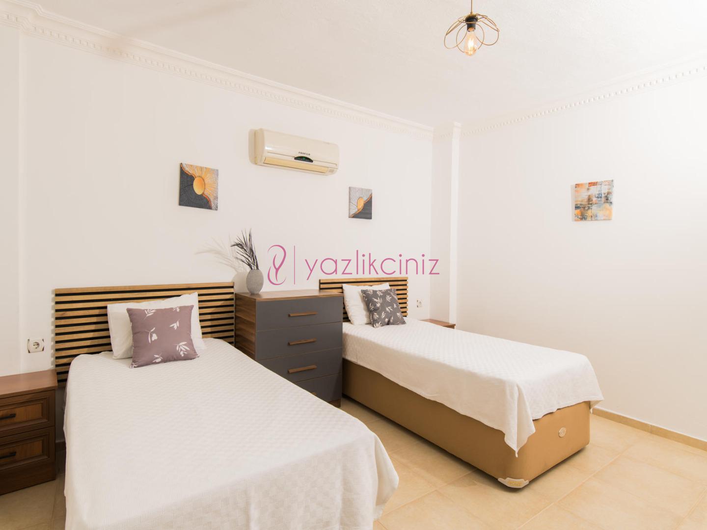 Yatak Odası 4: 2 adet tek kişilik yatak, komodin, klima, elbise dolabı, tuvalet ve banyo bulunmaktadır.