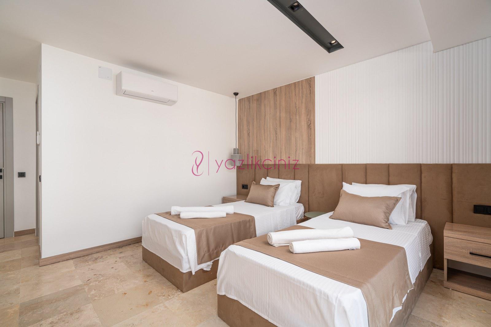 Yatak odası 6: 2 adet tek kişilik yatak, televizyon, klima, elbise dolabı, komodin, tuvalet banyo bulunmaktadır.