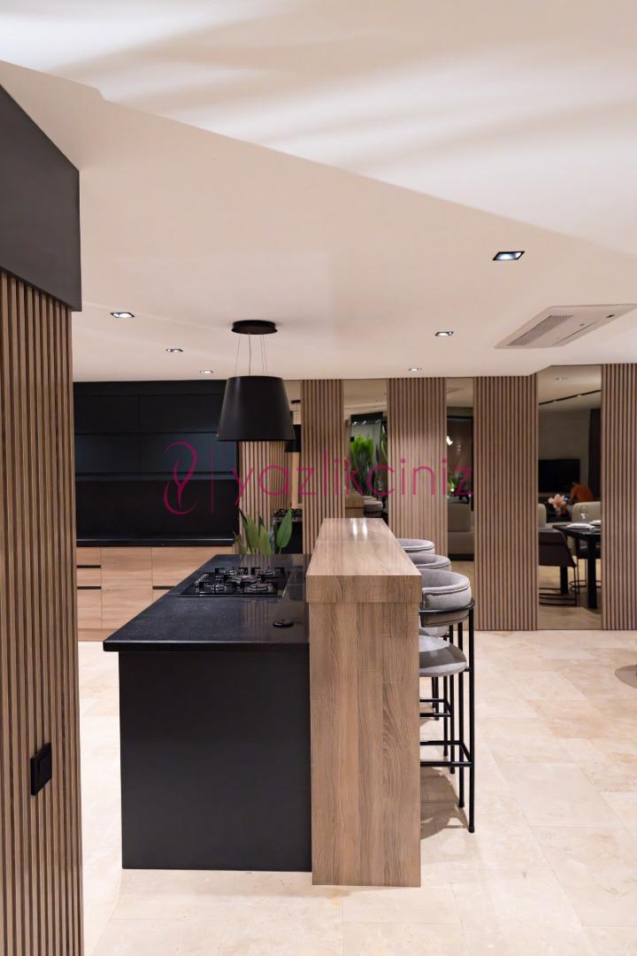 Buzdolabı, bulaşık makinesi, ankastre 4 lü fırın, ekmek kızartma makinesi, mikrodalga fırın, su ısıtıcı, su sebili, 12 kişilik yemek takımı ve mutfak araç gereçleri mutfağımızda mevcuttur. Havuz alanına çıkış bulunmaktadır.