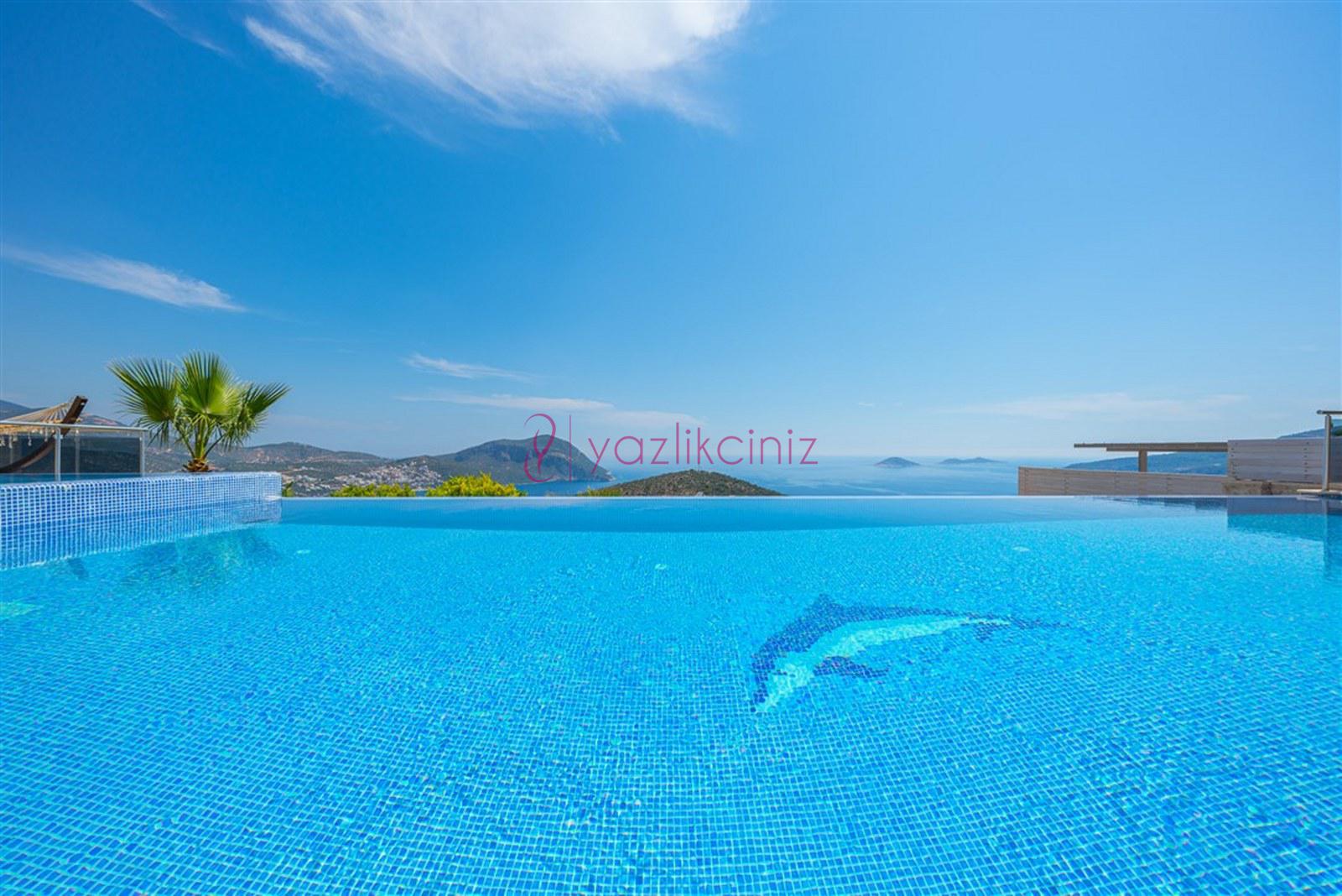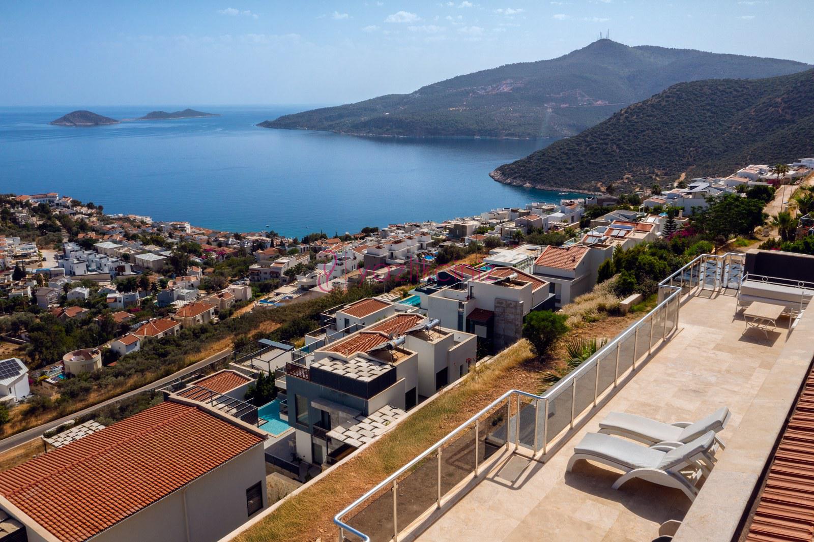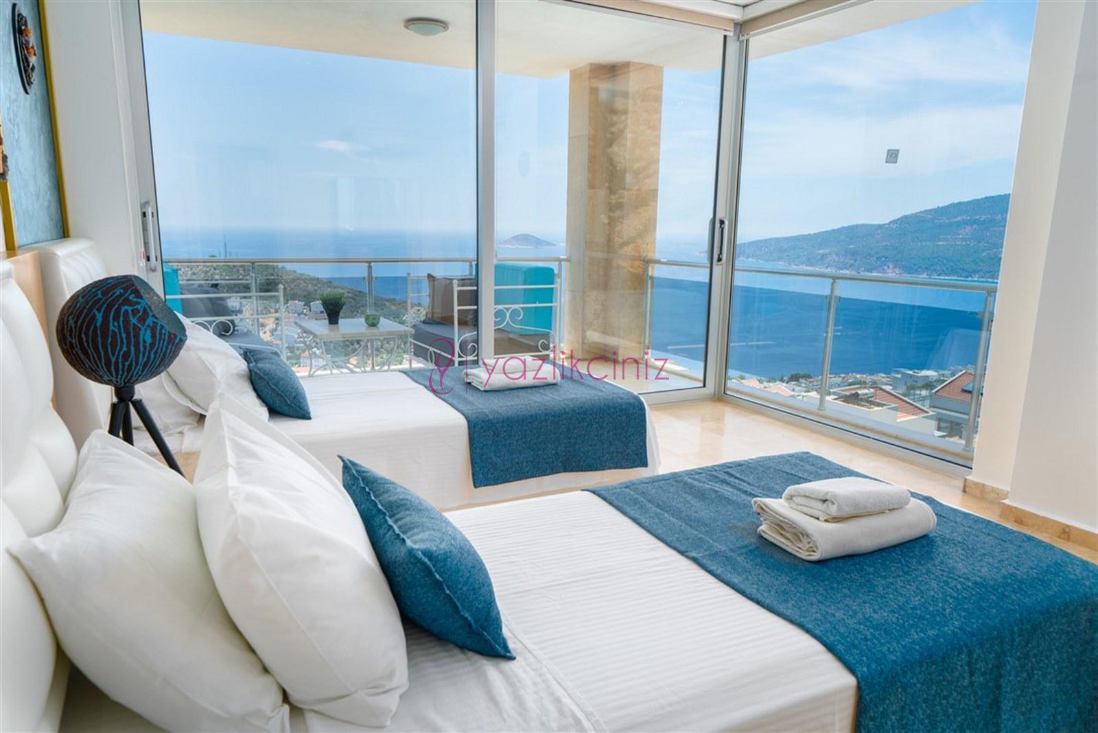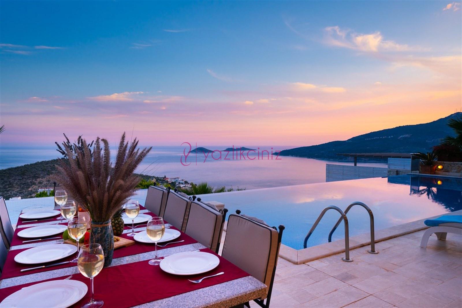 Lüks, deniz manzaralı, 12 kişilik, 6 yatak odalı kiralık villa, yazlık