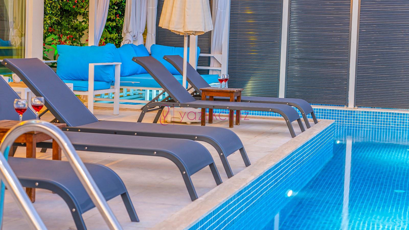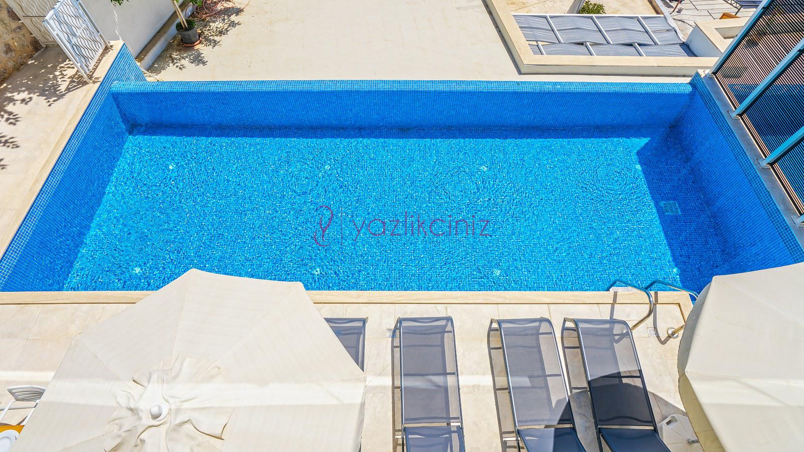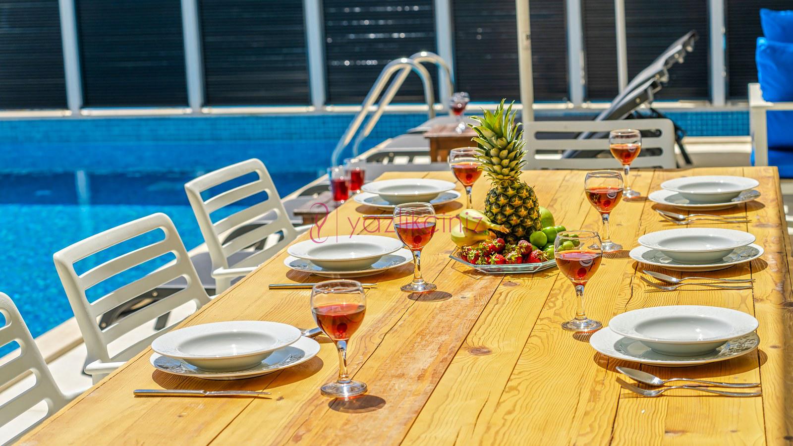 Havuz terası ve havuzu %80 korunaklı olup, özel alanda arkadaş grubunuz ve aileniz ile rahat edebileceğiniz bir villadır.