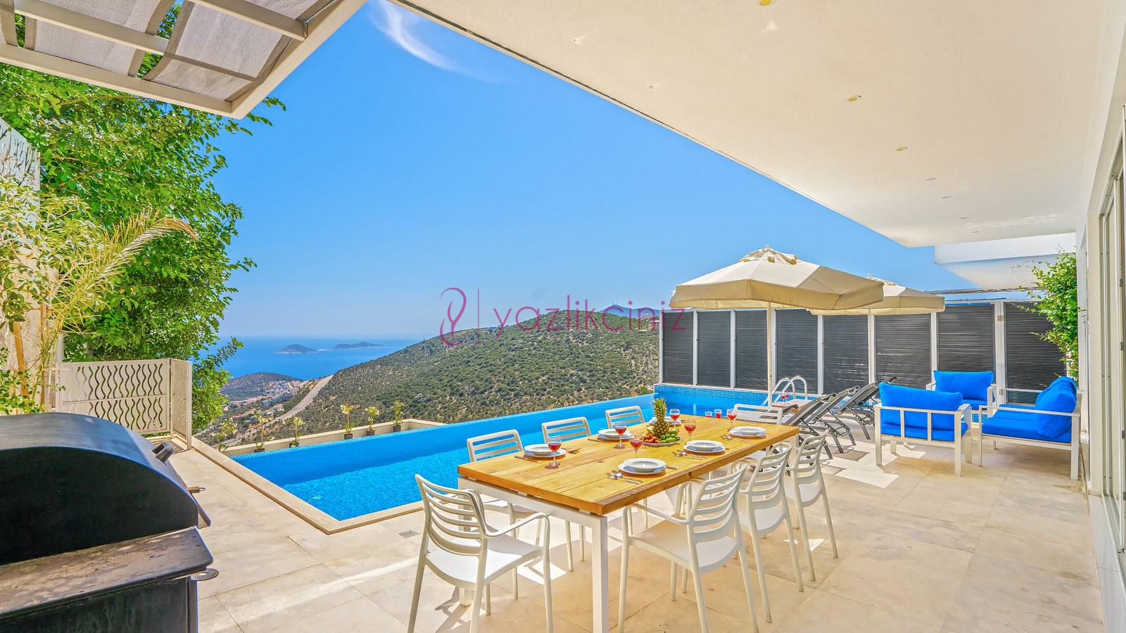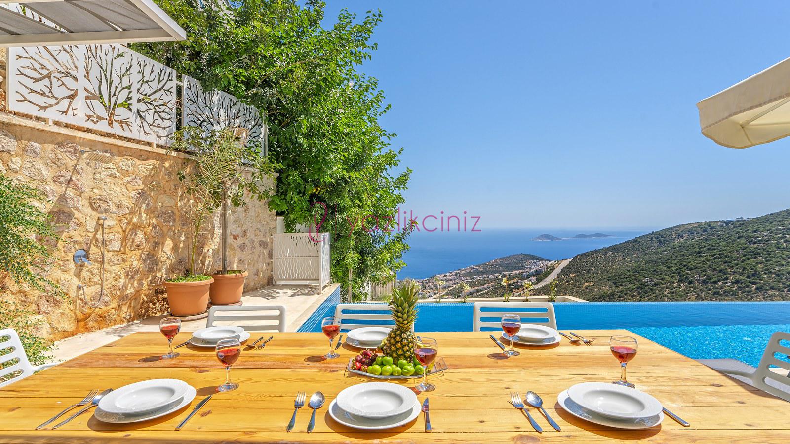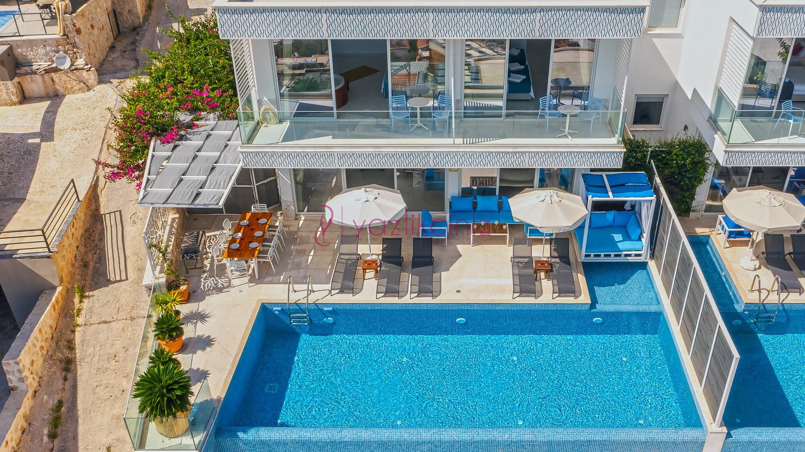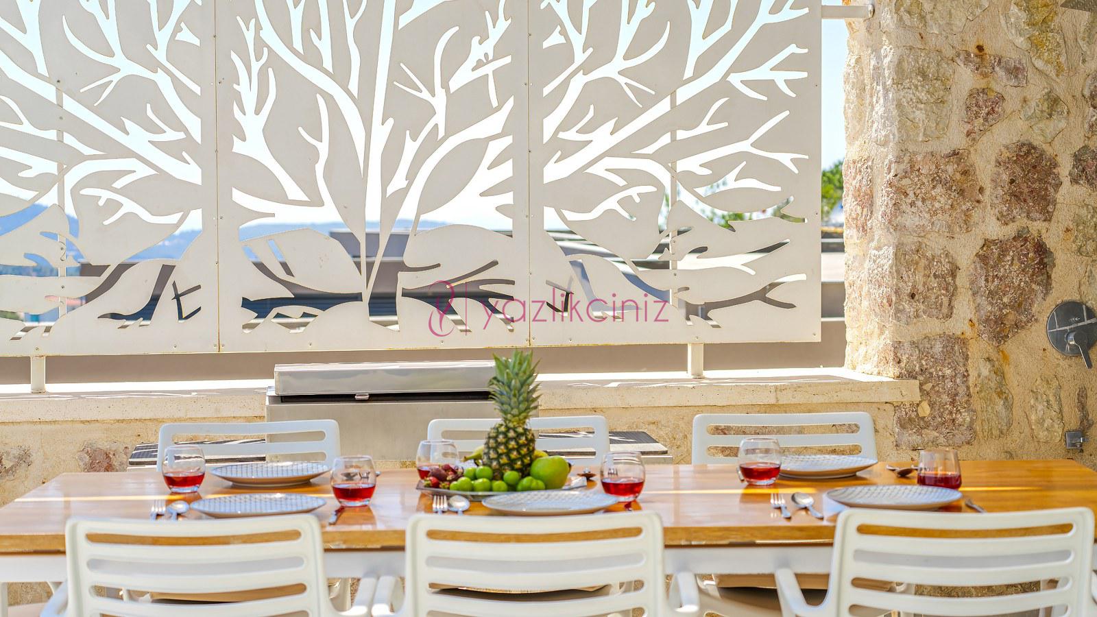 Havuz terası ve havuzu %80 korunaklı olup, özel alanda arkadaş grubunuz ve aileniz ile rahat edebileceğiniz bir villadır.