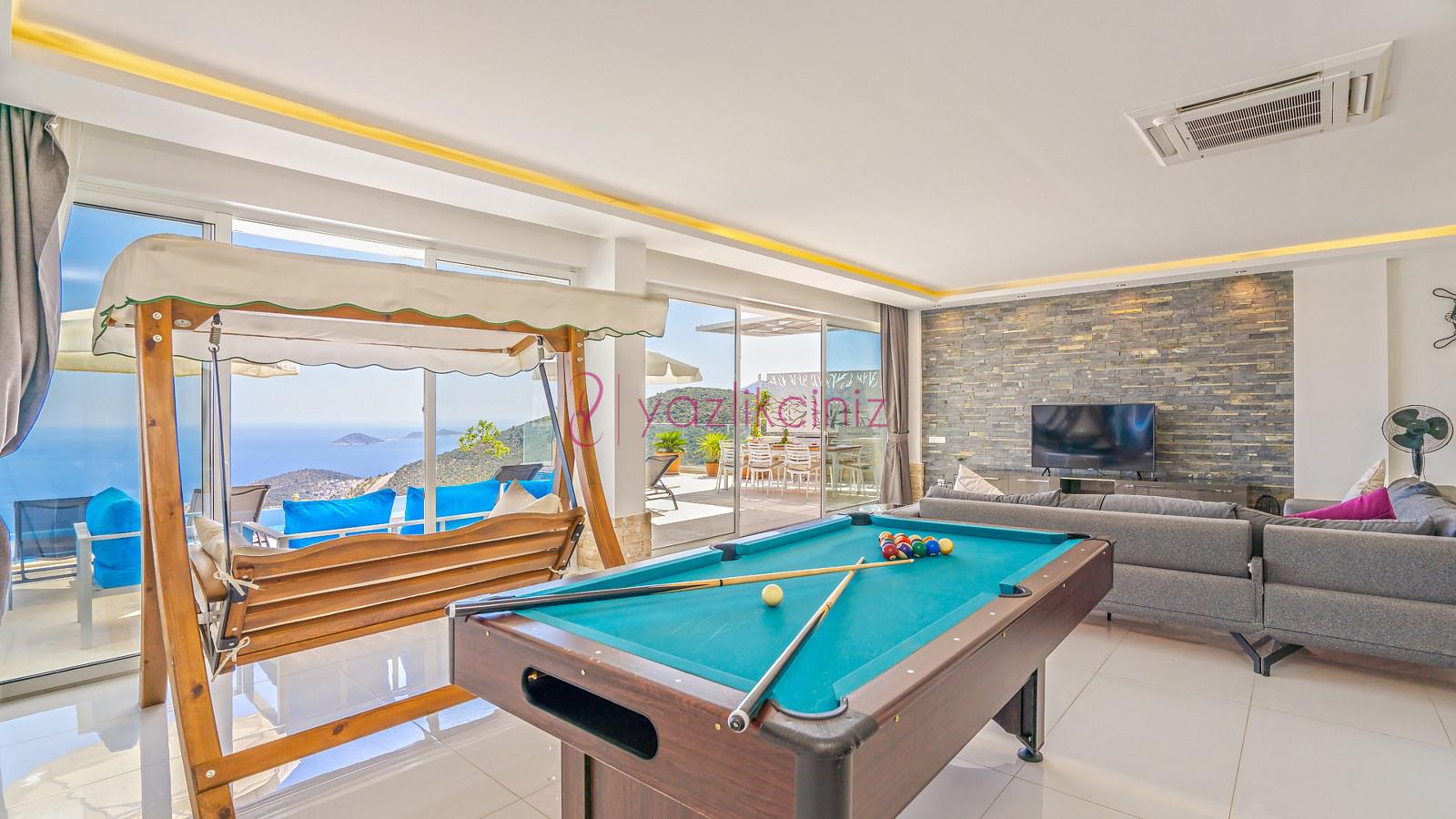 Salon içerisinde oturma grubu, televizyon, uydu alıcı, ortak kullanım tuvalet, internet için wifi bağlantısı bulunmaktadır. Havuz terasına çıkış yapılabilmektedir.
