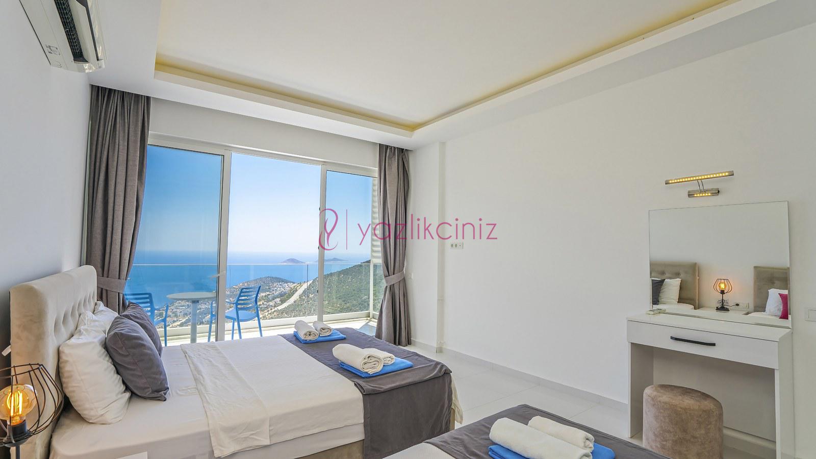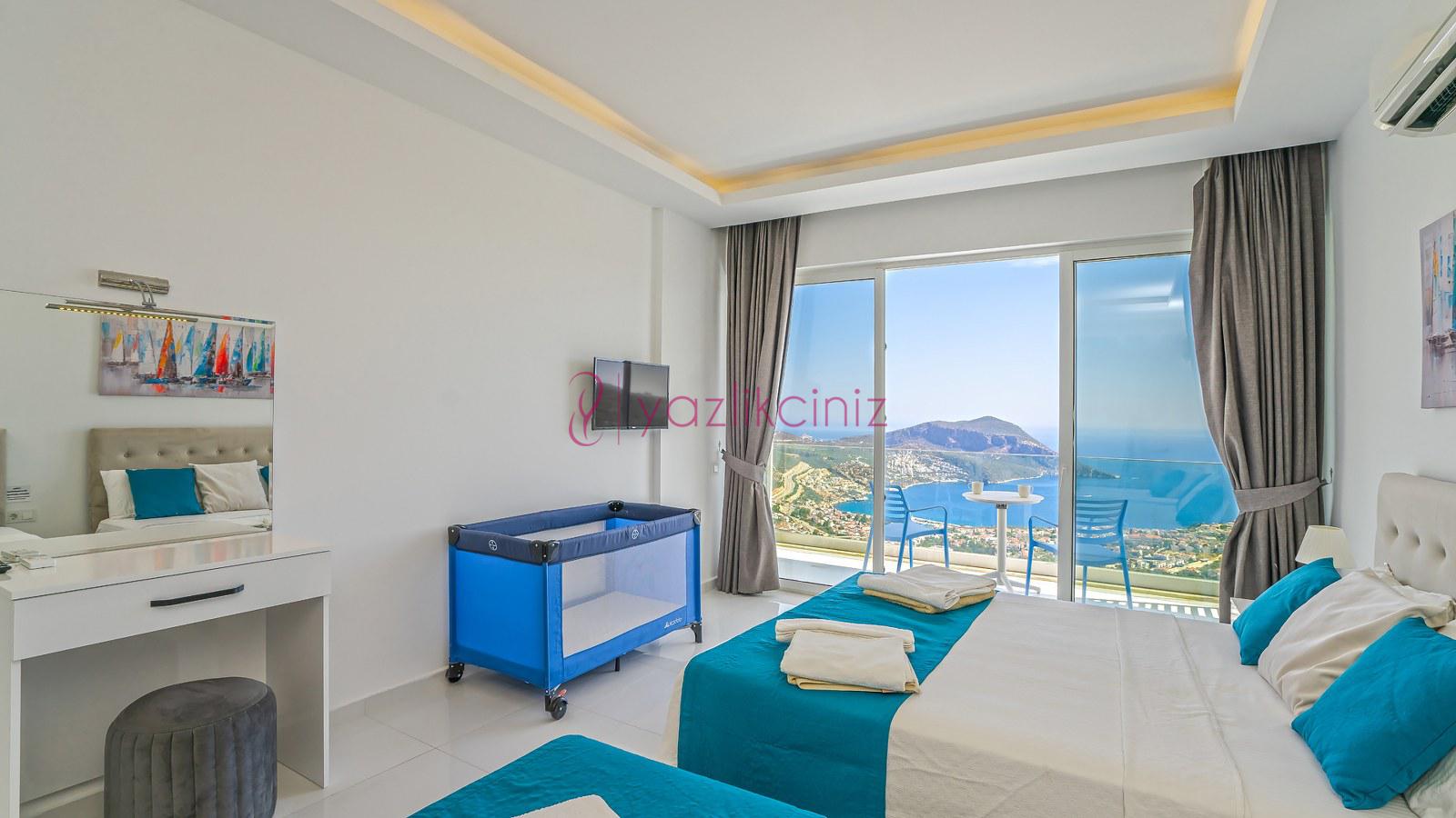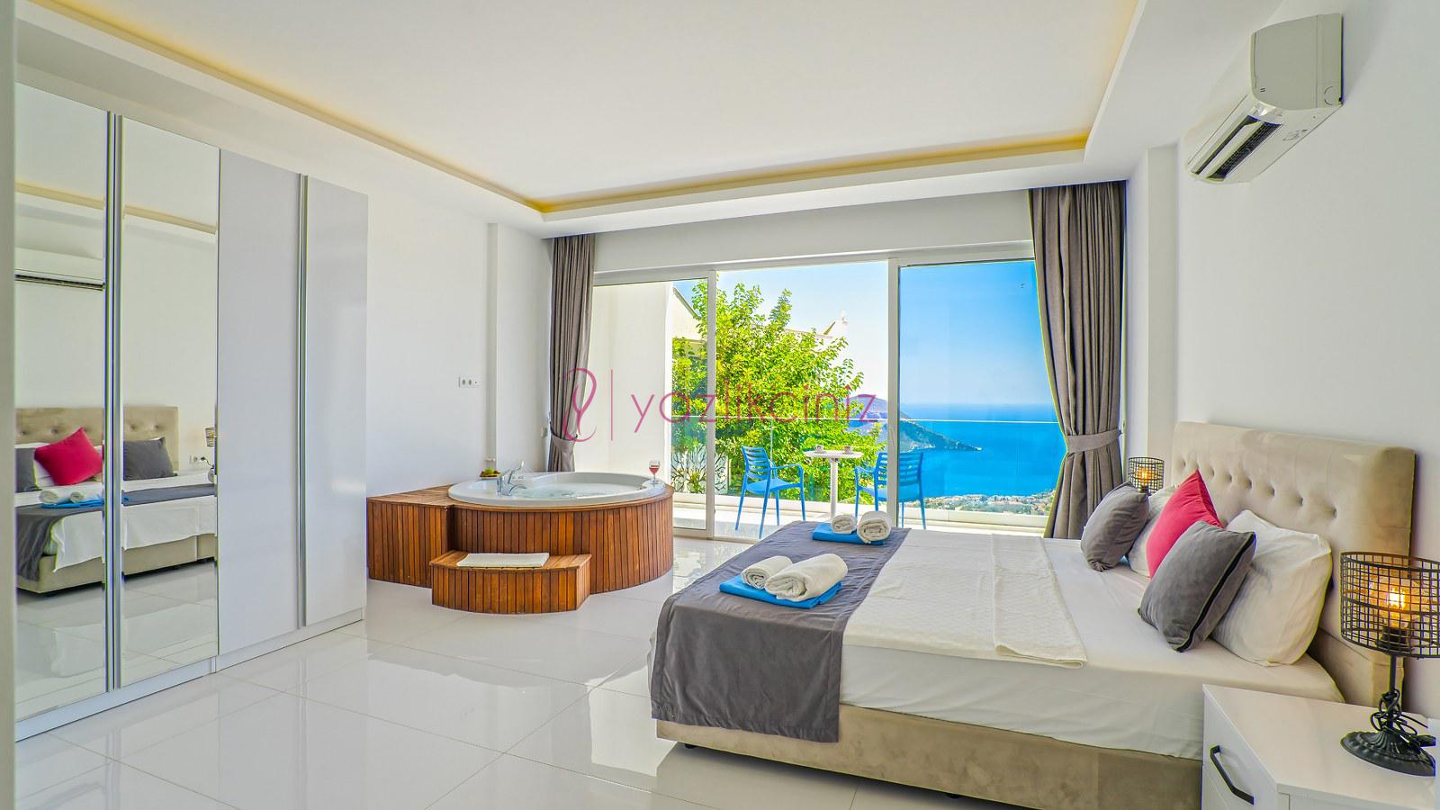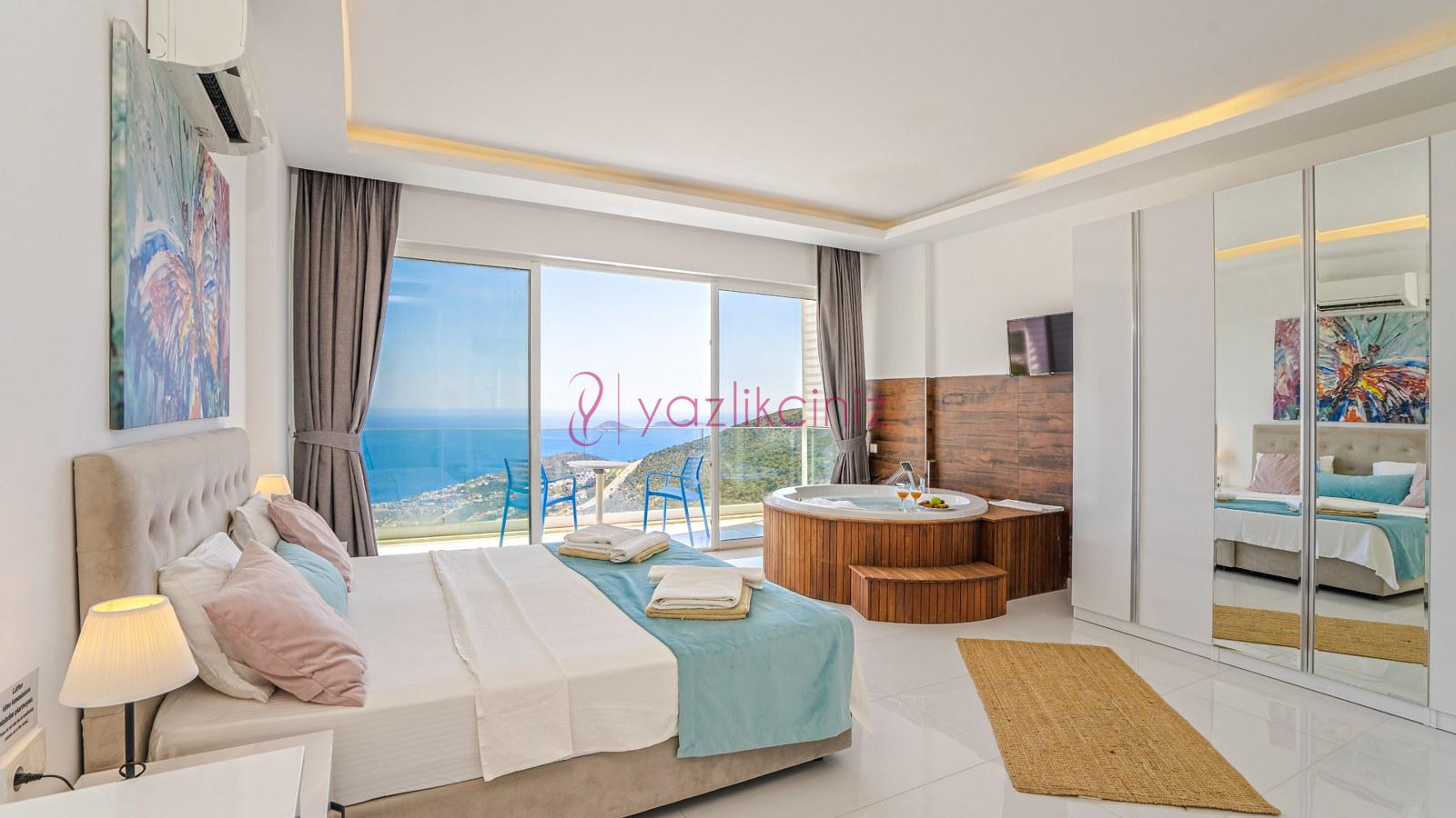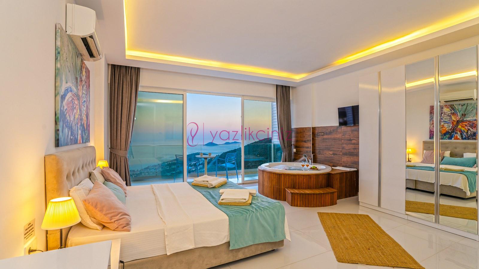 2. Yatak Odası: 1 adet çift kişilik yatak, klima, elbise dolabı, jakuzi, makyaj masası, komodin, banyo ve tuvalet bulunmaktadır. Odamız deniz manzaralıdır.