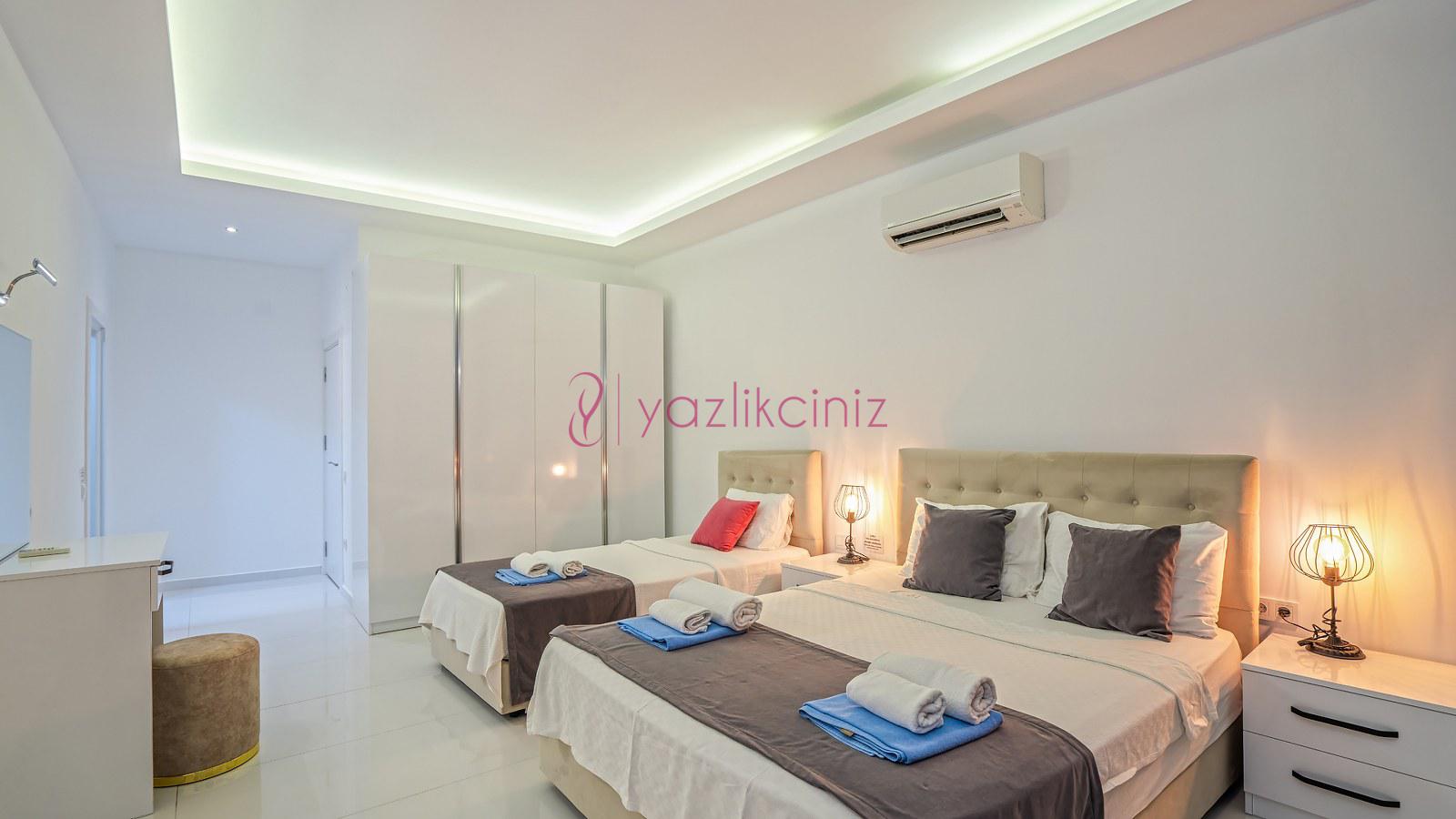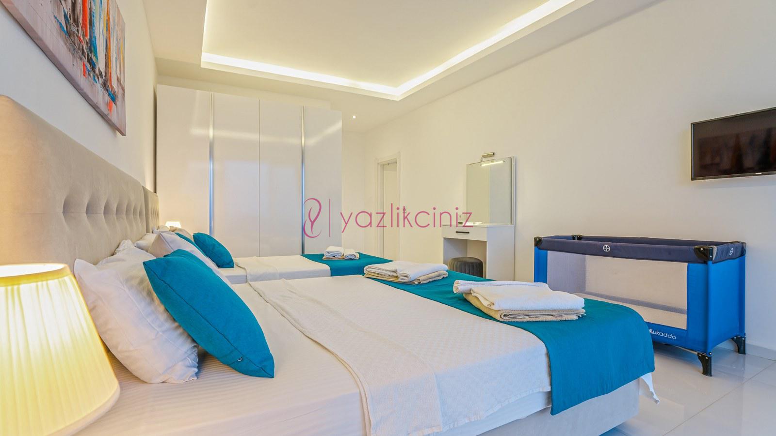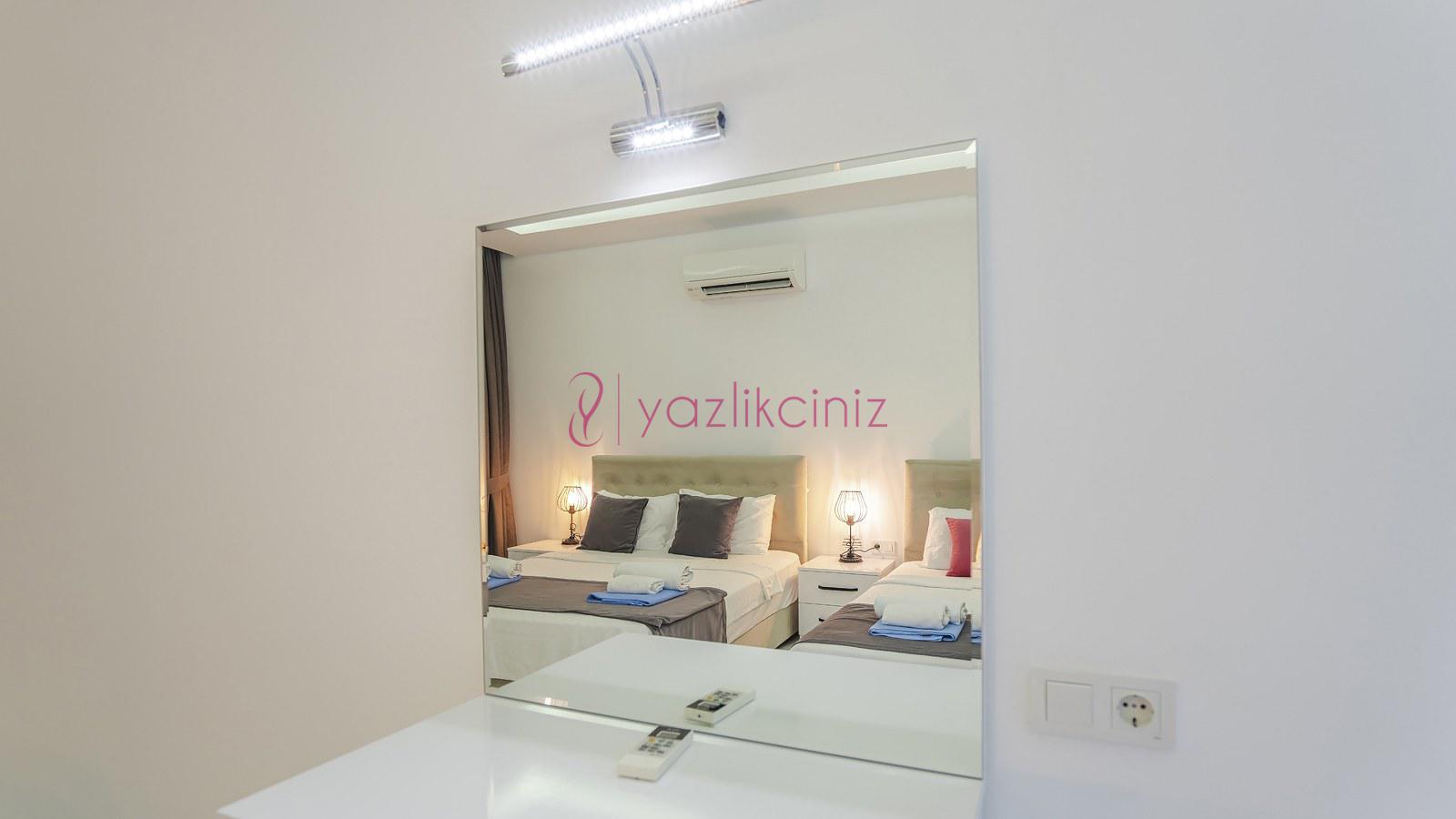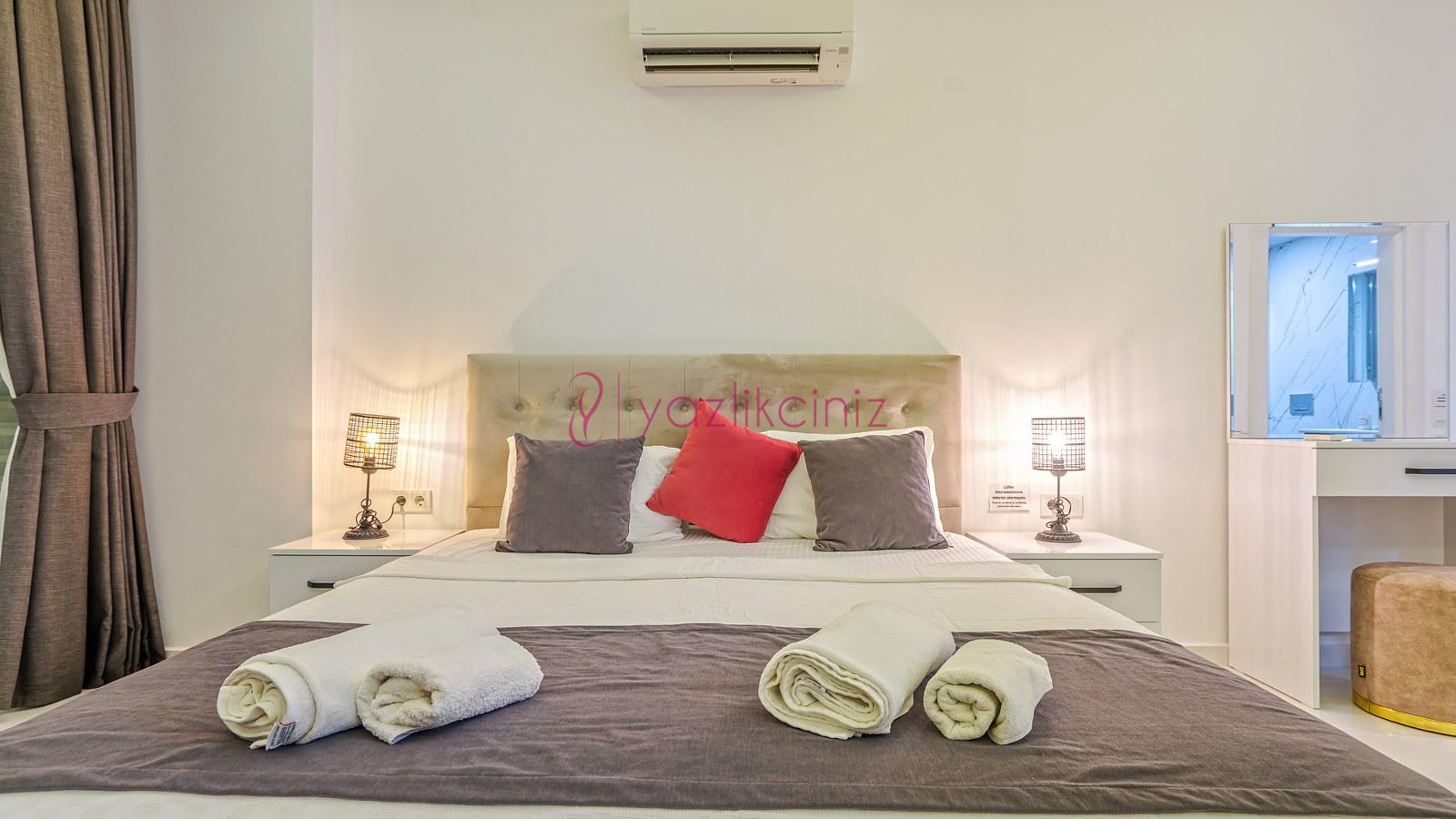 3. Yatak Odası: 1 adet çift yatak, klima, elbise dolabı, komodin, makyaj masası, banyo ve tuvalet bulunmaktadır.