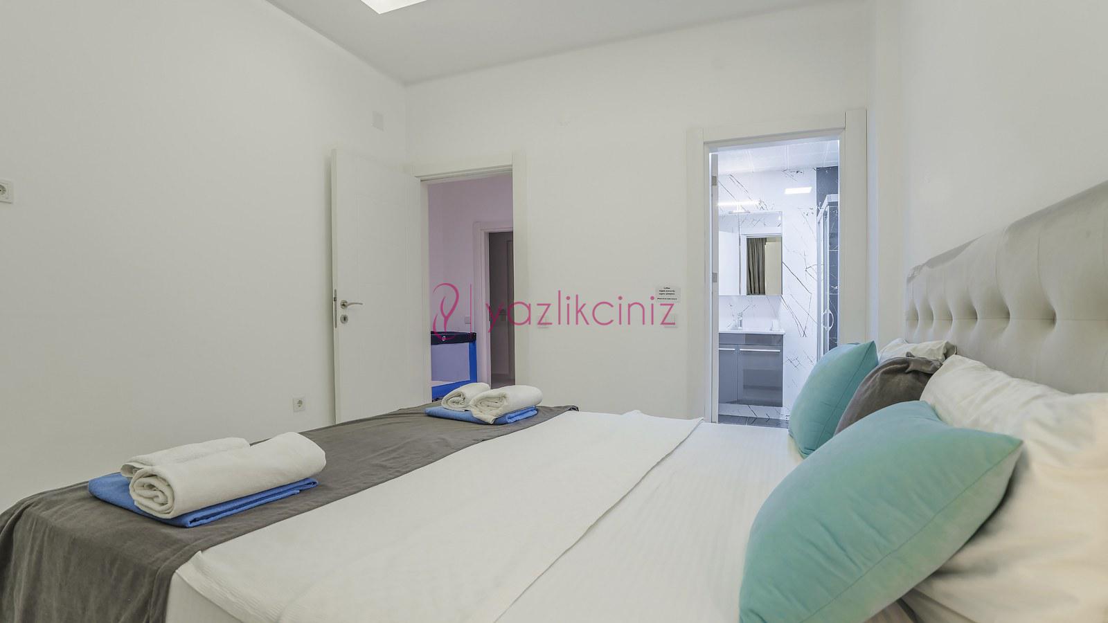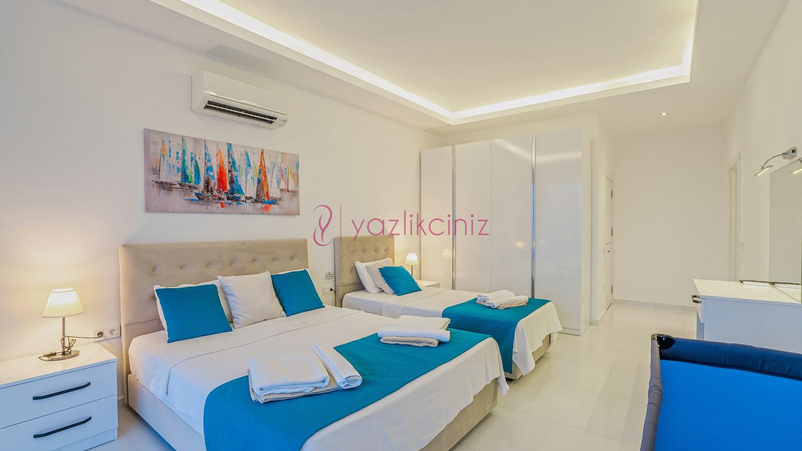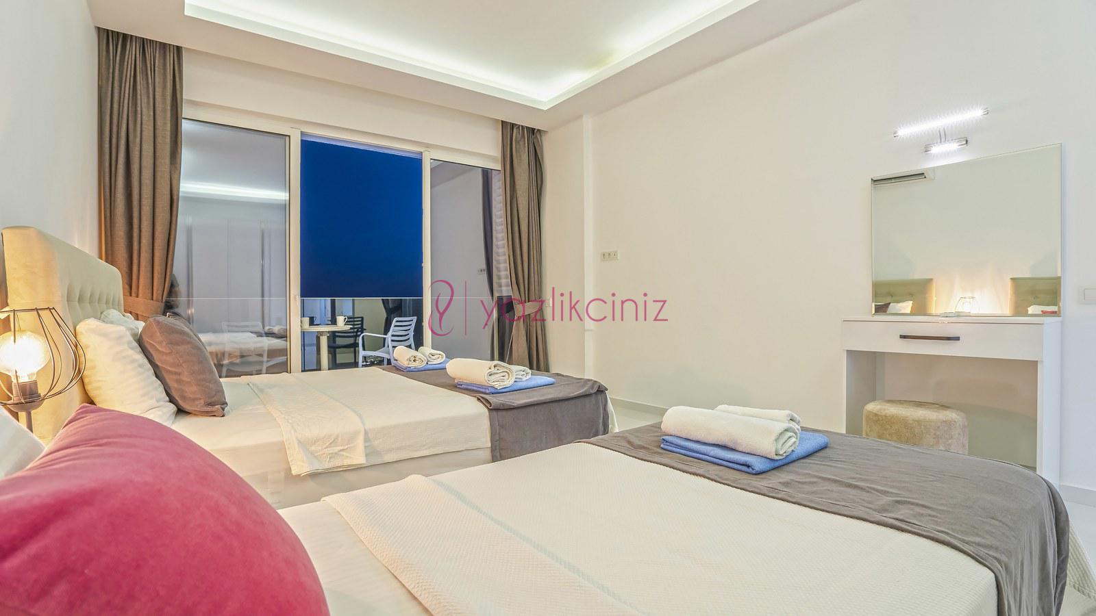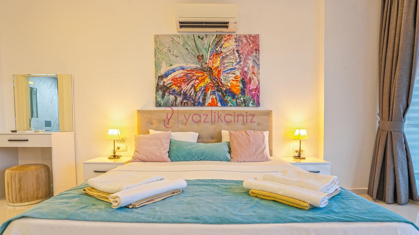 3. Yatak Odası: 1 adet çift yatak, klima, elbise dolabı, komodin, makyaj masası, banyo ve tuvalet bulunmaktadır.