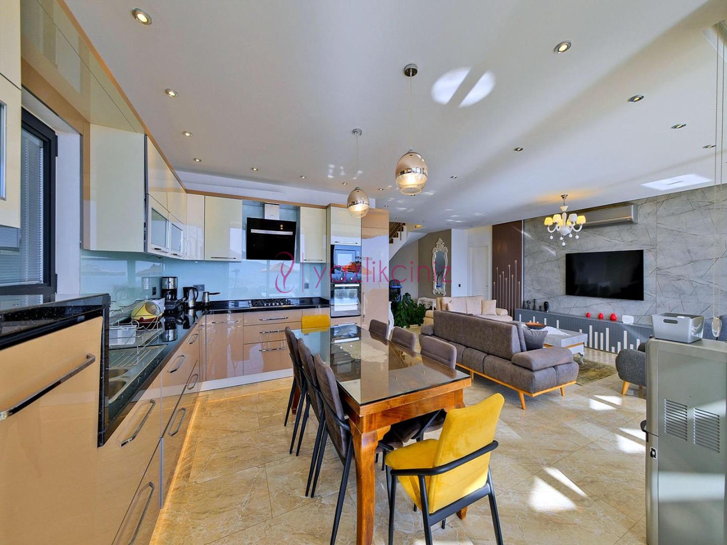Buzdolabı, çamaşır makinesi, bulaşık makinesi, elektrikli su ısıtıcısı, mikrodalga fırın, kahve makinesi, tost makinesi, fırın, 4 lü ocak, yemek masası, yemek takımı ve mutfak araç gereçleri bulunmaktadır.