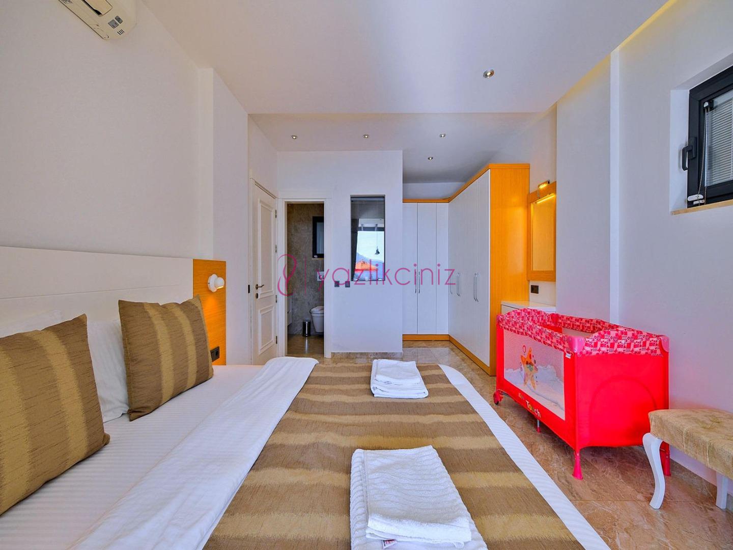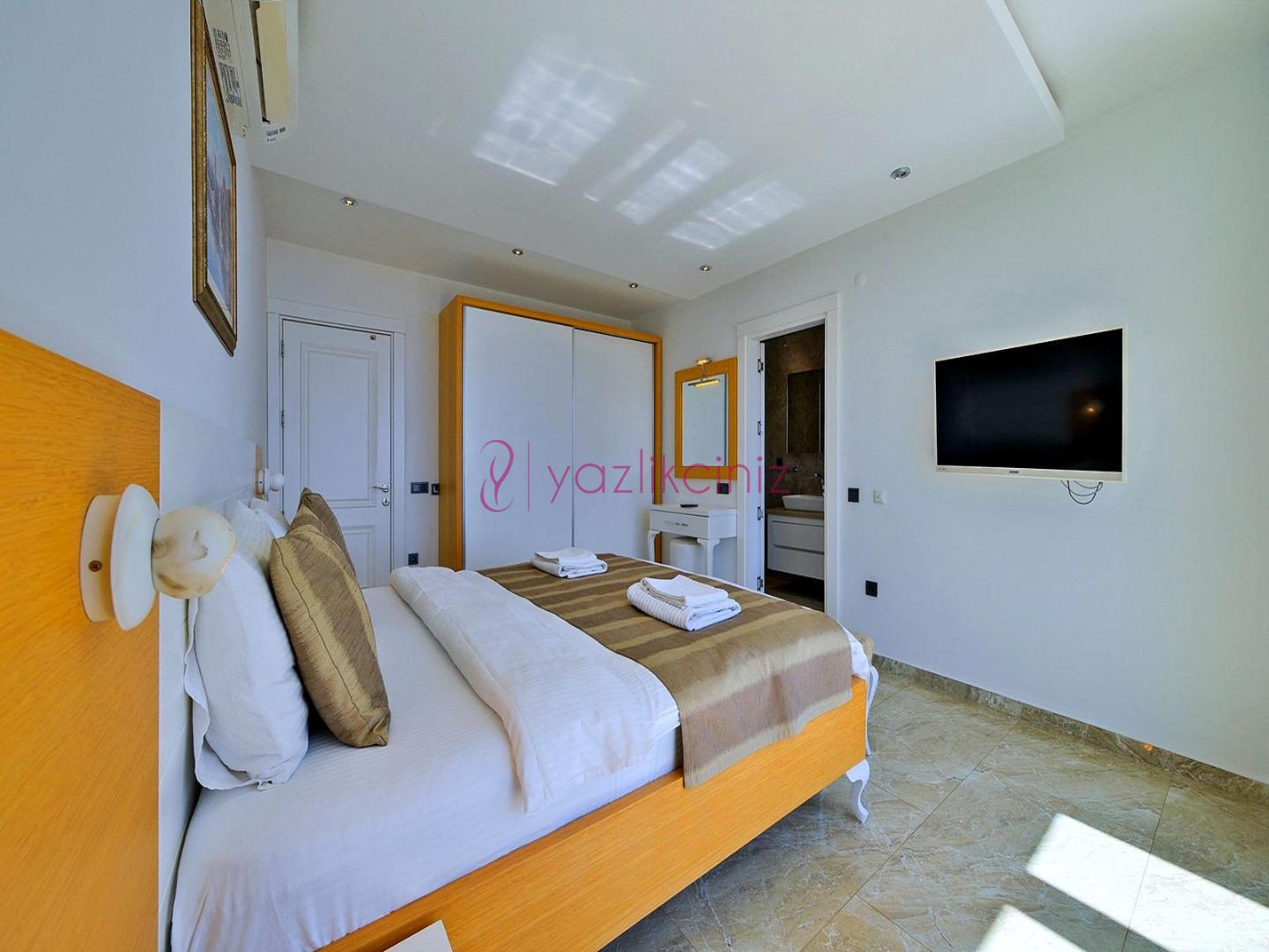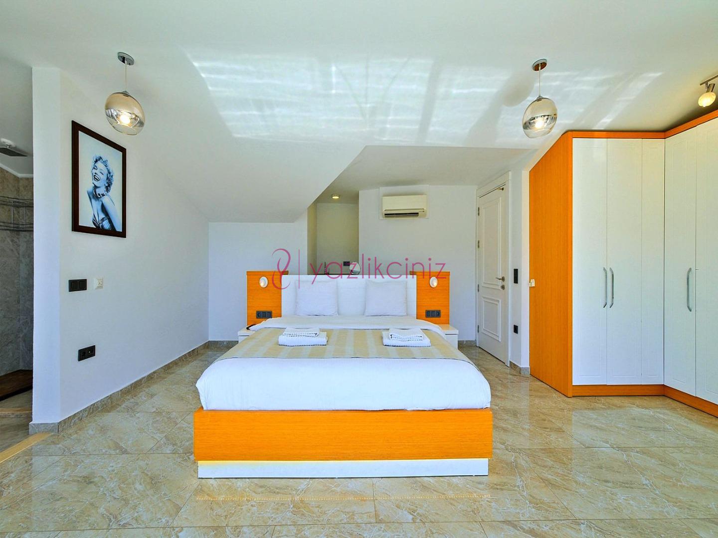 2. Yatak Odası: 1 adet çift kişilik yatak, televizyon, komodin, klima, makyaj masası, televizyon, elbise dolabı, tekli koltuk, banyo ve tuvalet, bulunmaktadır.