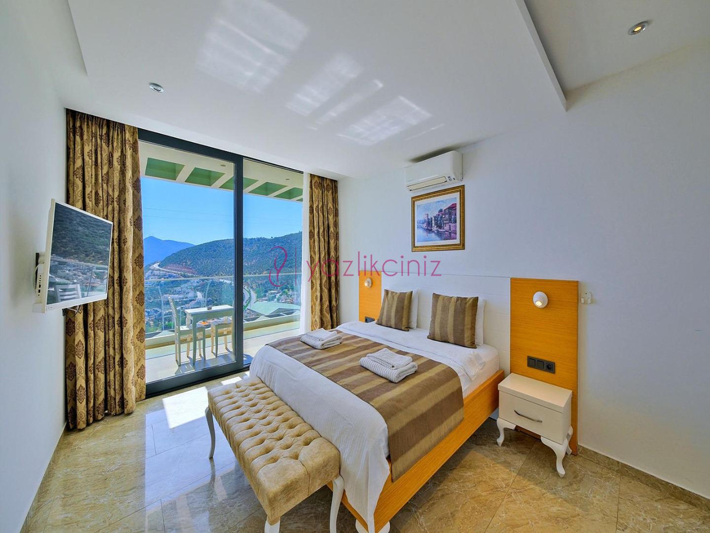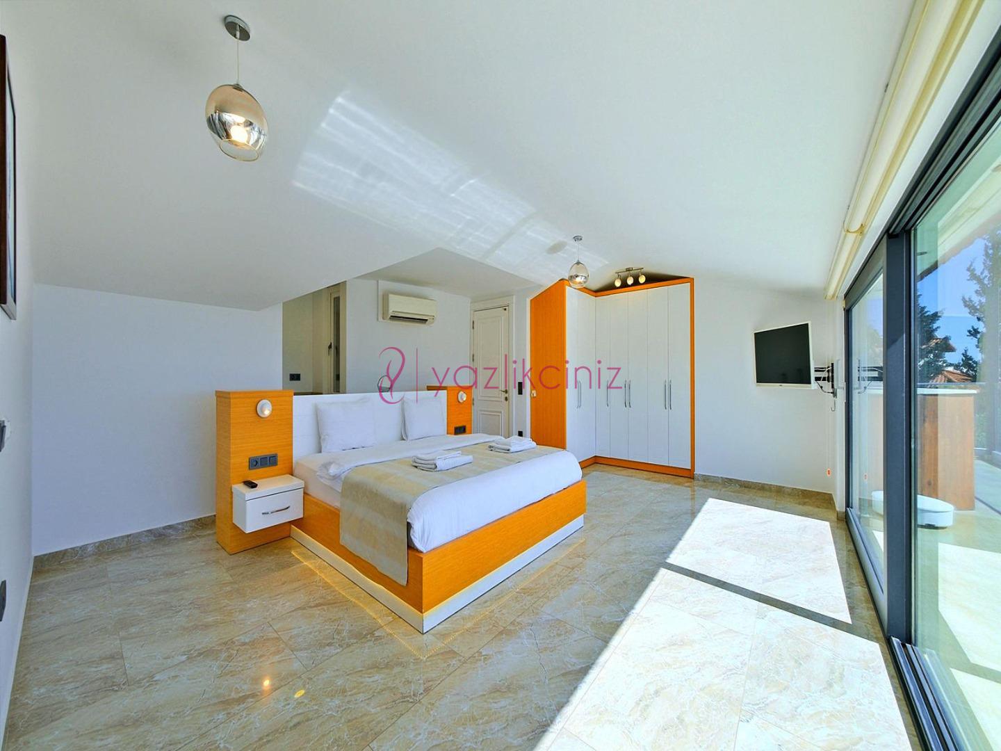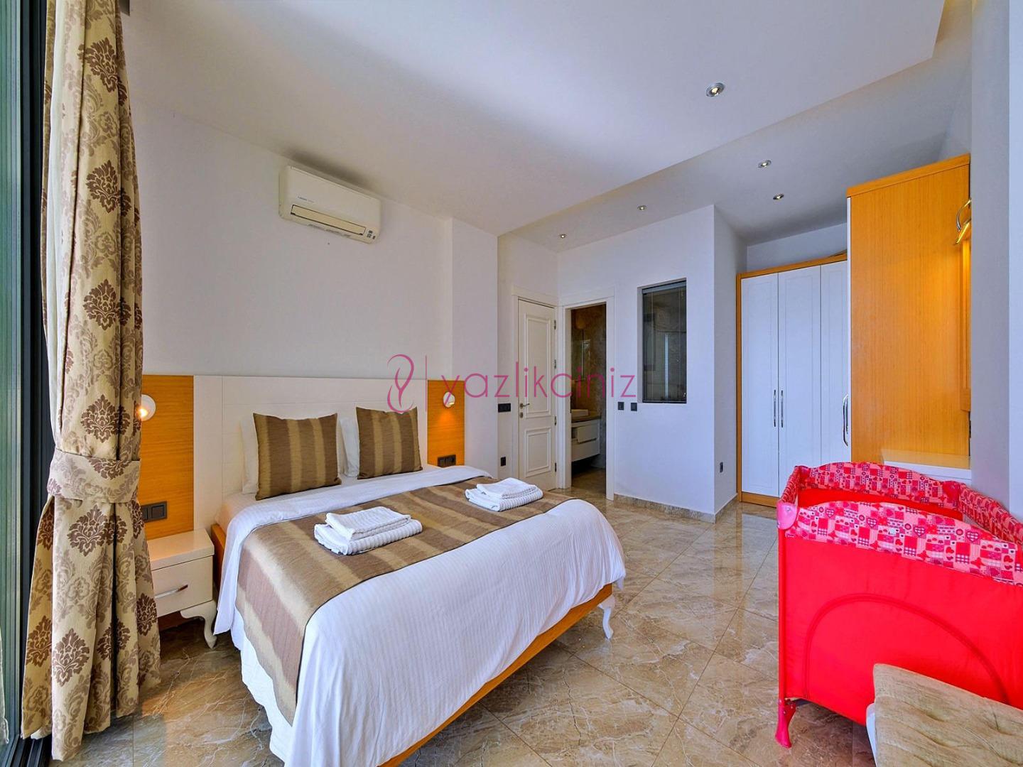 2. Yatak Odası: 1 adet çift kişilik yatak, televizyon, komodin, klima, makyaj masası, televizyon, elbise dolabı, tekli koltuk, banyo ve tuvalet, bulunmaktadır.