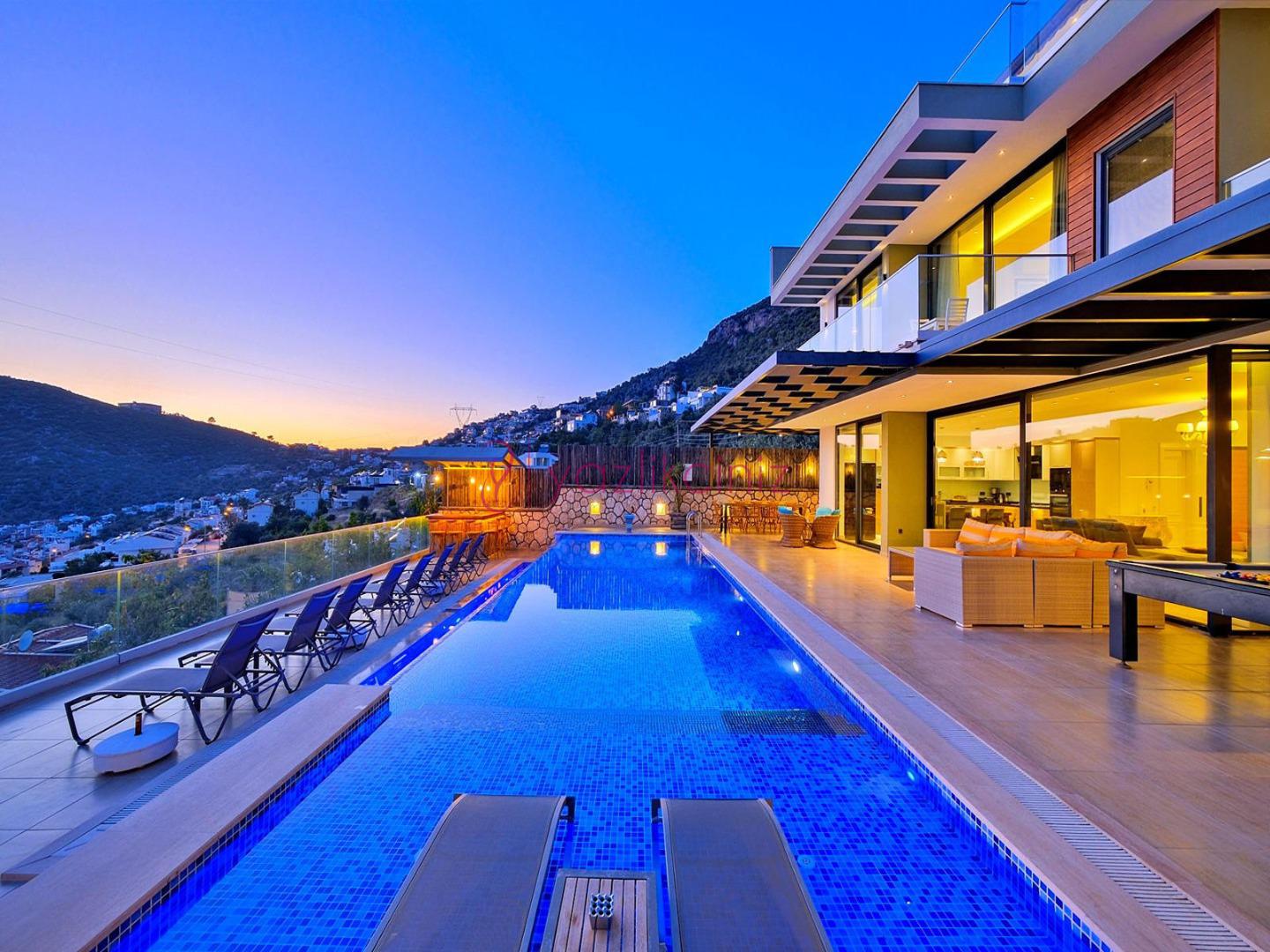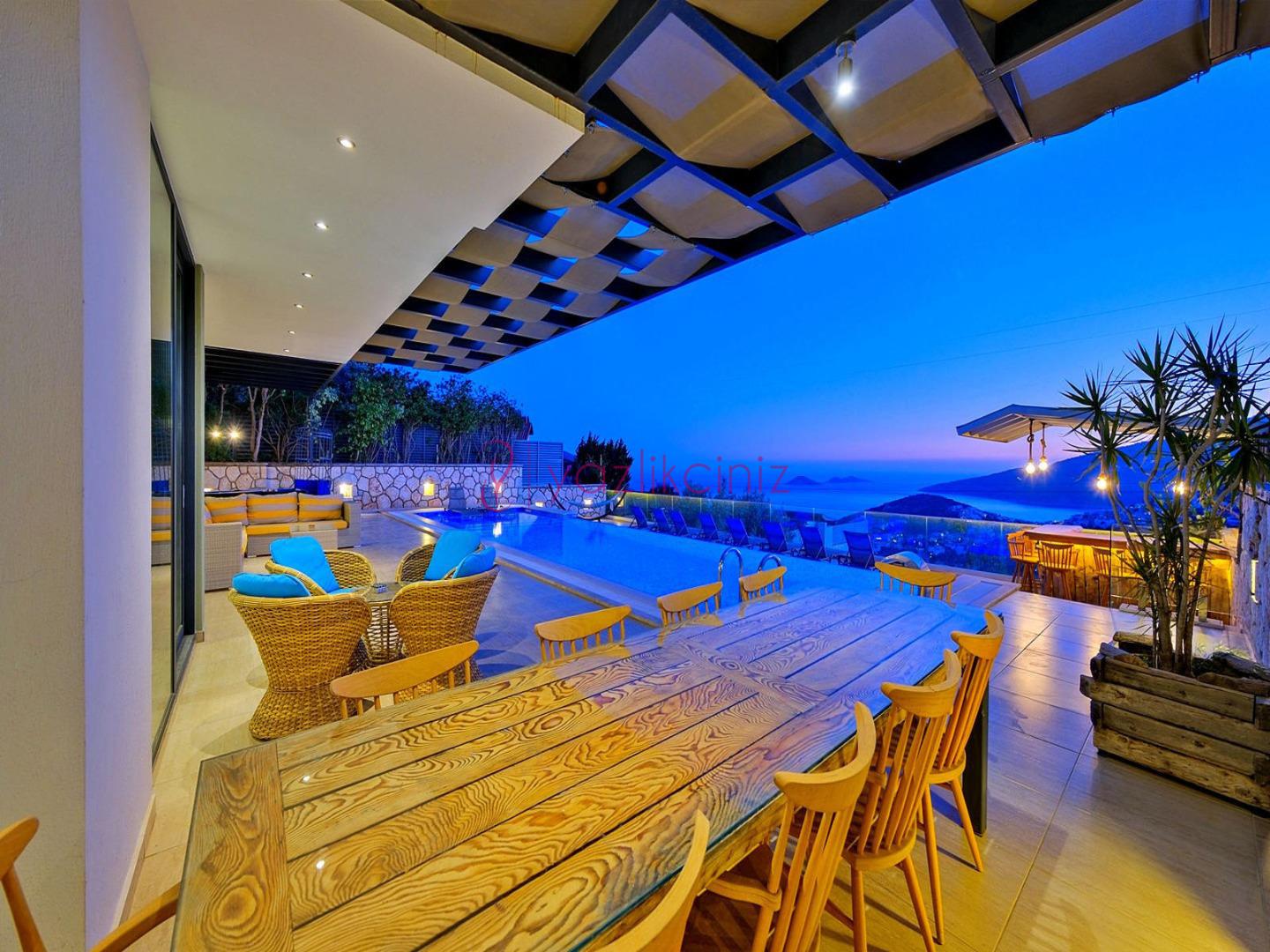 Villa Titanic, Kalkan Kördere bölgesinde konumlandırılmış deniz manzaralı lüks, kiralık villa seçeneklerimizden birisidir. Muhteşem deniz manzarasına sahip olan Villa Titanic, 10 kişi kapasiteli olup misafirlerimizin tüm ihtiyaçları düşünülerek oldukça şık ve modern dizayn edilmiştir. Ayrıca villamızın havuz terasında bilardo,masa tenisi bulunmakta olup sevdiklerinizle deniz manzarası eşliğinde keyifli vakitleri geçirebilirsiniz.Sizler için herşeyin düşünüldüğü villamızda sizlere sadece tatilin tadını çıkarmak kalıyor.