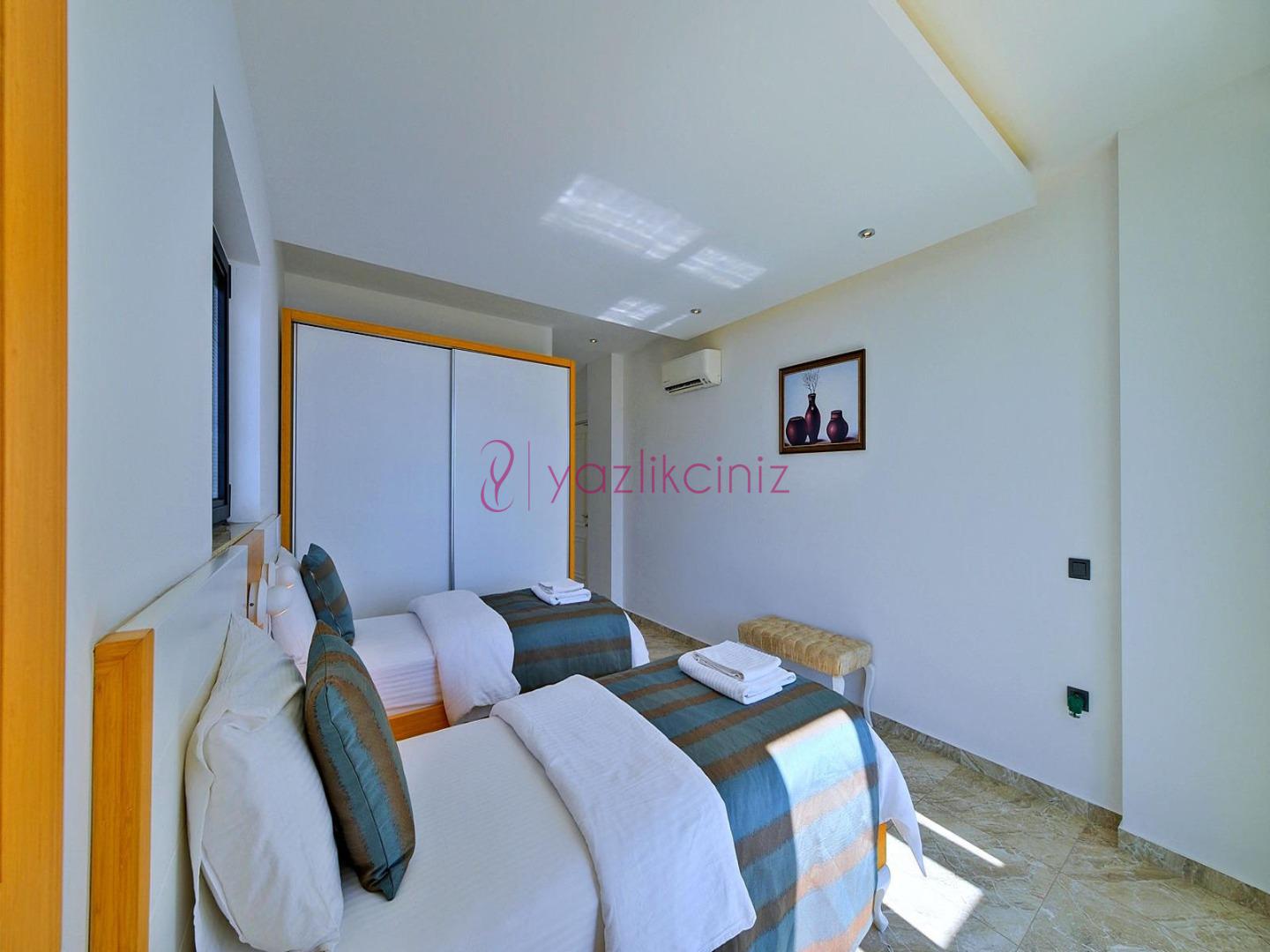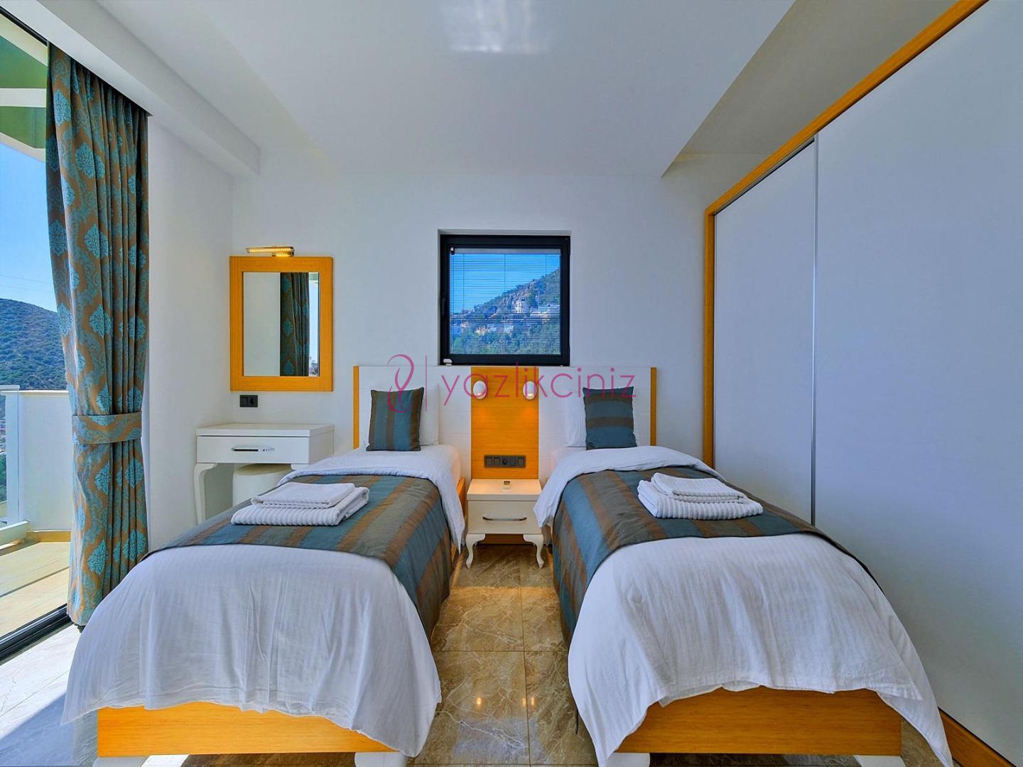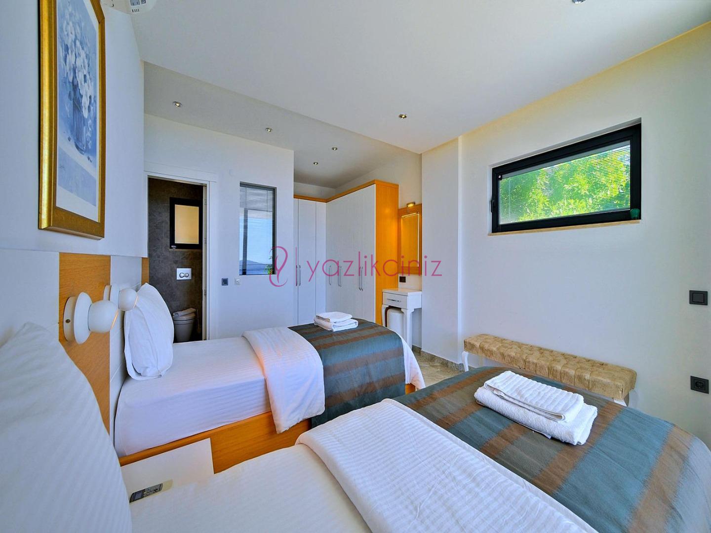 5. Yatak Odası: 2 adet tek kişilik yatak, komodin, klima, makyaj masası, televizyon, elbise dolabı, banyo ve tuvalet, tekli koltuk bulunmaktadır.