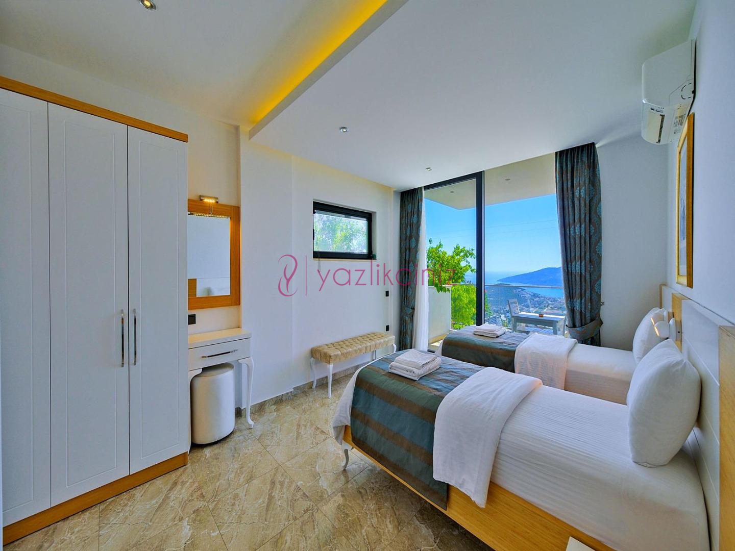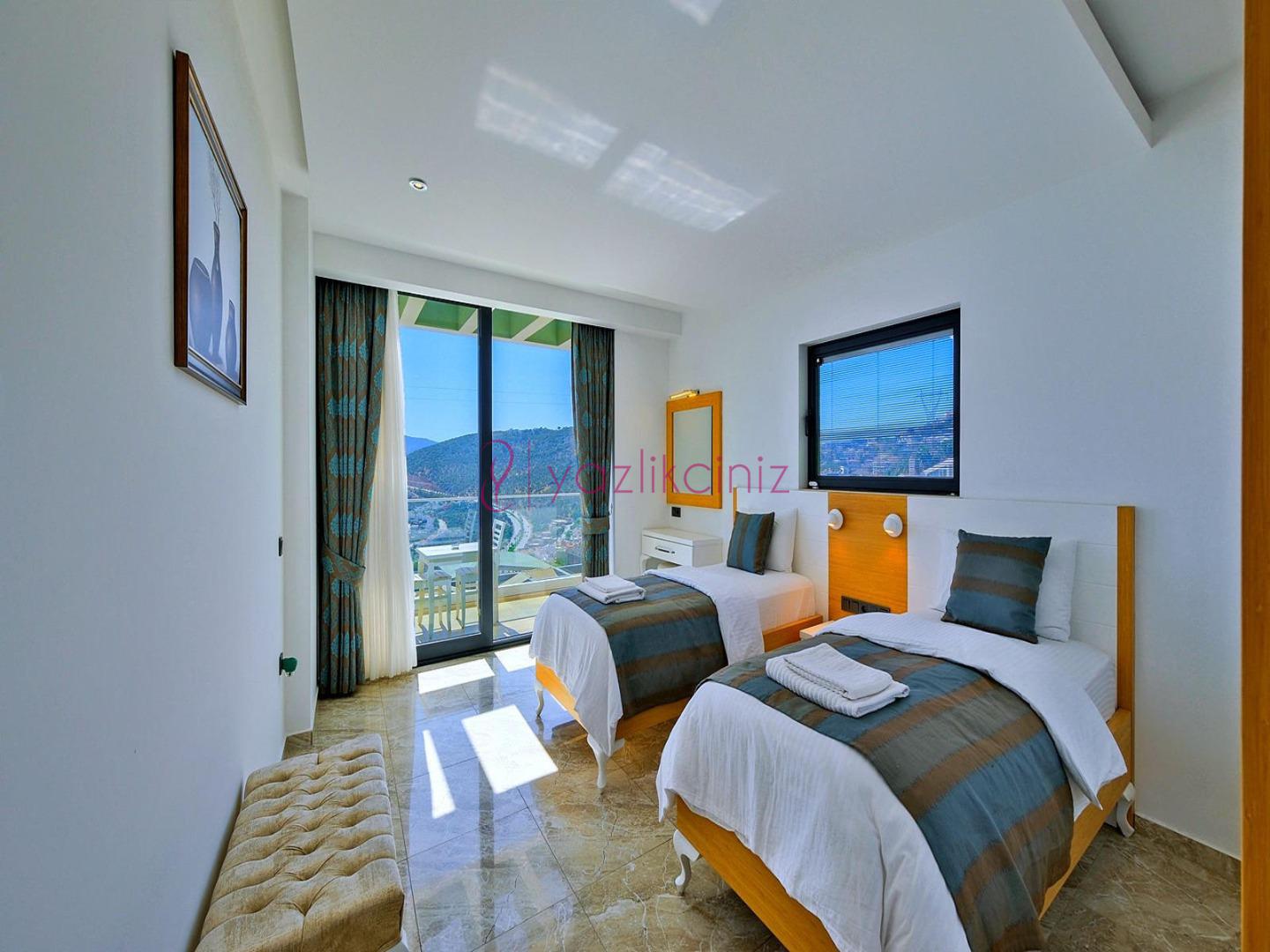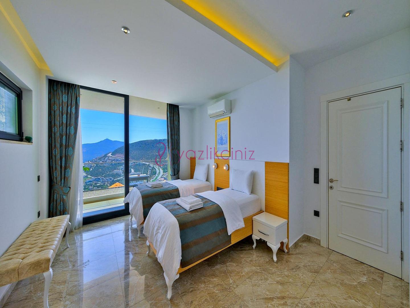 5. Yatak Odası: 2 adet tek kişilik yatak, komodin, klima, makyaj masası, televizyon, elbise dolabı, banyo ve tuvalet, tekli koltuk bulunmaktadır.