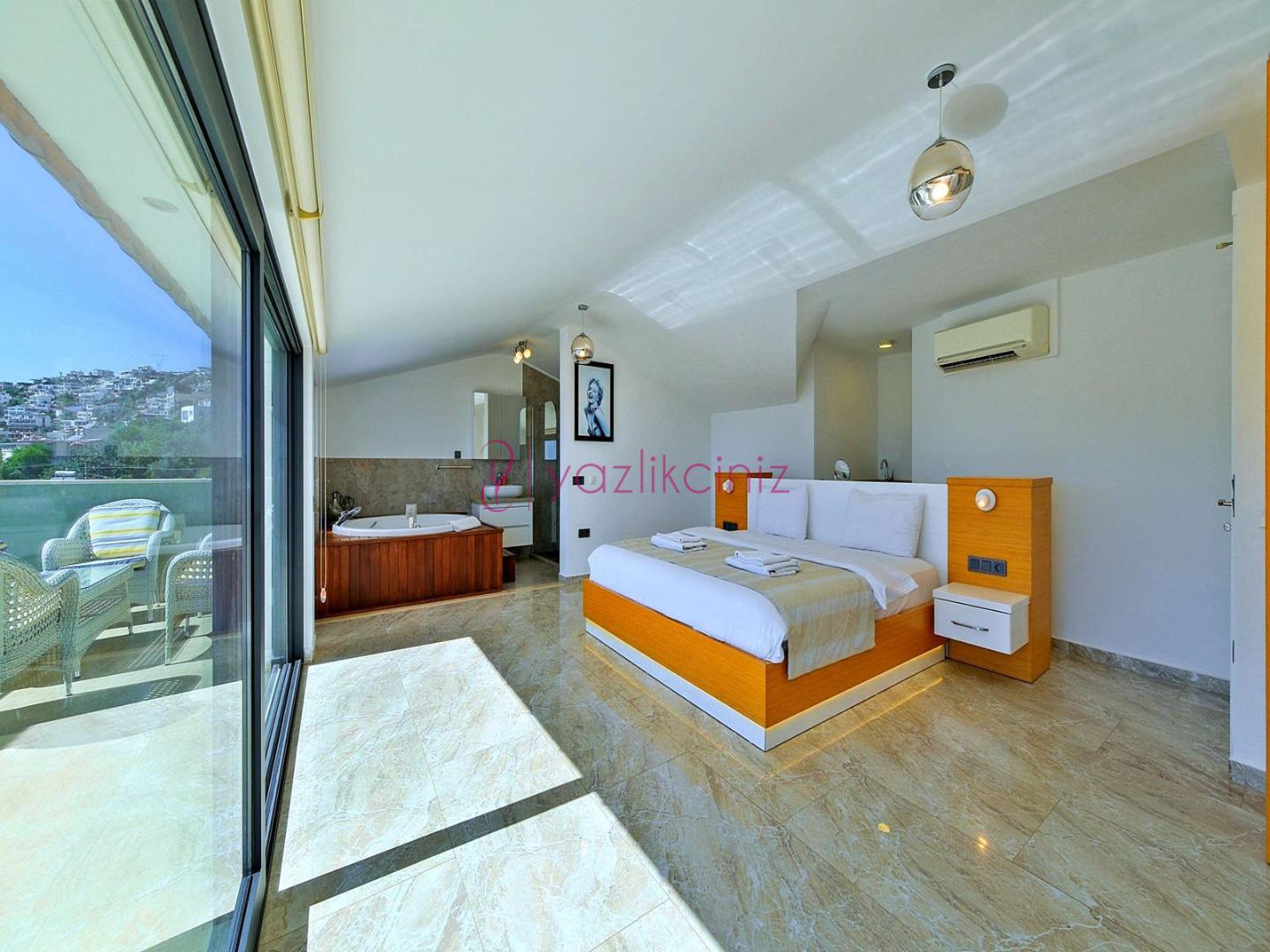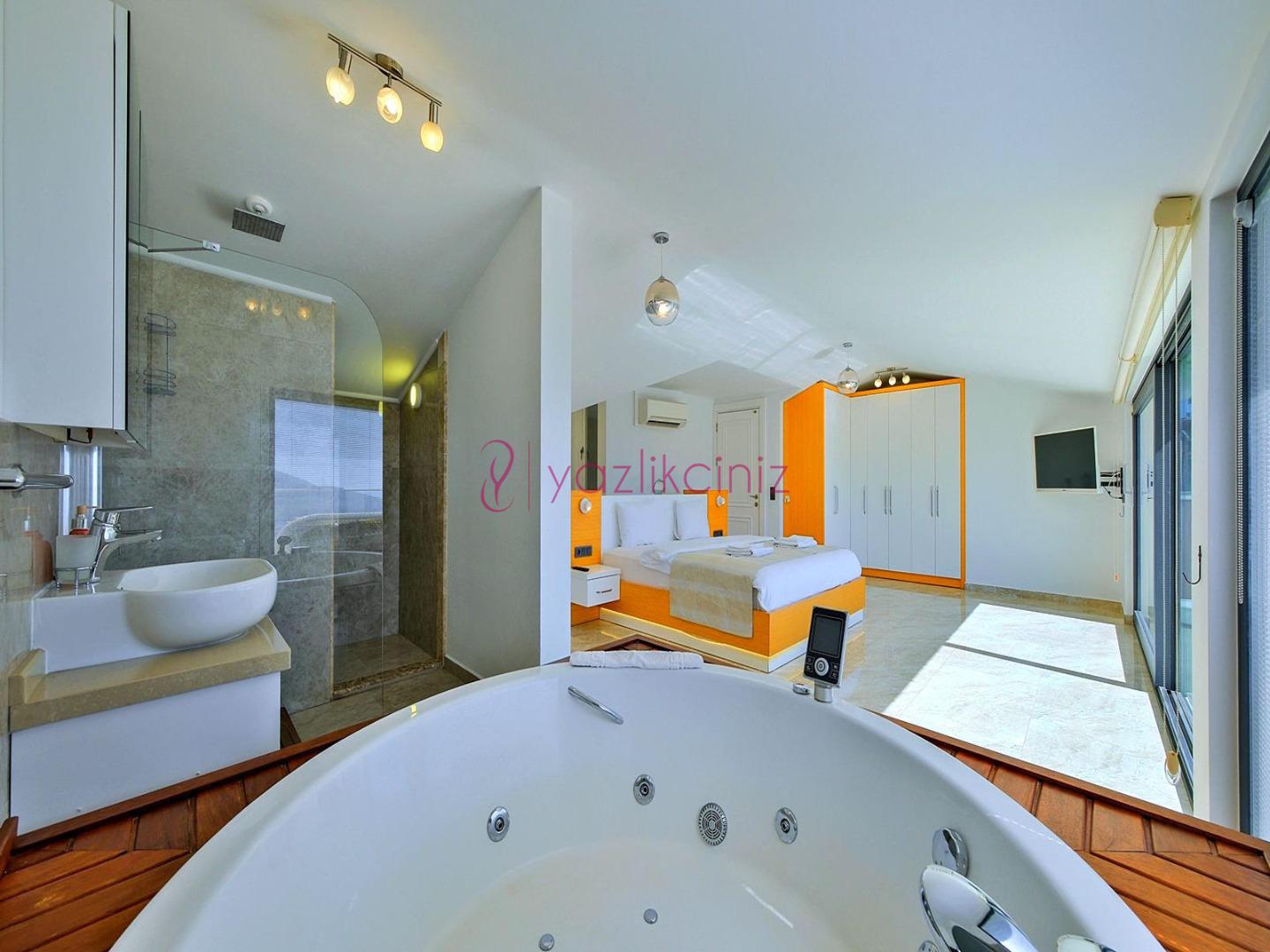 1. Yatak Odası: 1 adet çift kişilik yatak, jakuzi, komodin, makyaj masası, televizyon, klima, elbise dolabı, tekli koltuk, banyo ve tuvalet, bulunmaktadır.