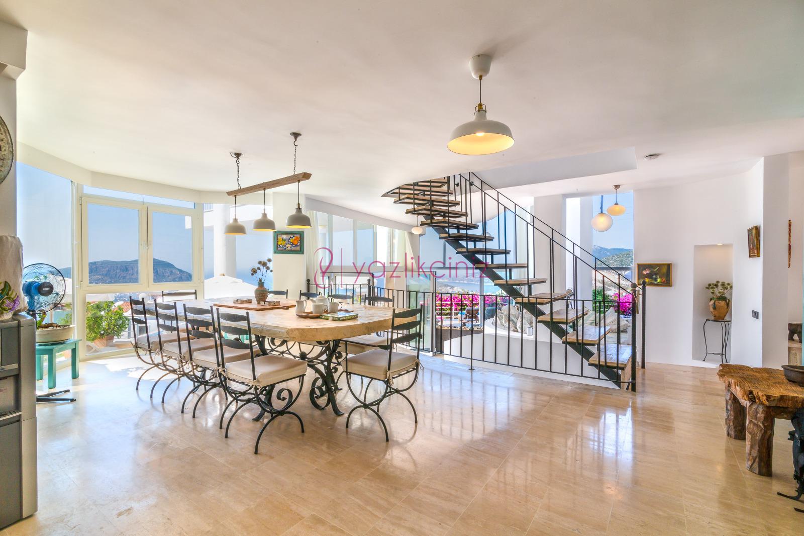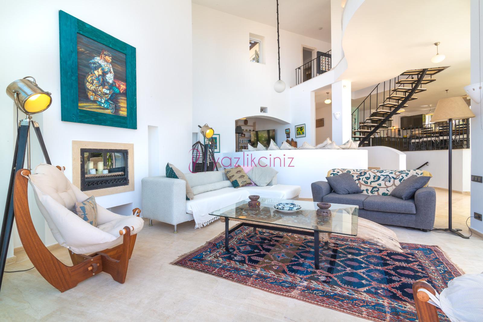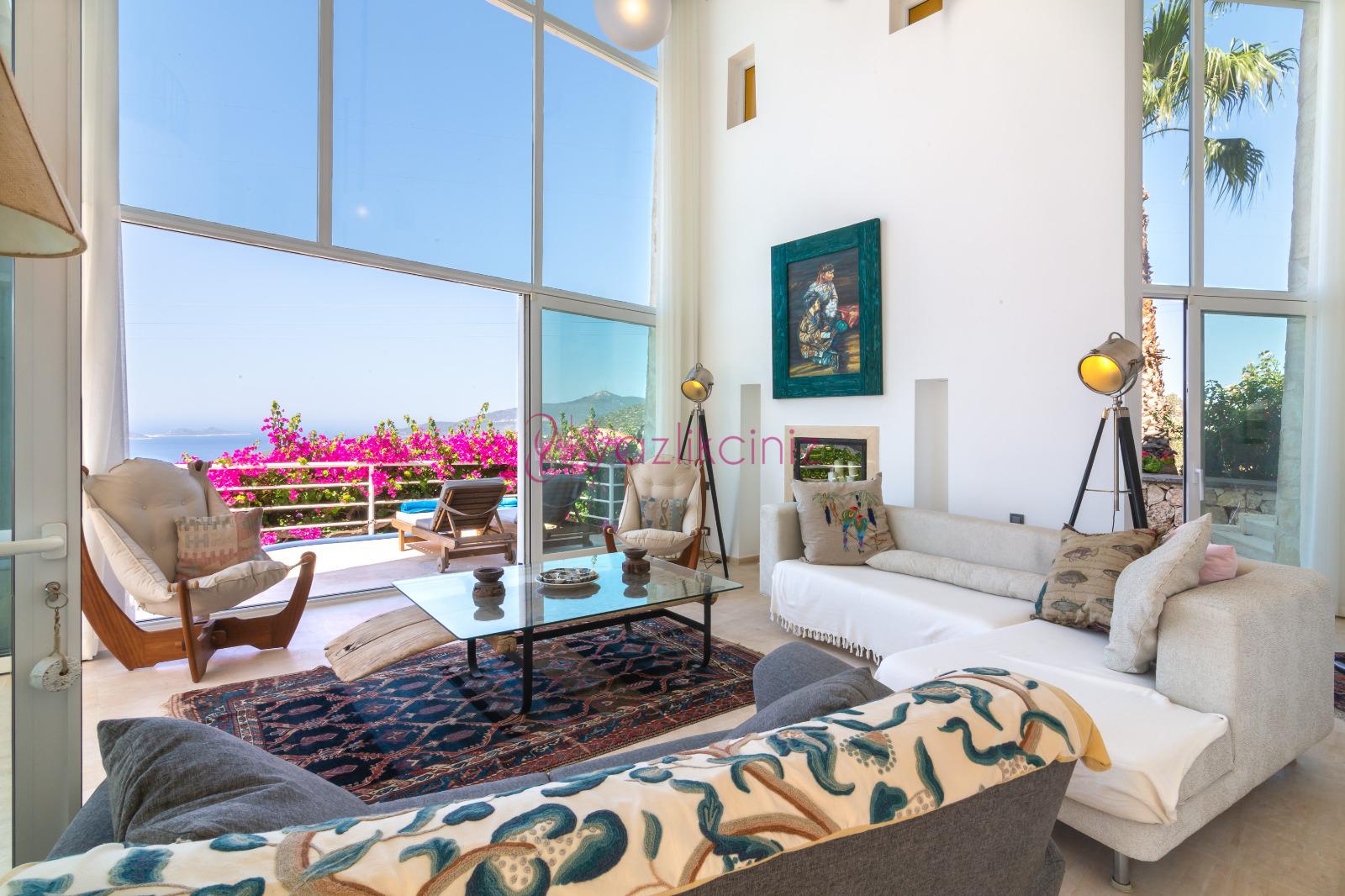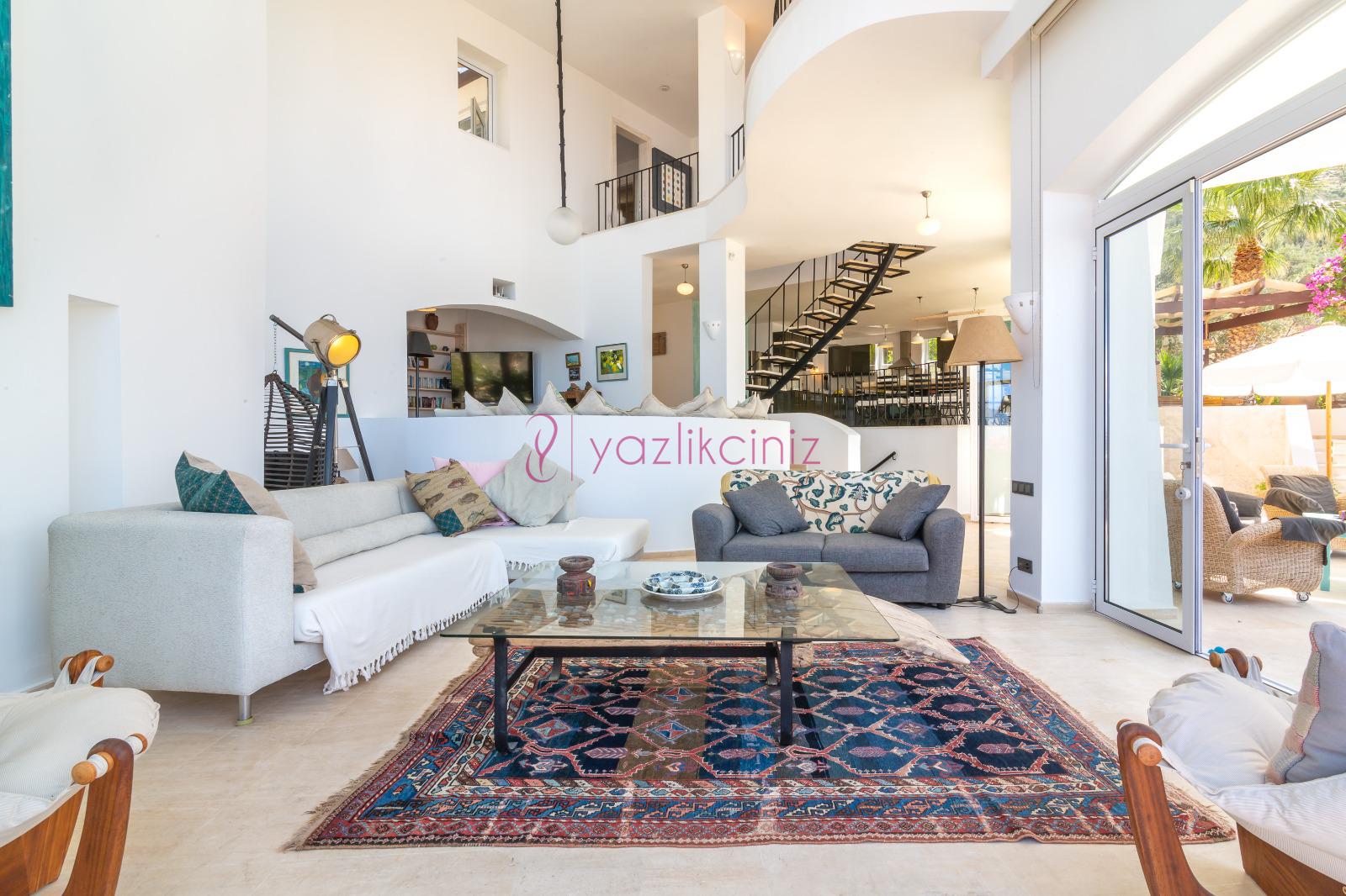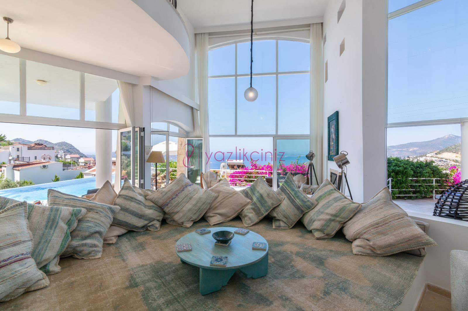 Deniz manzaralı salonunda oturma grubu, plazma TV, uydu alıcısı, klima, ütü ve ütü masası, sehpa ve havuz başına çıkış bulunmaktadır.