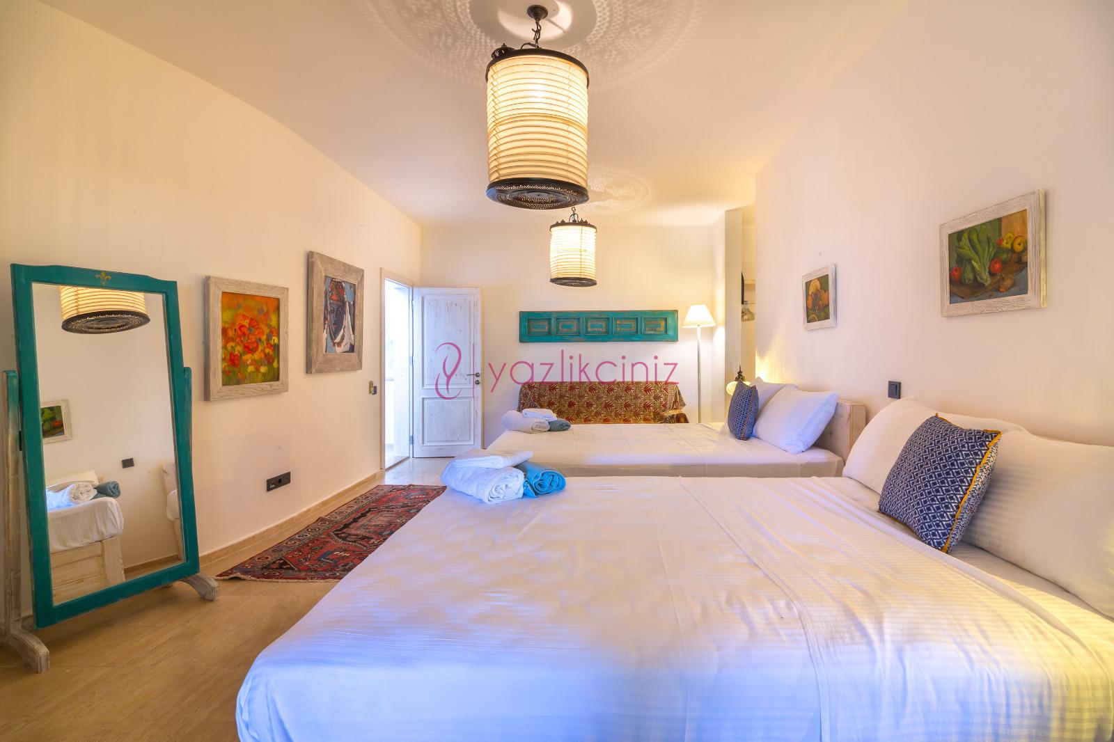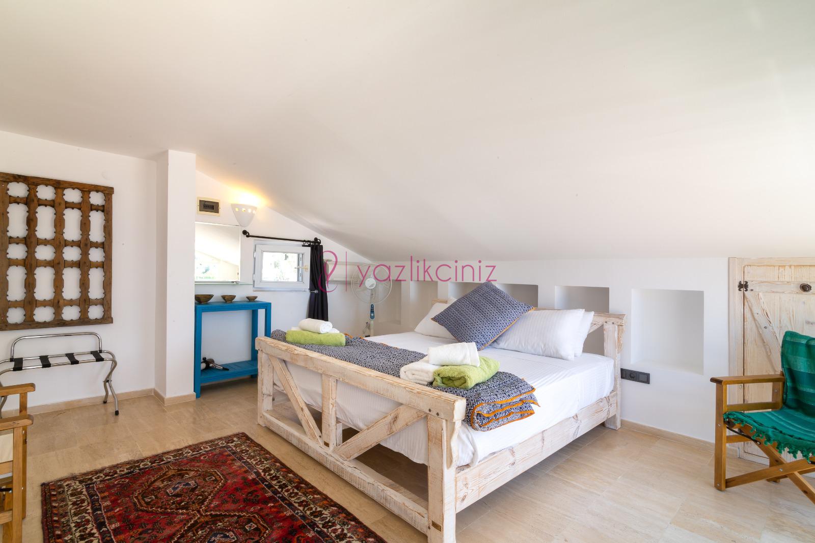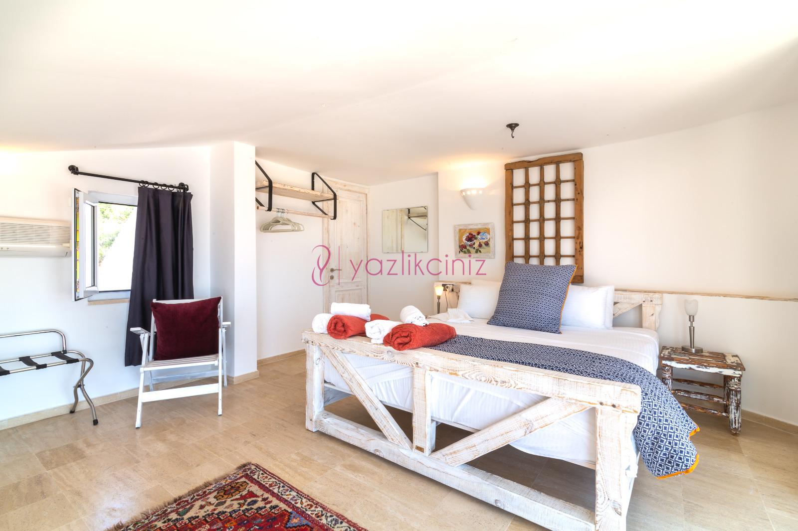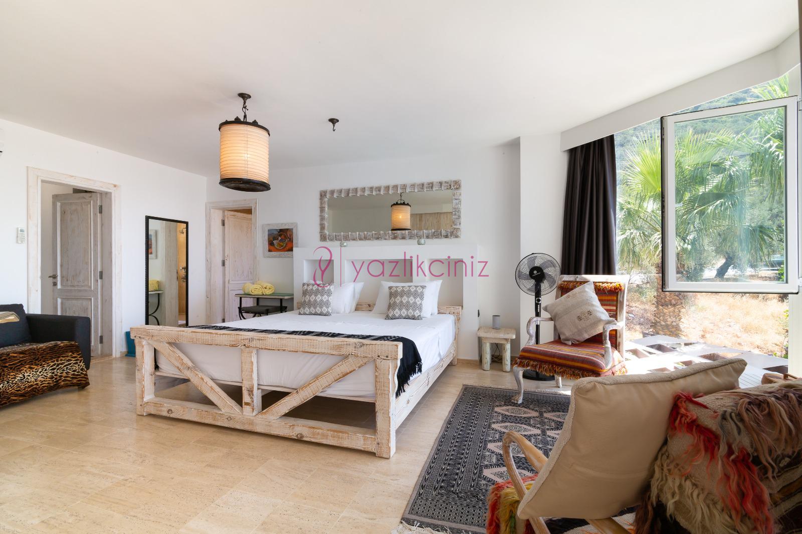 3. Yatak Odası: Çift kişilik süit yatak odası, klima, makyaj masası, elbise dolabı, komodin, banyo ve lavabo bulunmaktadır.