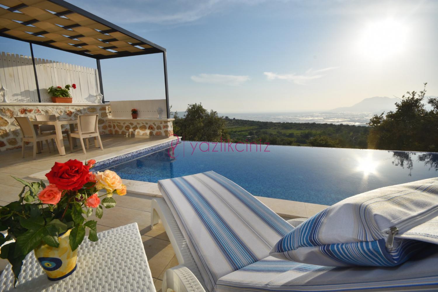 Villa Ural Kalkan Üzümlü bölgesindedir. Üzümlü ‘nün essiz gün batimi manzarası içinde romantik bir balayı fırsatı yakalayabilirsiniz. Tek yatak odalı 2 kişiye özel, ısıtmalı kapalı havuza ve korunaklı dış havuza sahip Villa Ural gözlerden uzak bir tatil geçirmek isteyen balayı çiftlerimiz için idealdir.