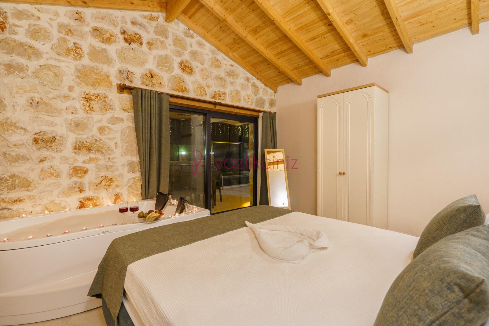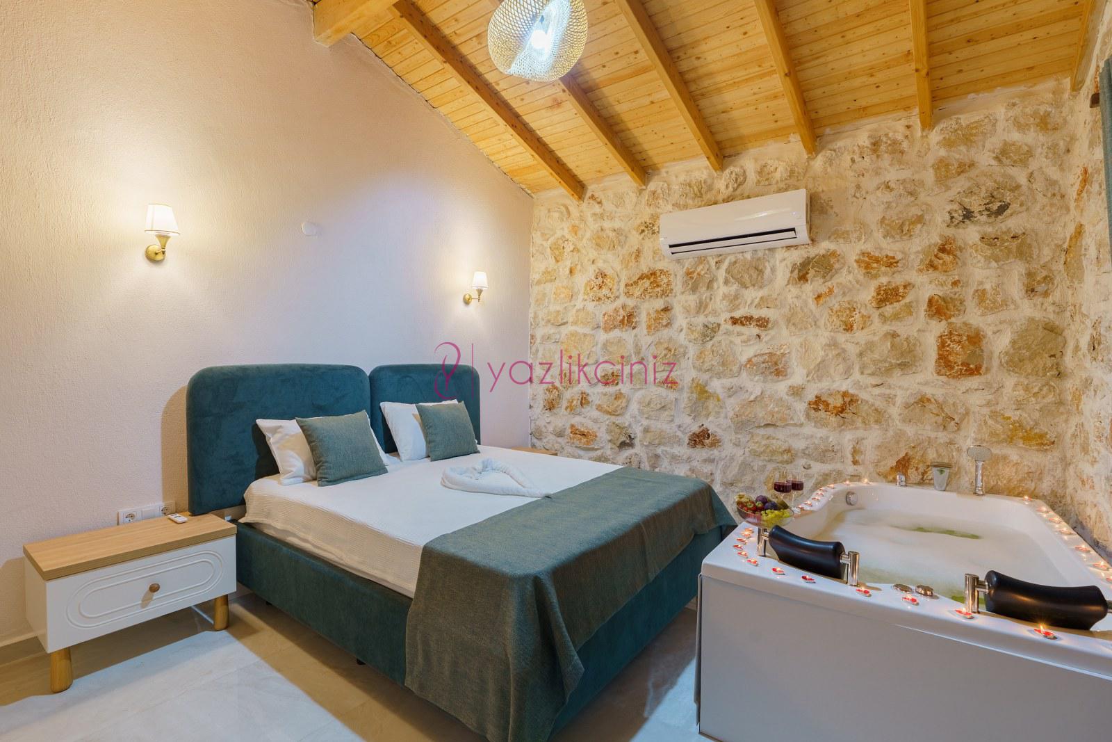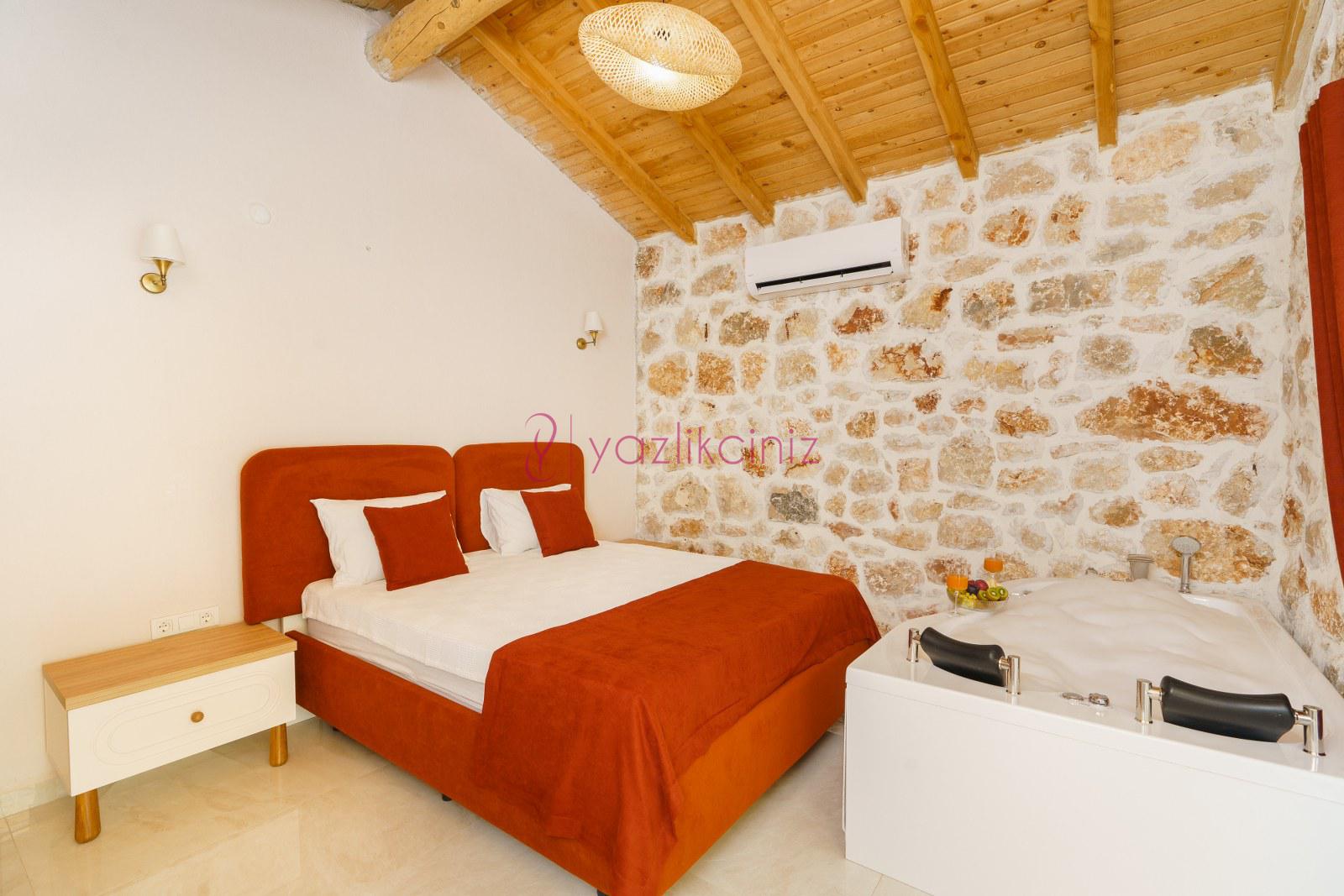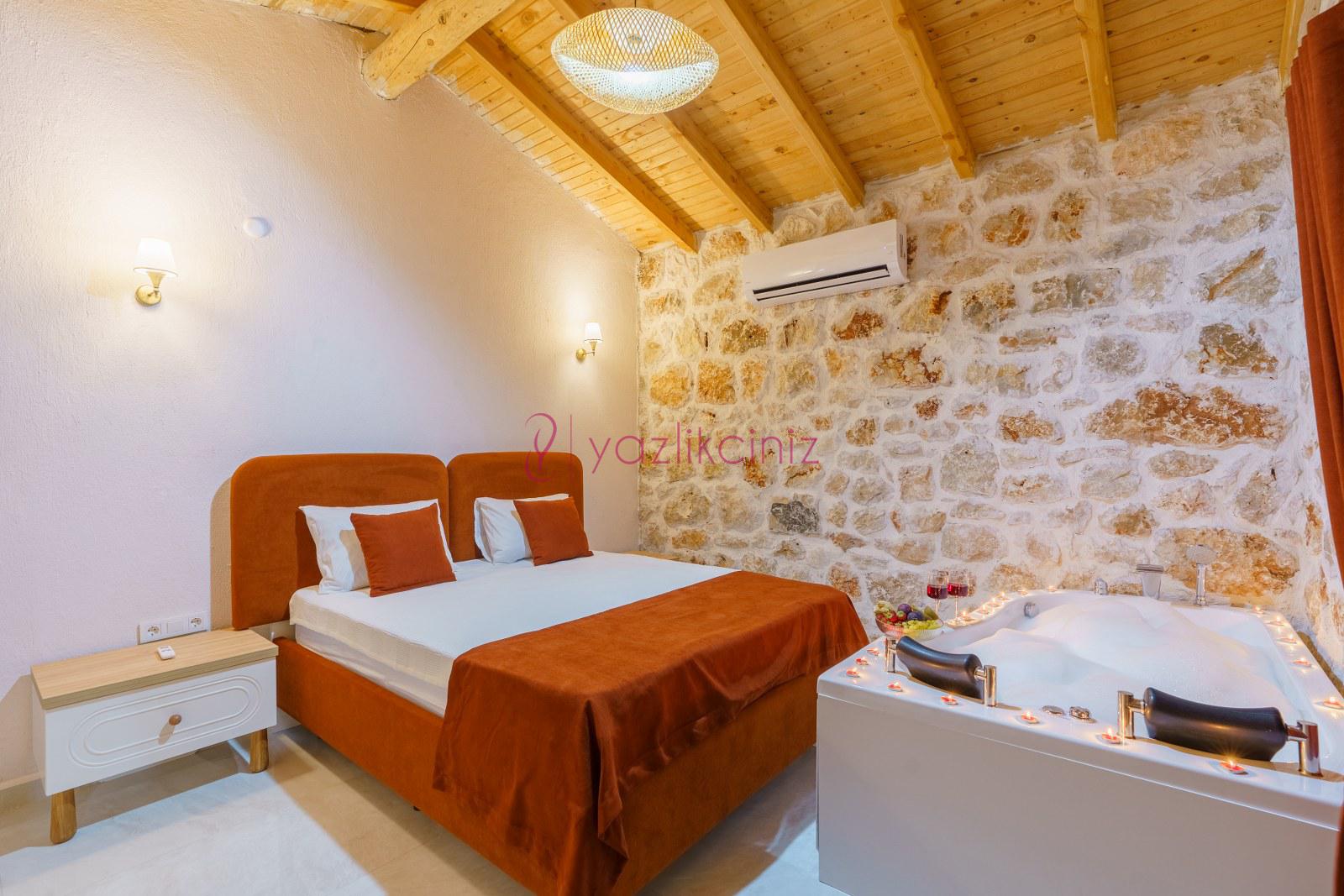 1. Yatak Odası: 1 adet çift kişilik yatak, klima,çift kişilik jakuzi, elbise dolabı, komodin, makyaj masası ve banyo, tuvalet, bulunmaktadır.