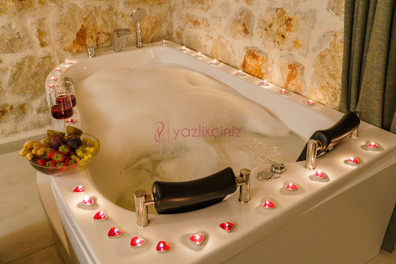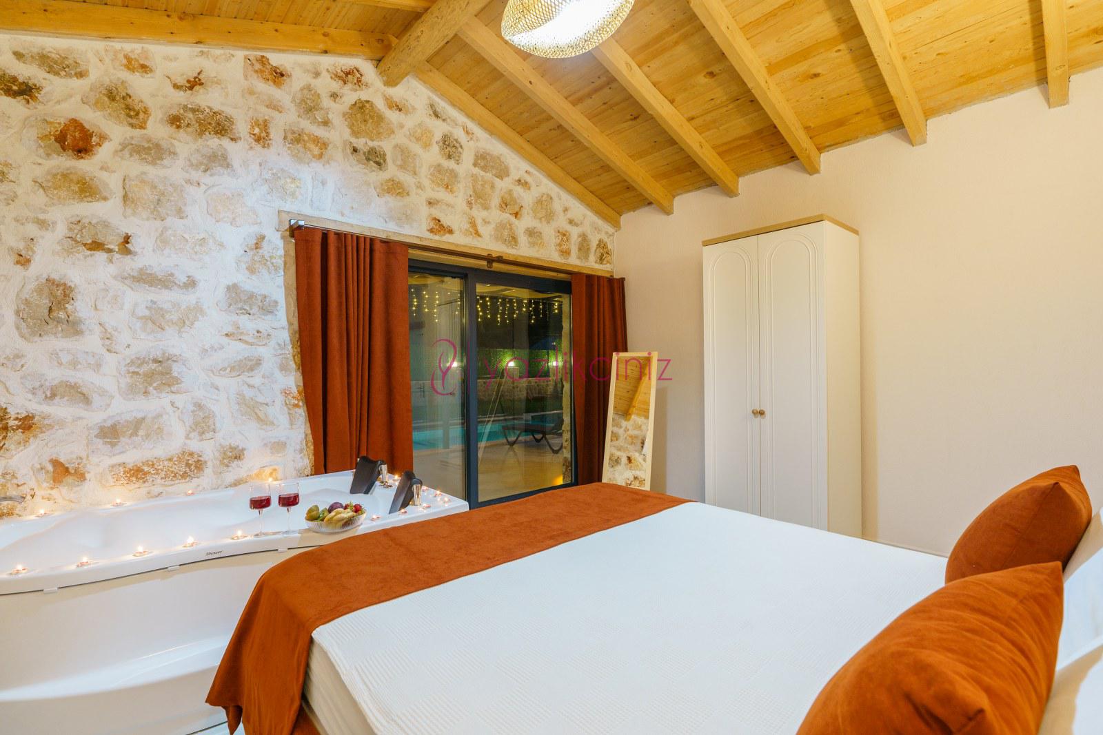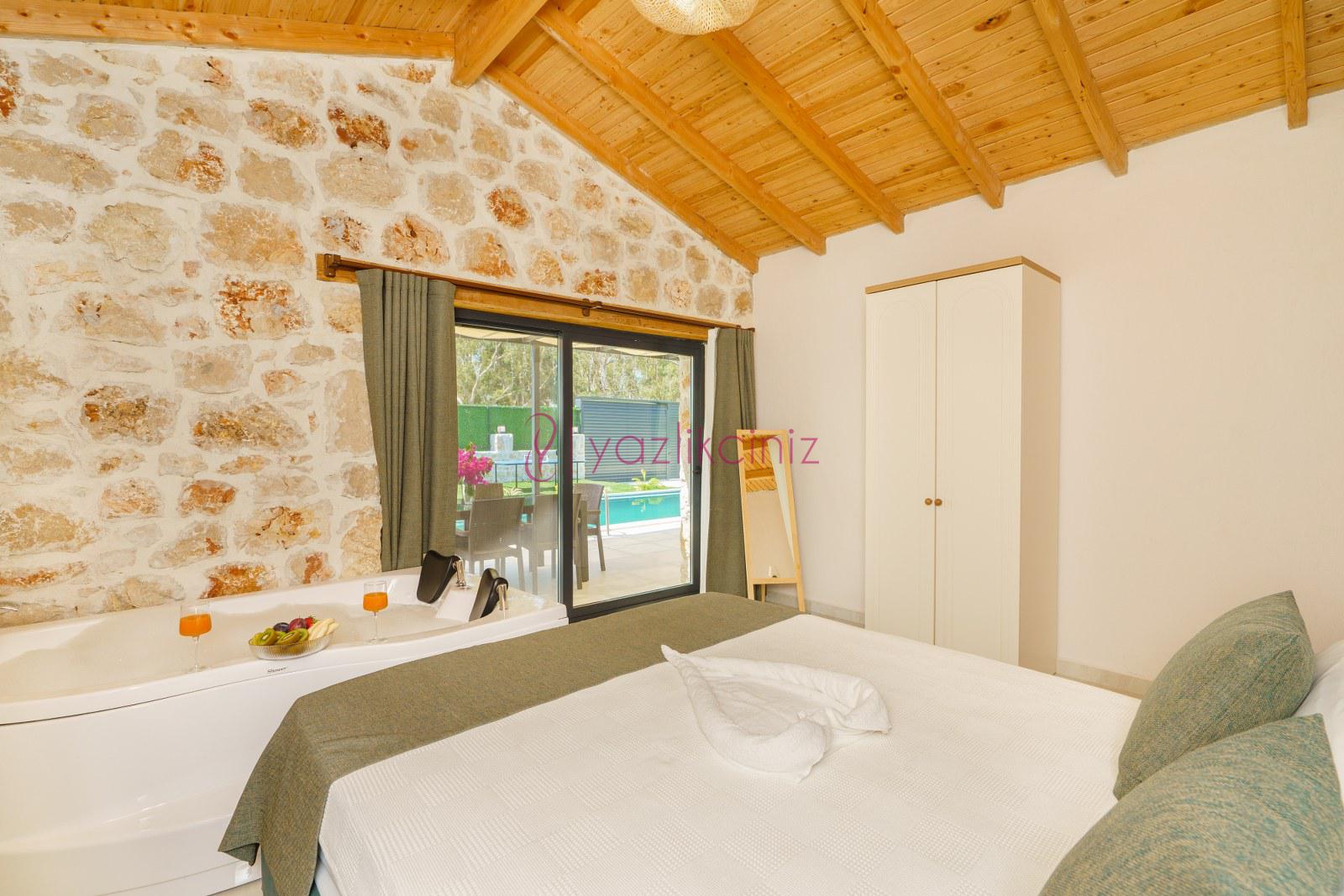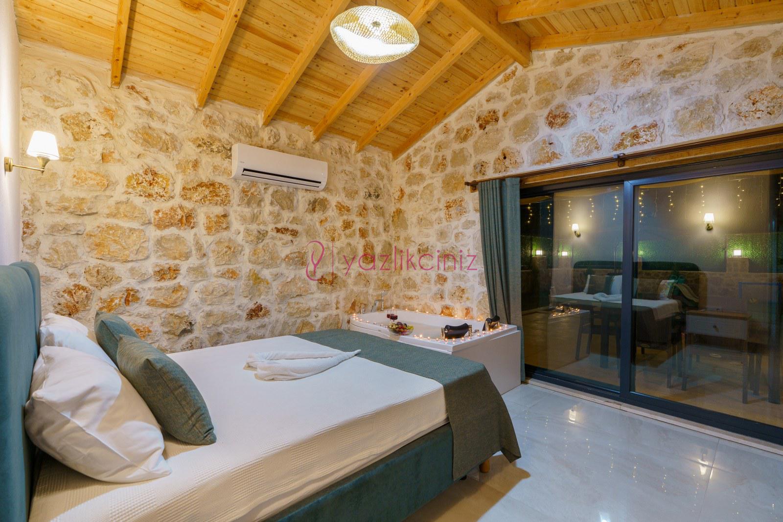 1. Yatak Odası: 1 adet çift kişilik yatak, klima,çift kişilik jakuzi, elbise dolabı, komodin, makyaj masası ve banyo, tuvalet, bulunmaktadır.