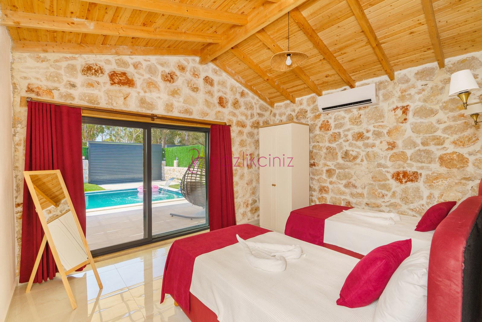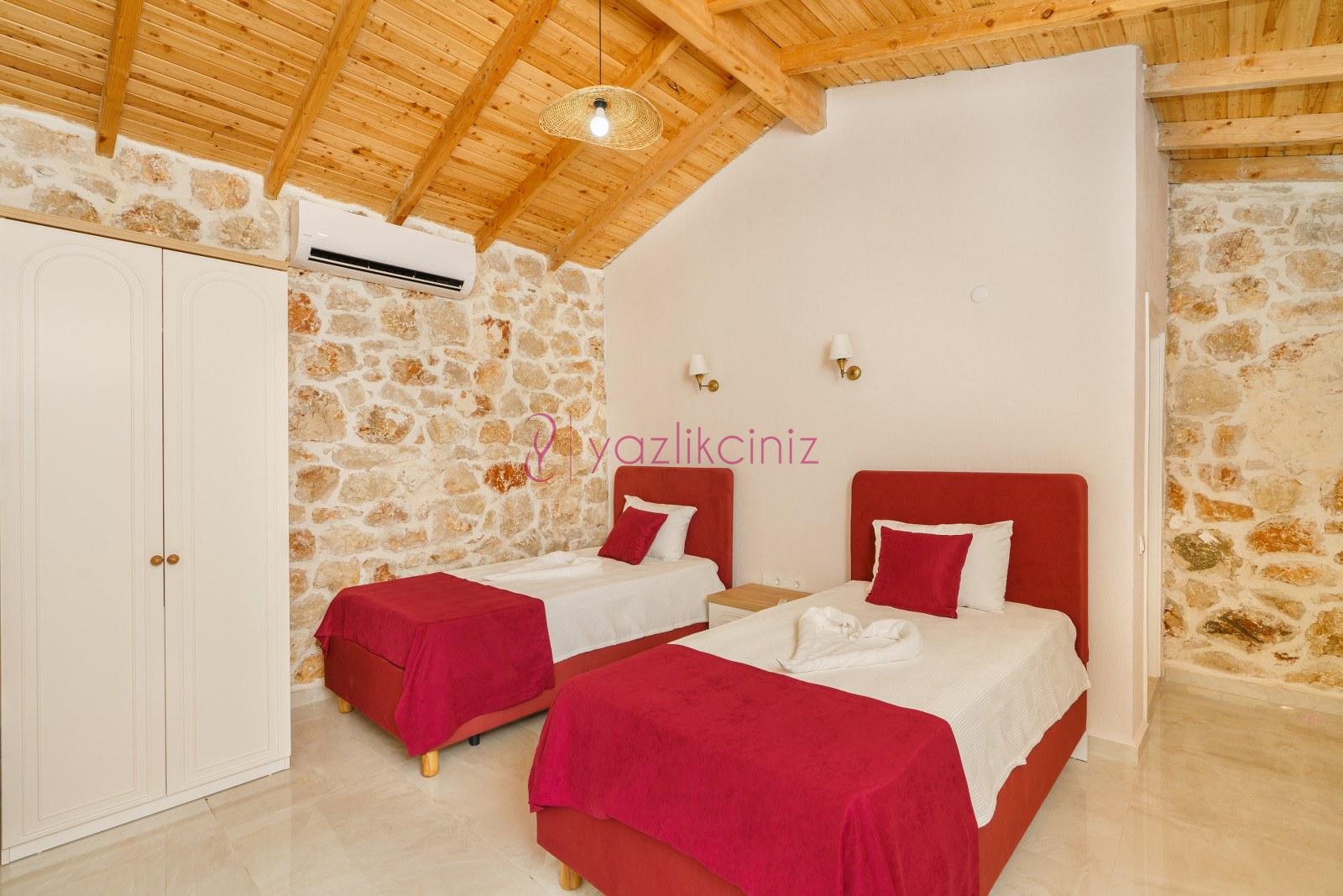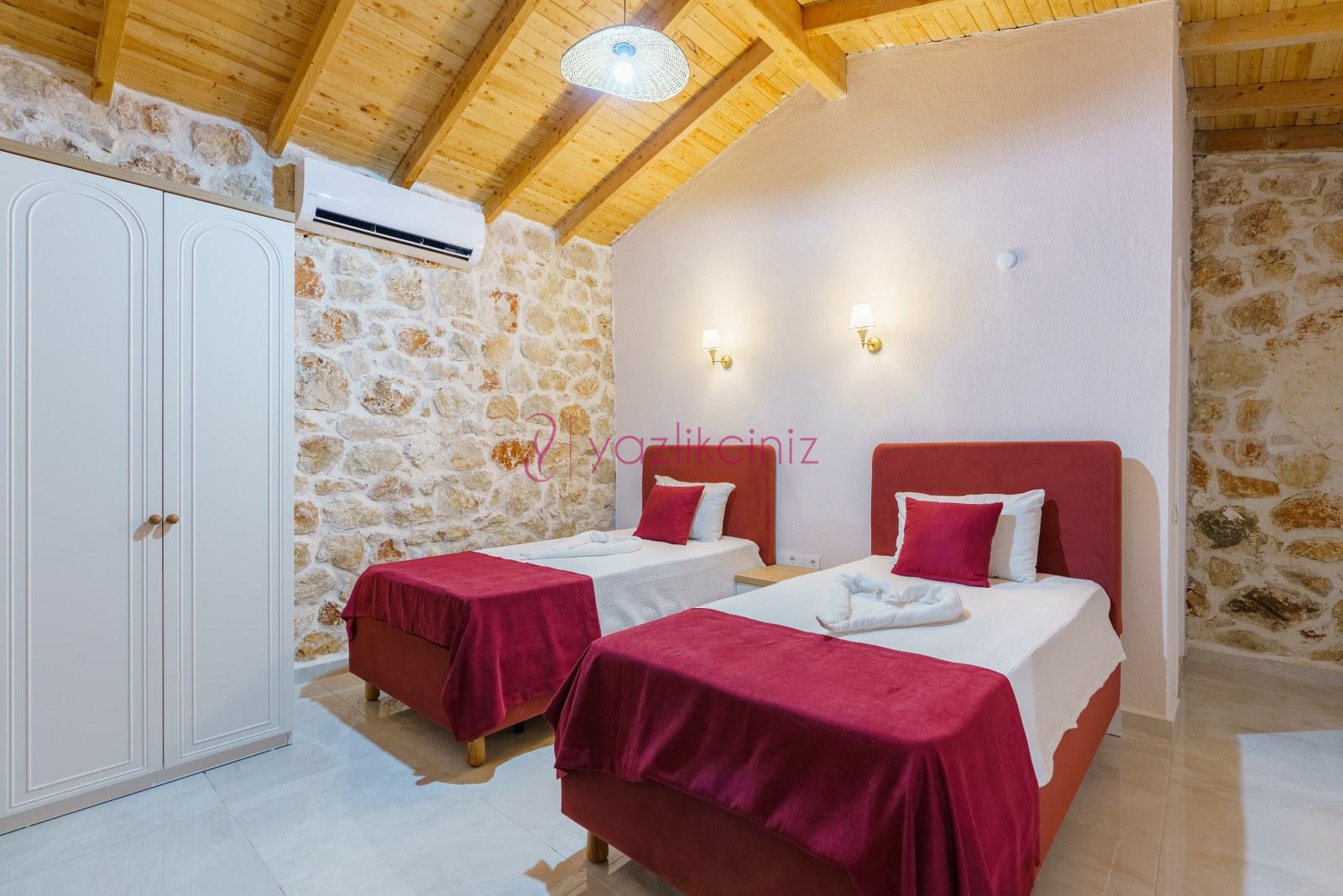 2. Yatak Odası: 2 adet tek kişilik yatak, klima, elbise dolabı, komodin, makyaj masası ve banyo, tuvalet, bulunmaktadır.