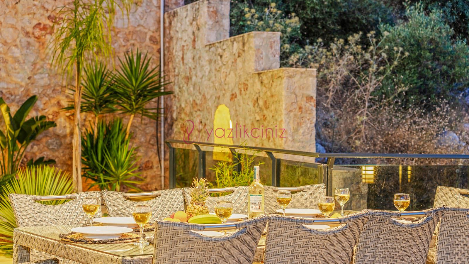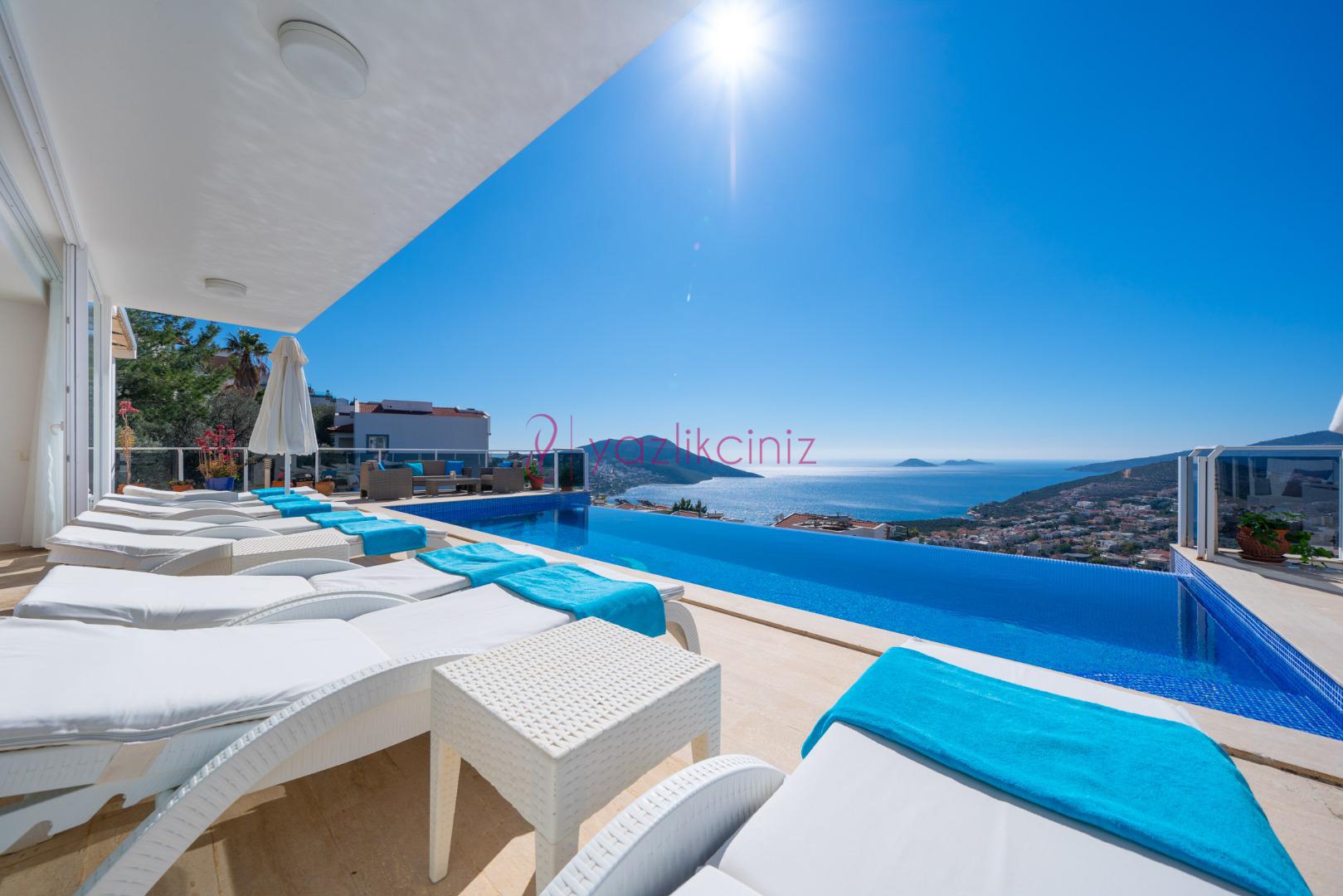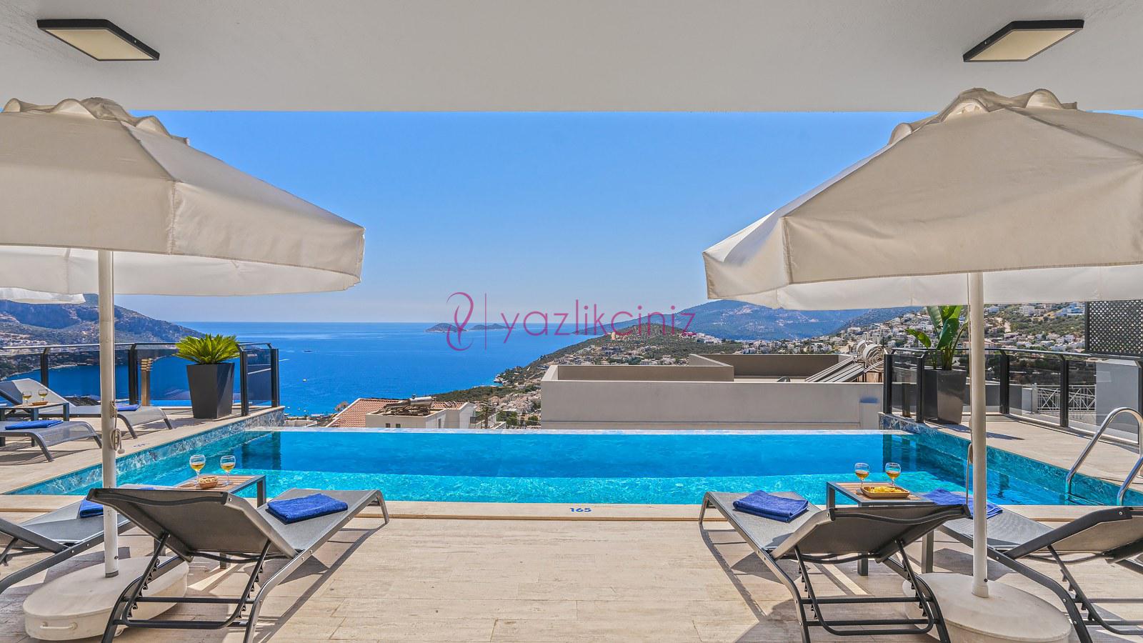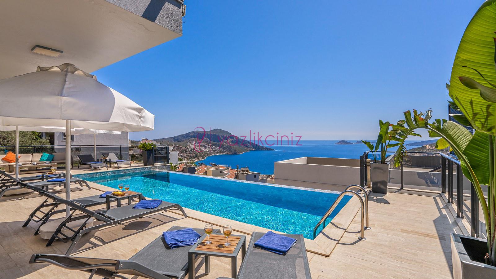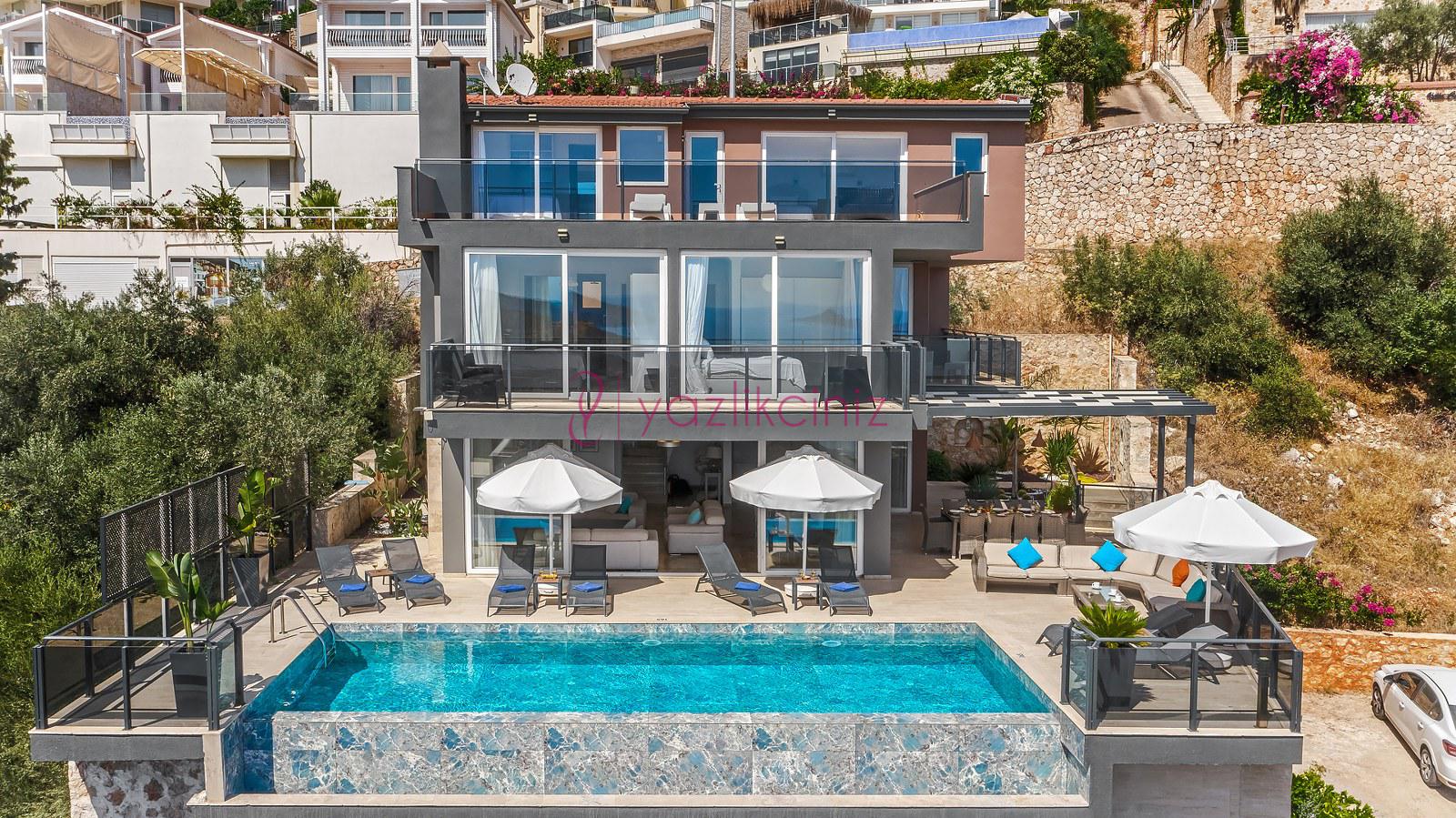 Villa Waratah, Kalkan Kızıltaş mevkiinde harikulade deniz manzarası ile Kalkanı ayaklarınızın altına sermektedir.