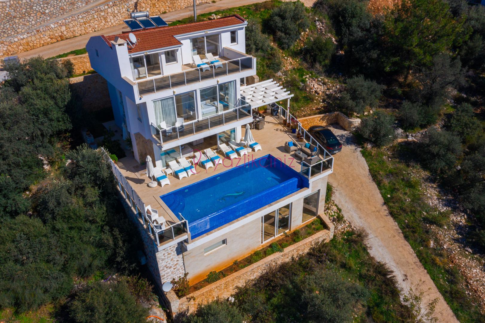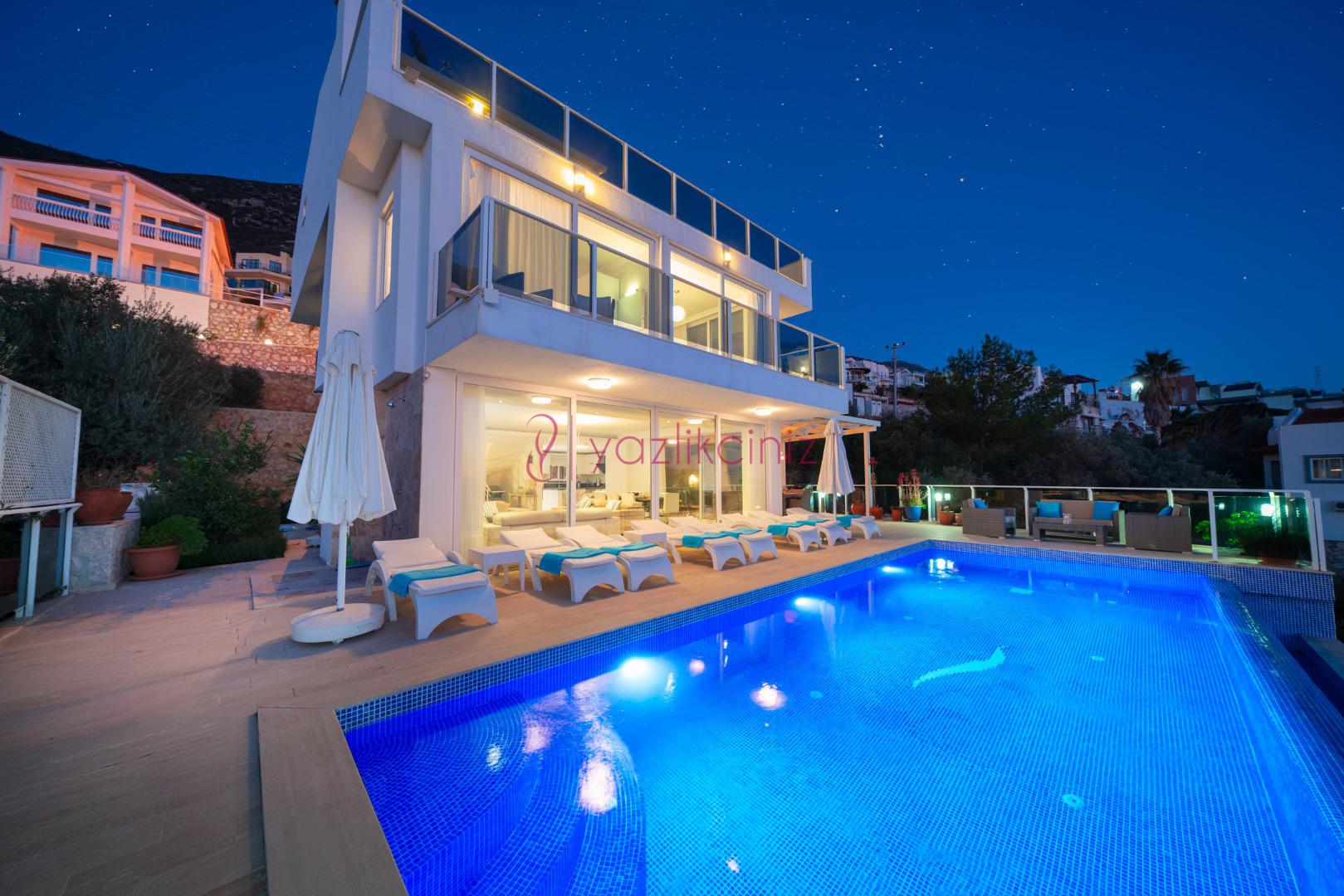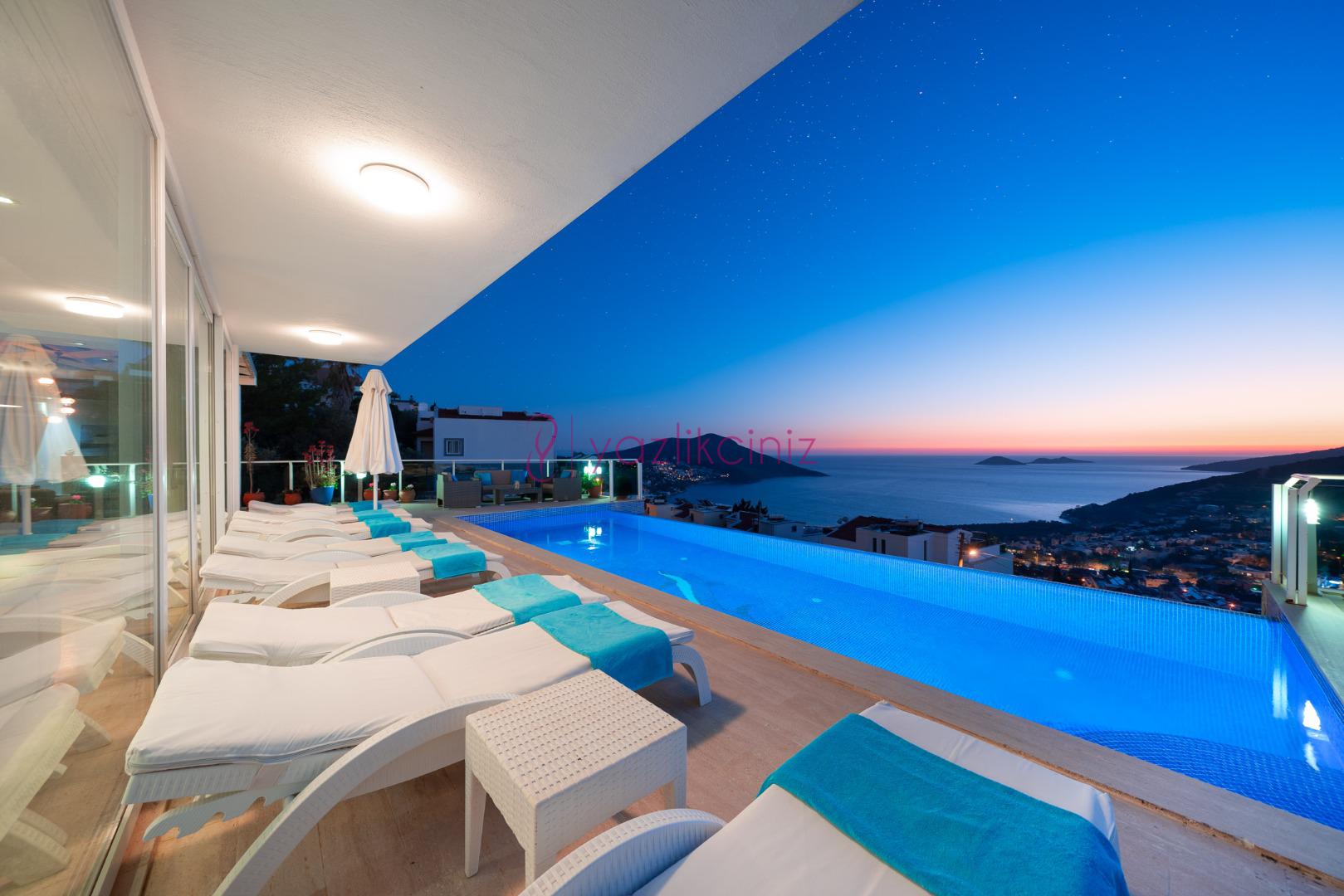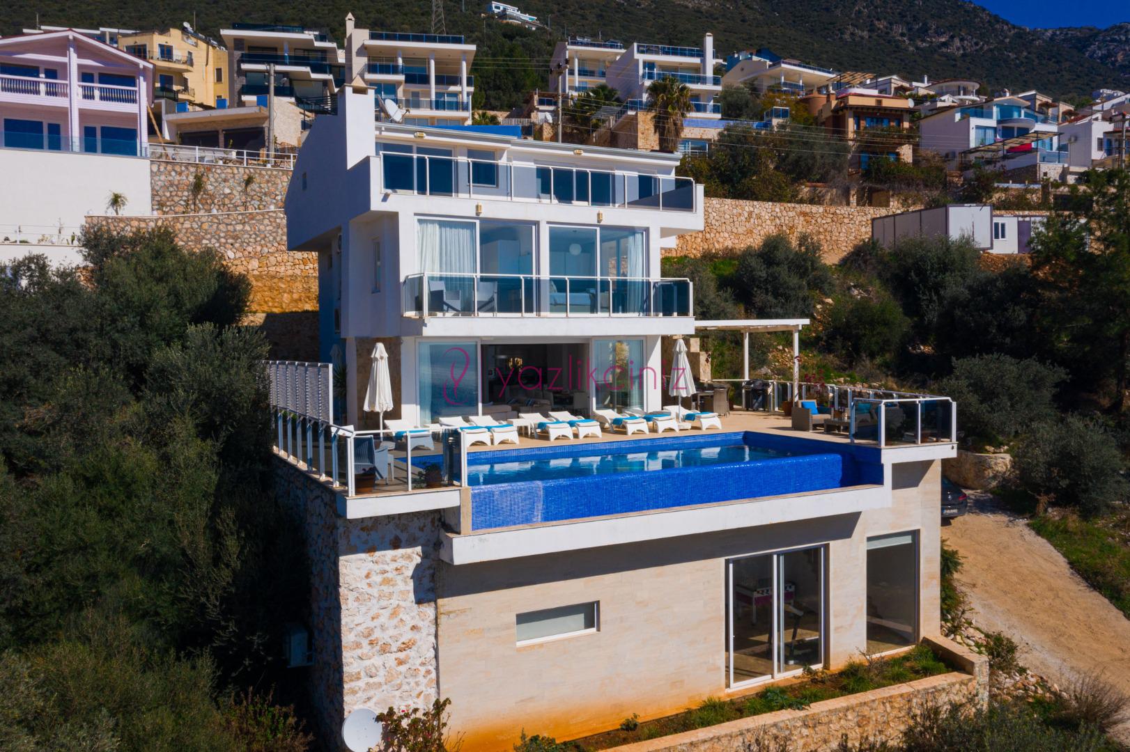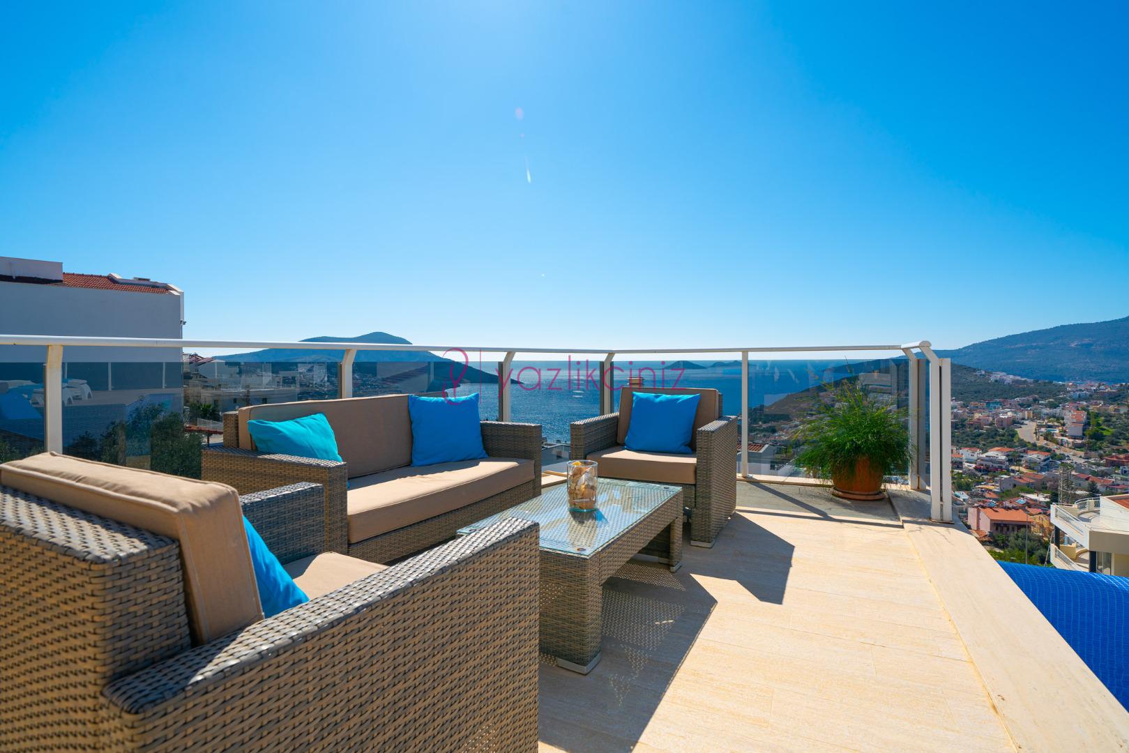 Villa Waratah, Kalkan Kızıltaş mevkiinde harikulade deniz manzarası ile Kalkanı ayaklarınızın altına sermektedir.