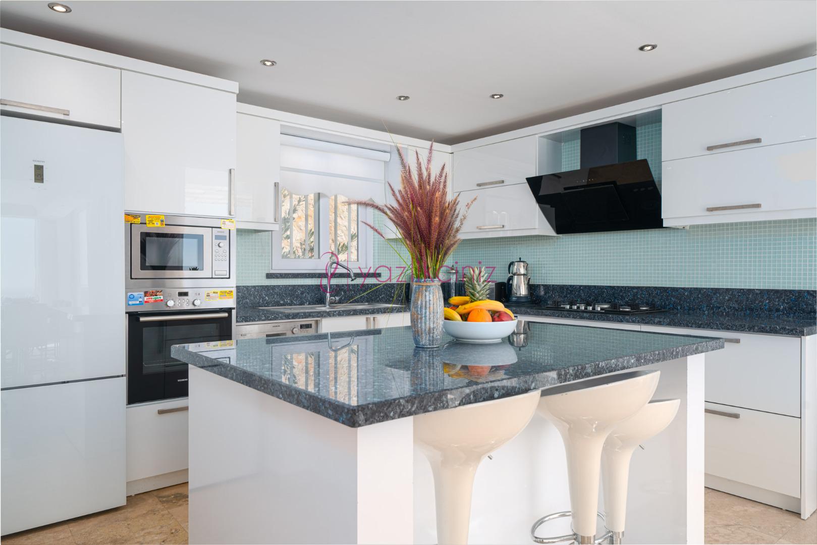 Buzdolabı, çamaşır makinesi, bulaşık makinesi, fırın, 4'lü ocak, su ısıtıcı(ketle), ekmek kızartma makinesi ve 10 kişilik mutfak takımı bulunmaktadır.
