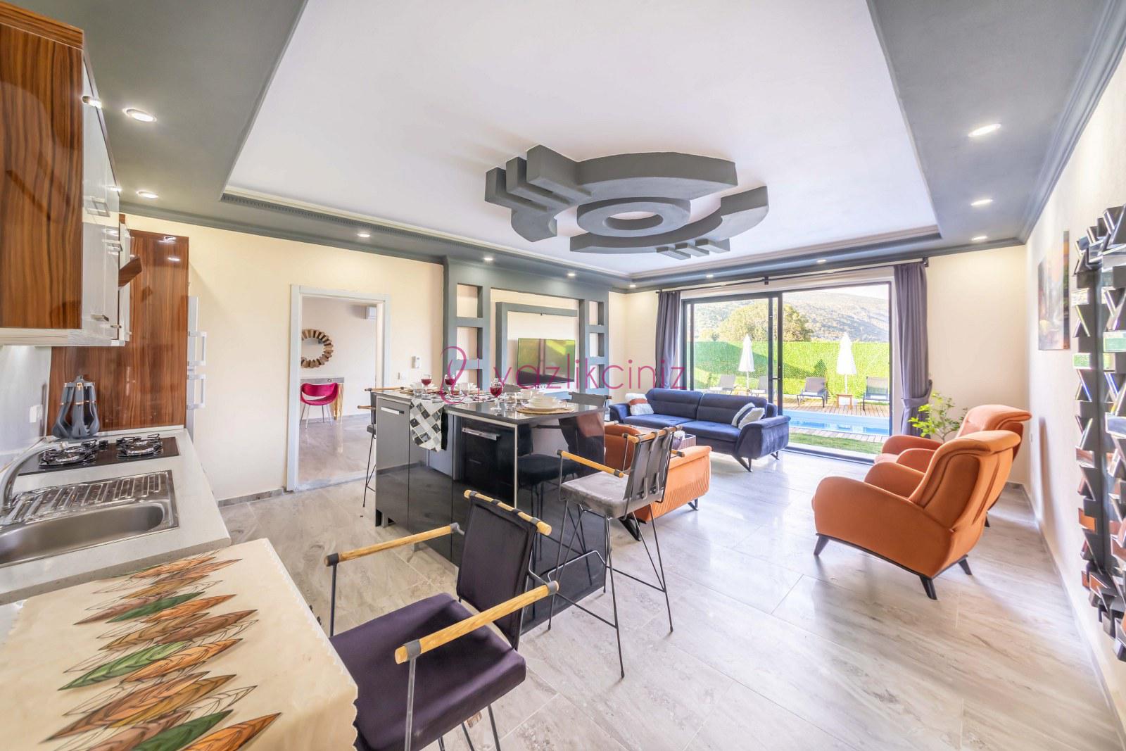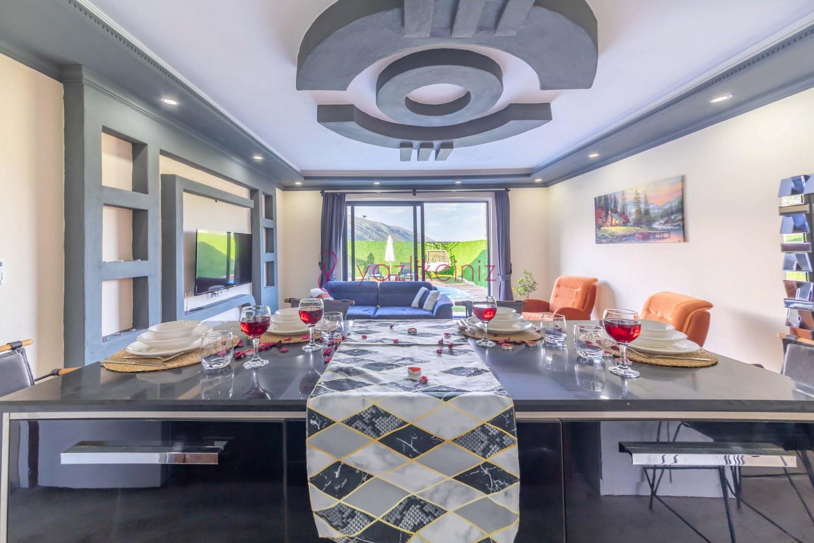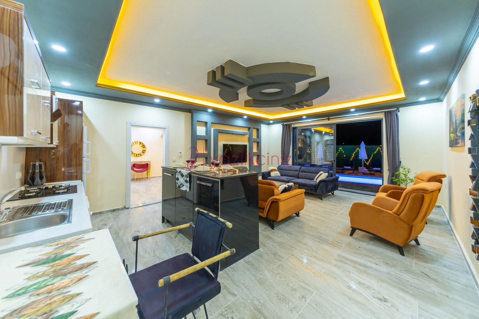 Salonumuzda oturma grubu, LCD TV, klima, sehpa bulunmaktadır. Havuz terasına çıkış yapılabilmektedir.
