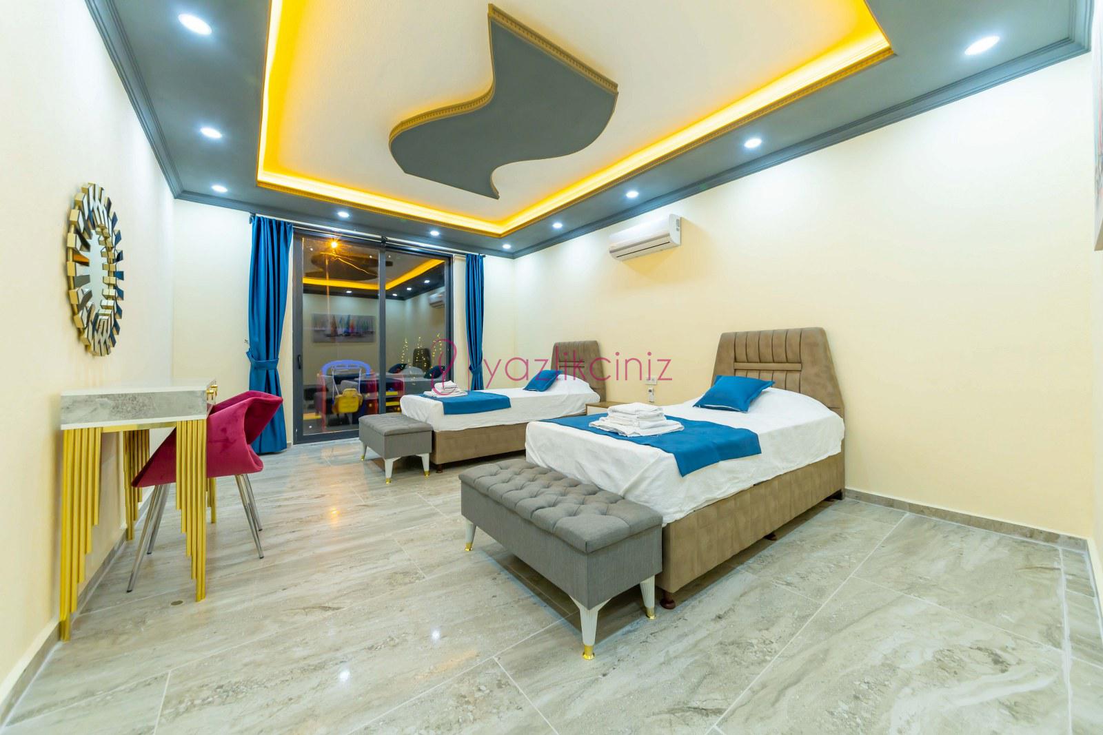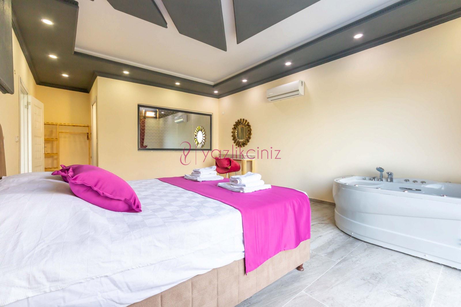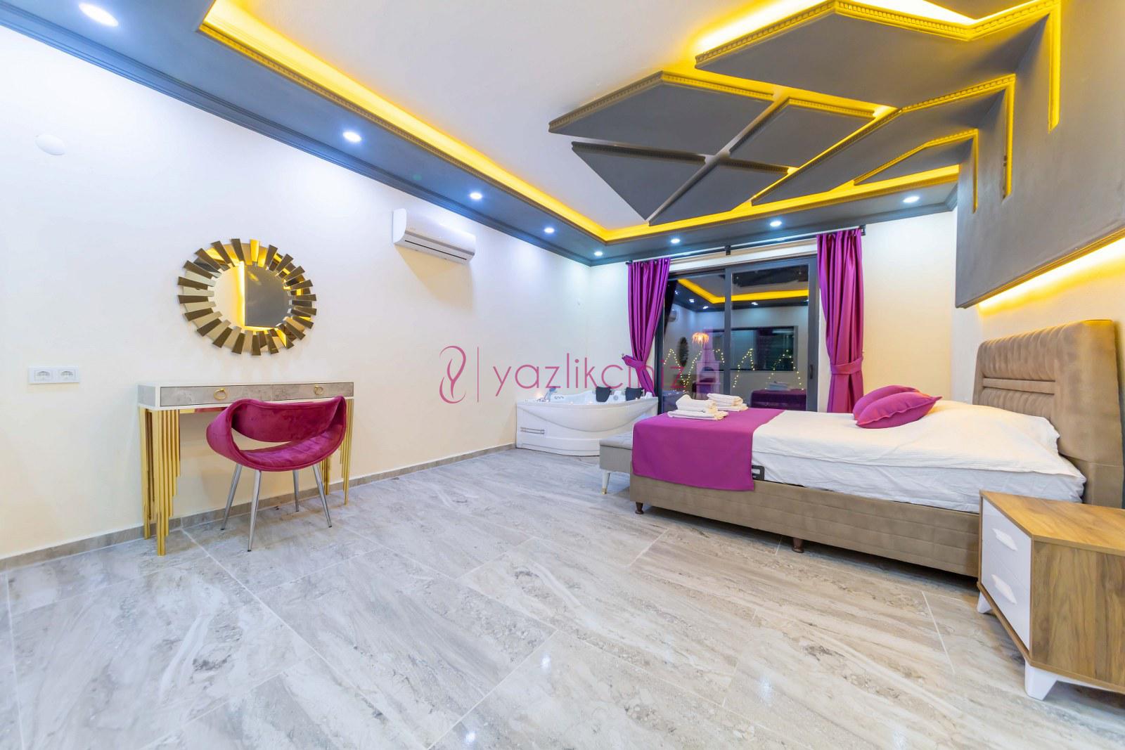 1.Yatak Odası: 1 adet çift kişilik yatak, elbise dolabı, makyaj masası, komodin, jakuzi, bulunmaktadır. Banyo ve tuvalet bulunmaktadır.