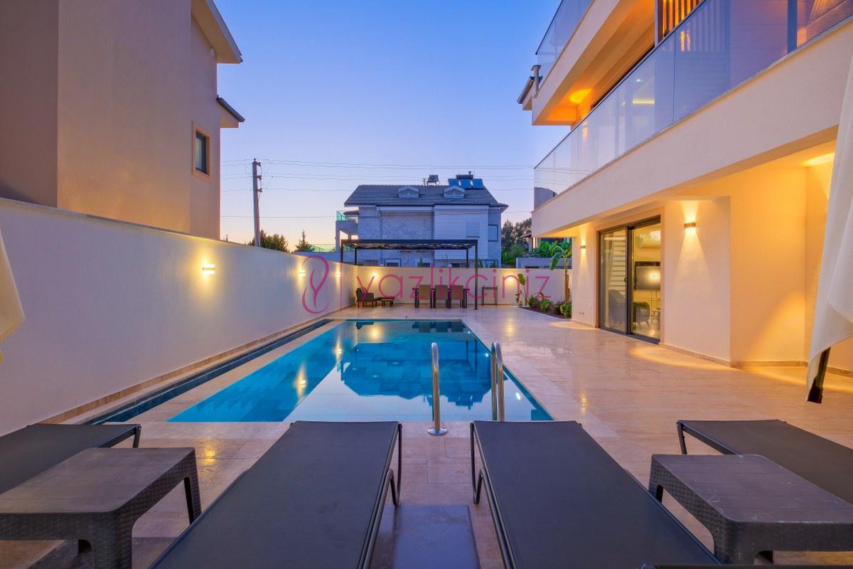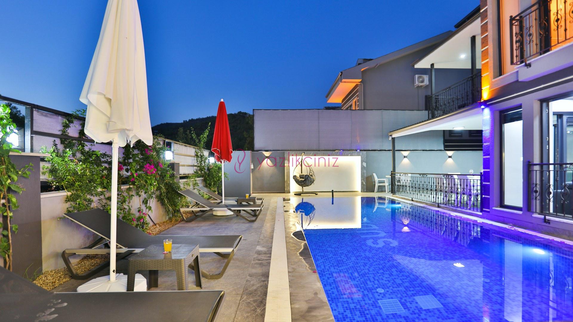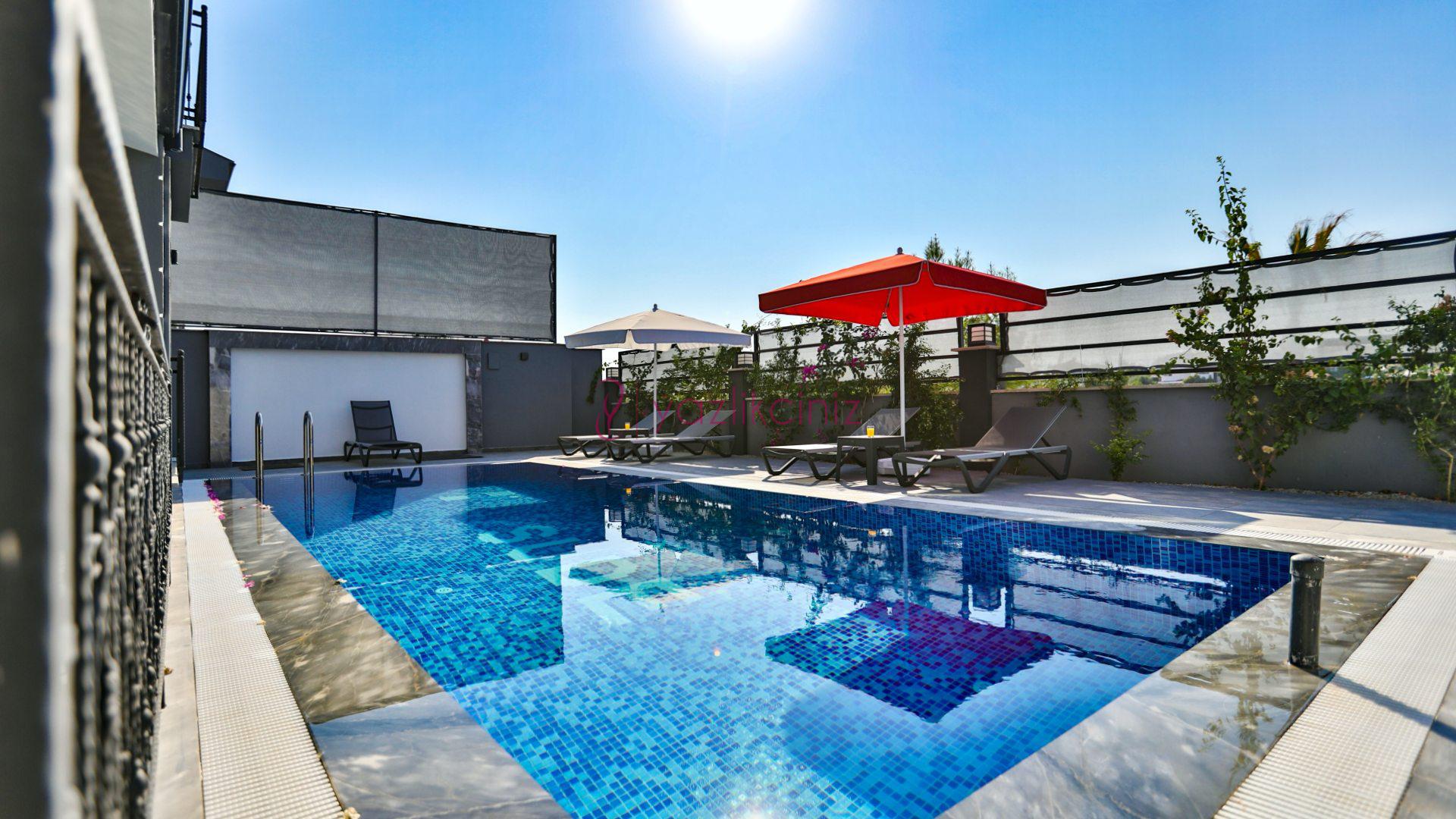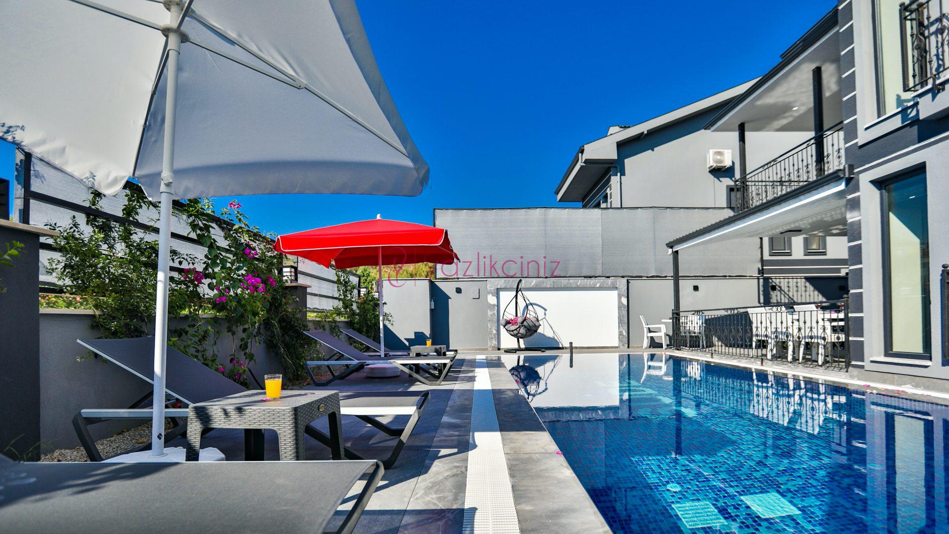 Özel bahçe içerisinde, Boyu 6 m Eni 4 m Derinlik: 150 cm ölçülerinde özel yüzme havuzu yer almaktadır.