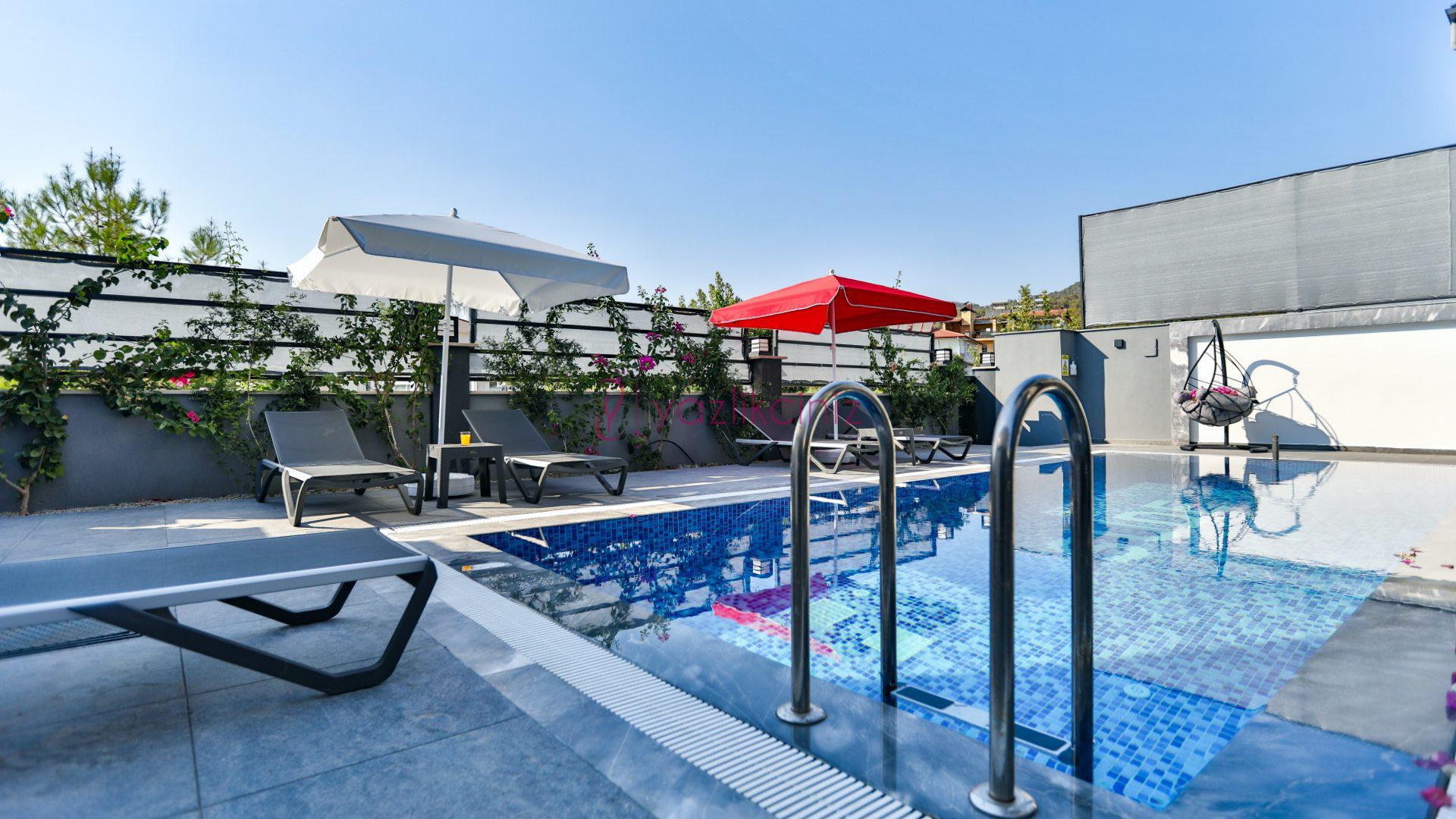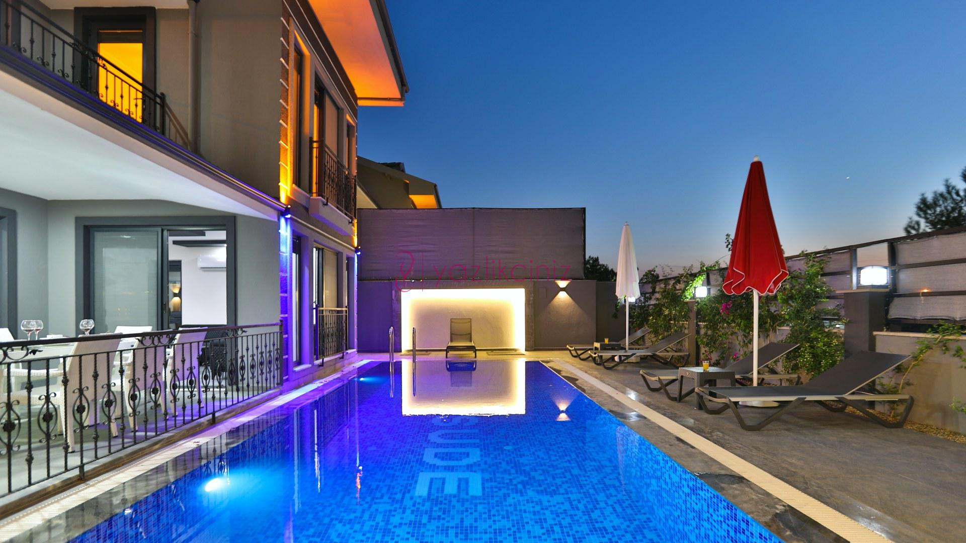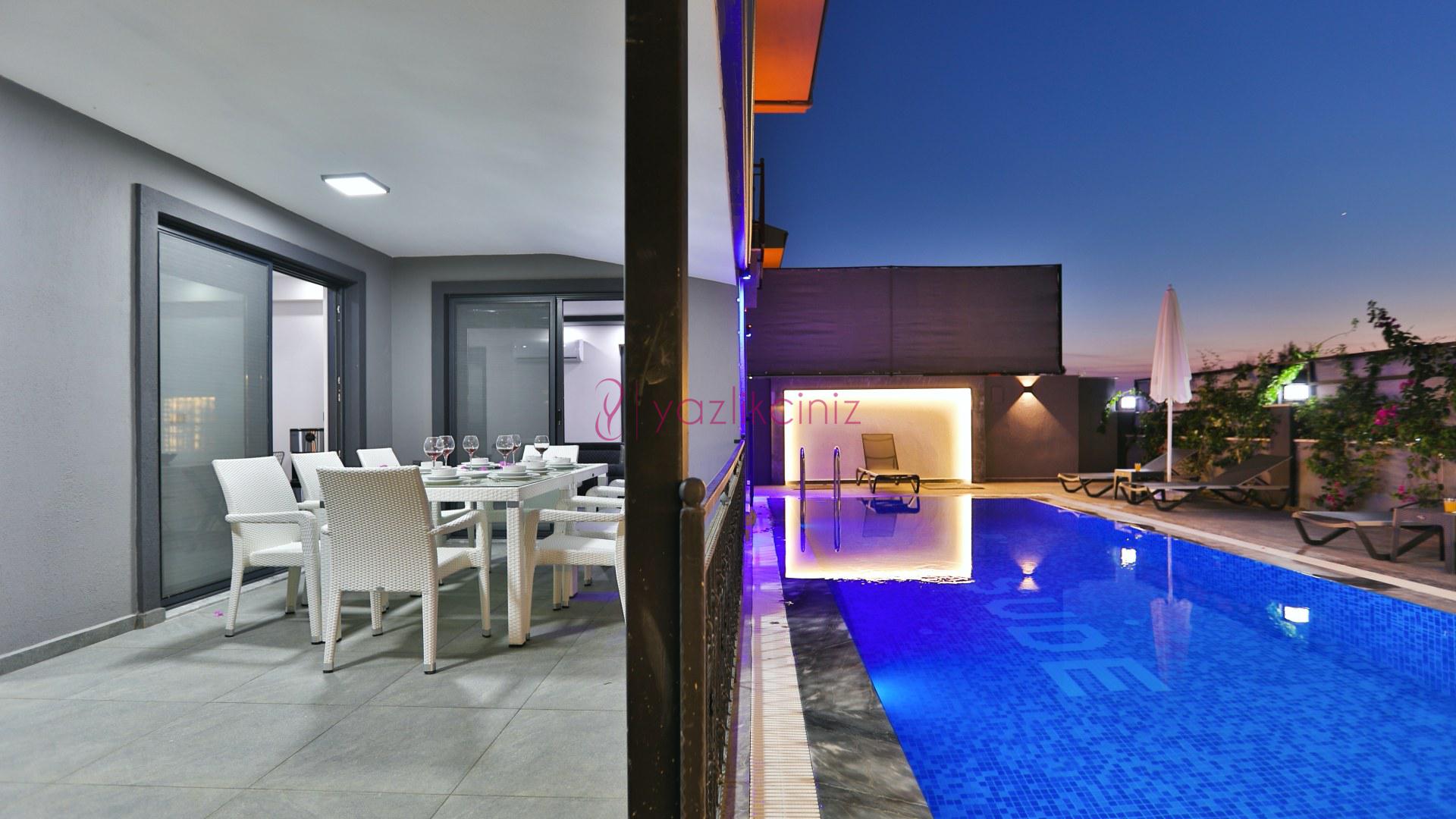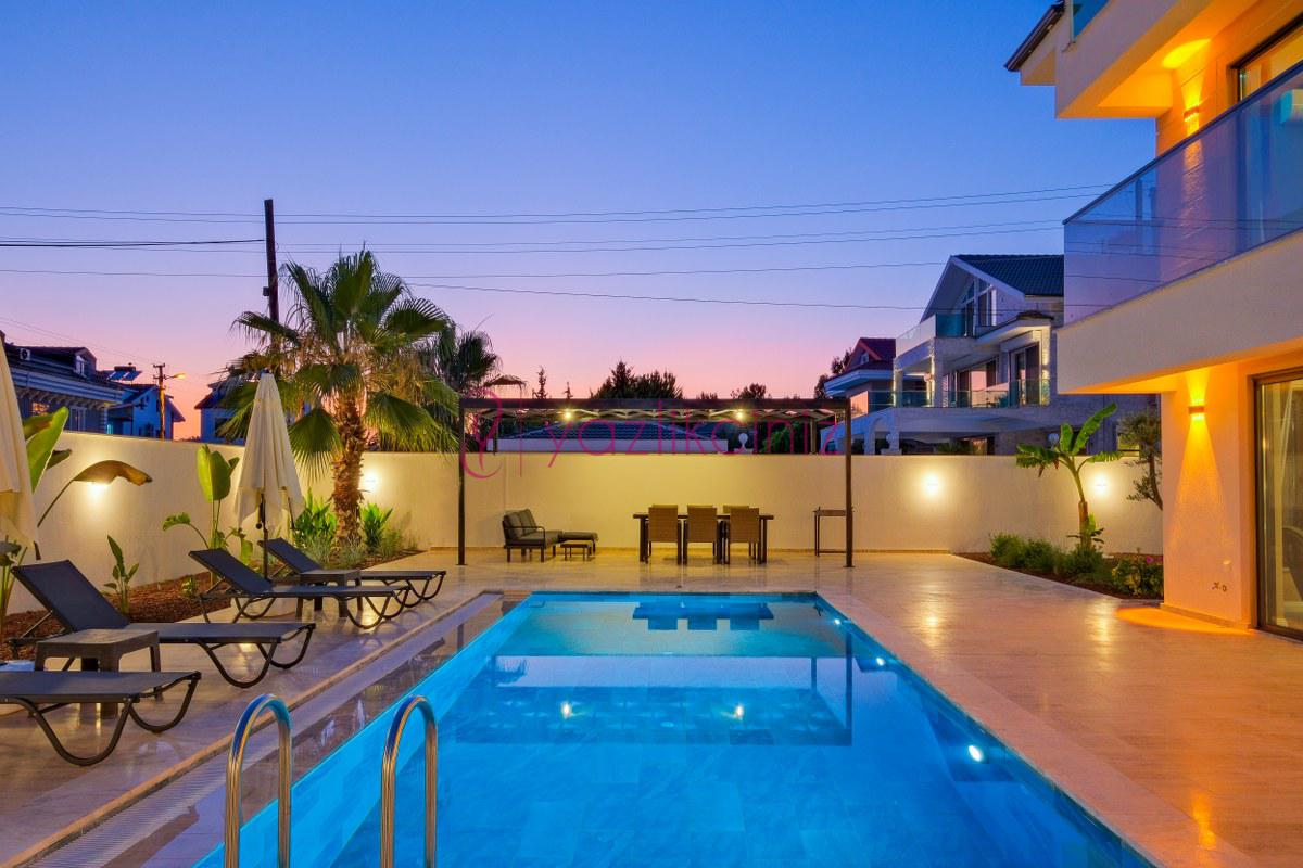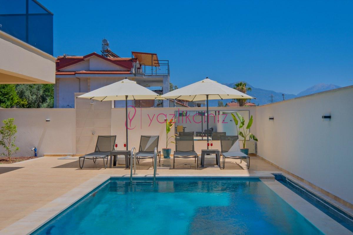Özel bahçe içerisinde, Boyu 6 m Eni 4 m Derinlik: 150 cm ölçülerinde özel yüzme havuzu yer almaktadır.