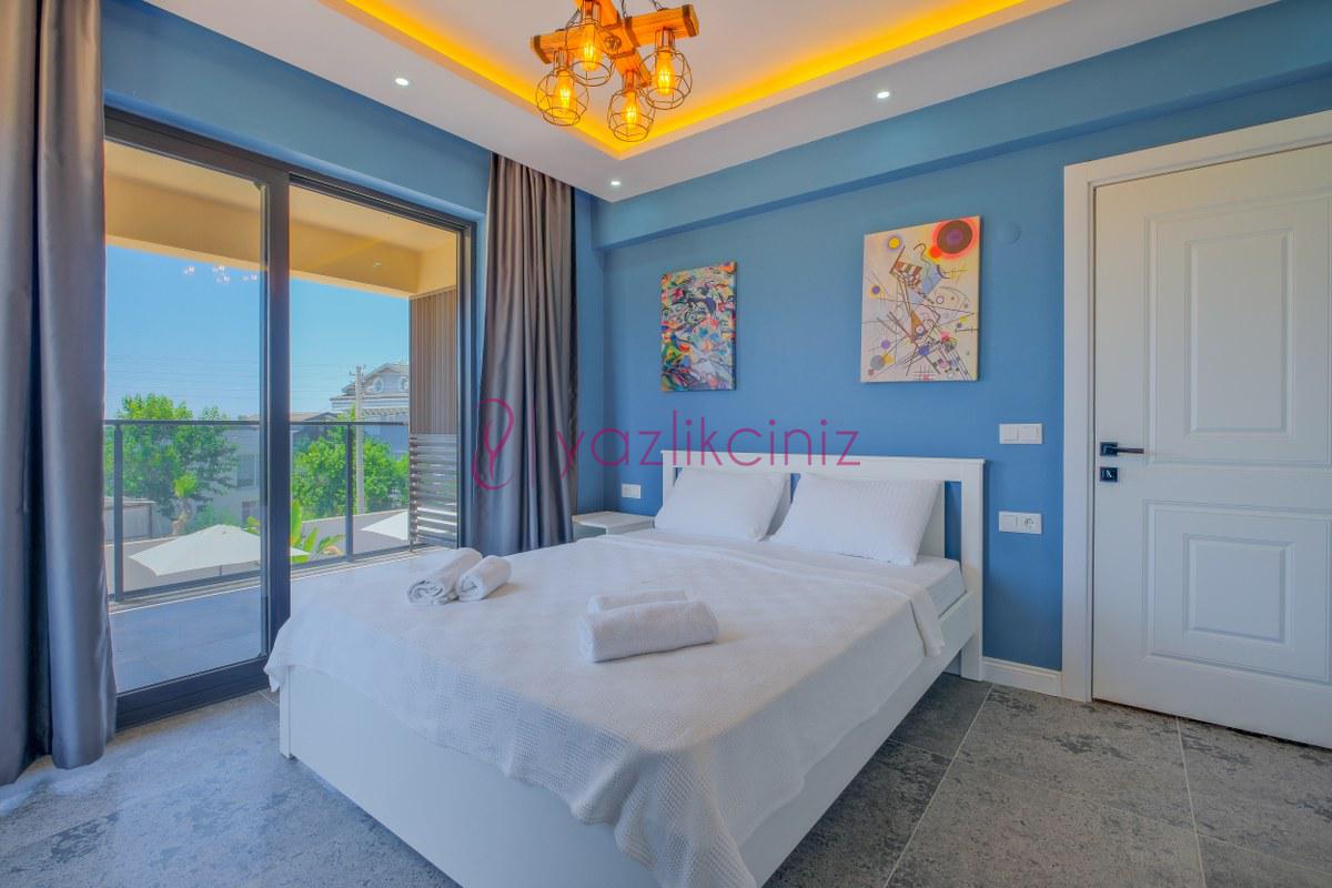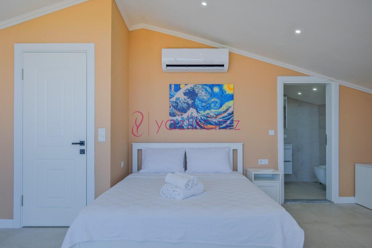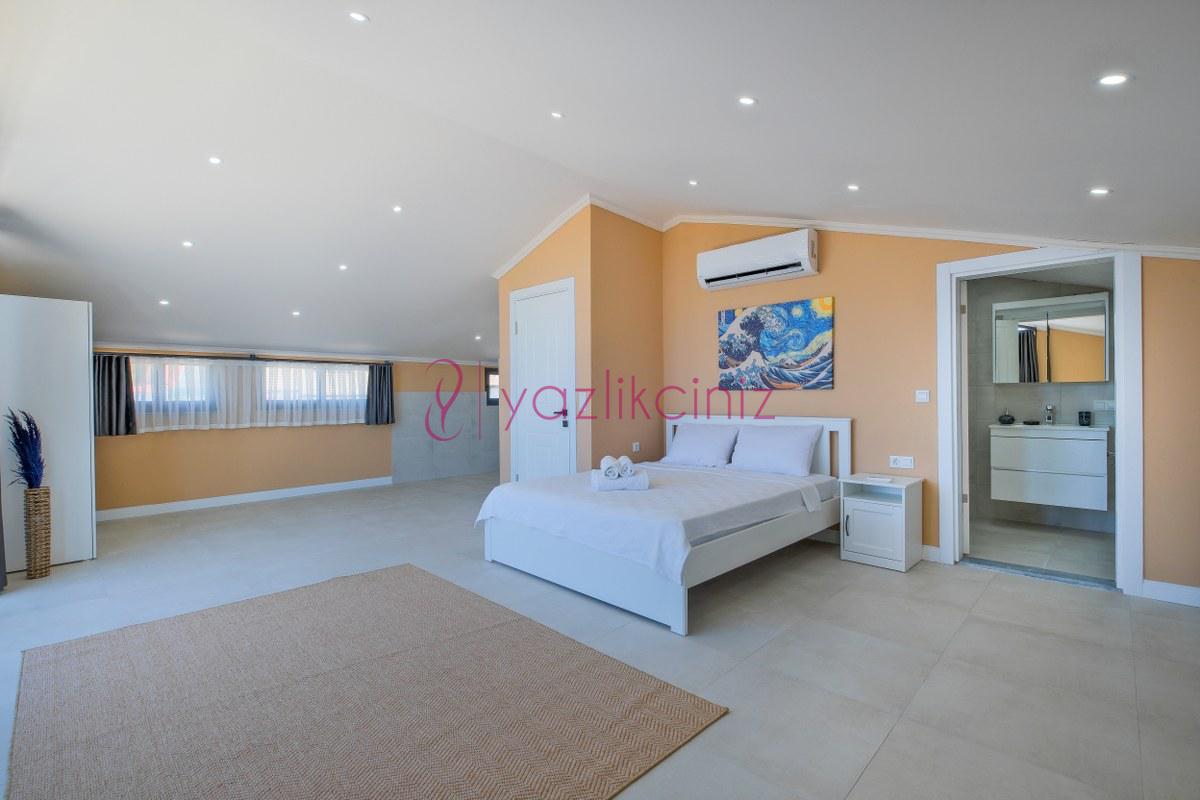 1.Yatak Odası: 1 adet çift kişilik yatak, elbise dolabı, makyaj masası, klima, banyo ve tuvalet bulunmaktadır.