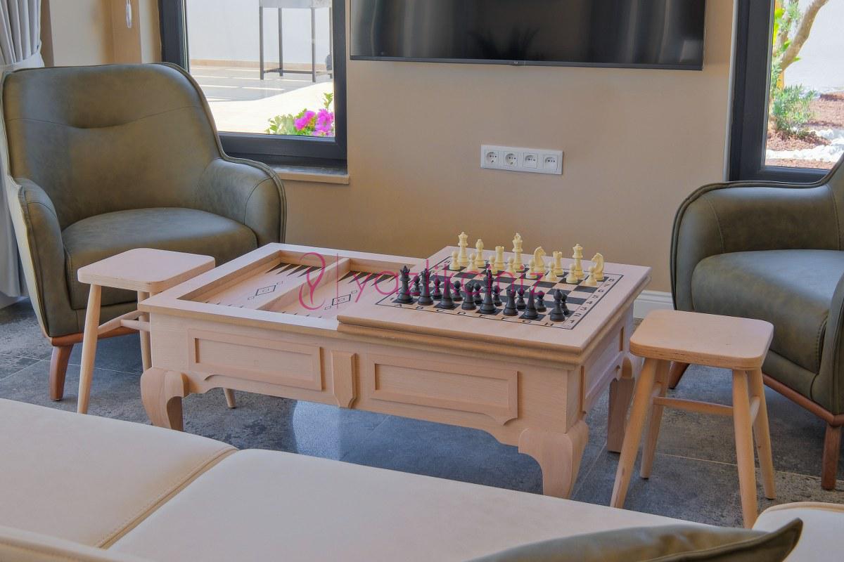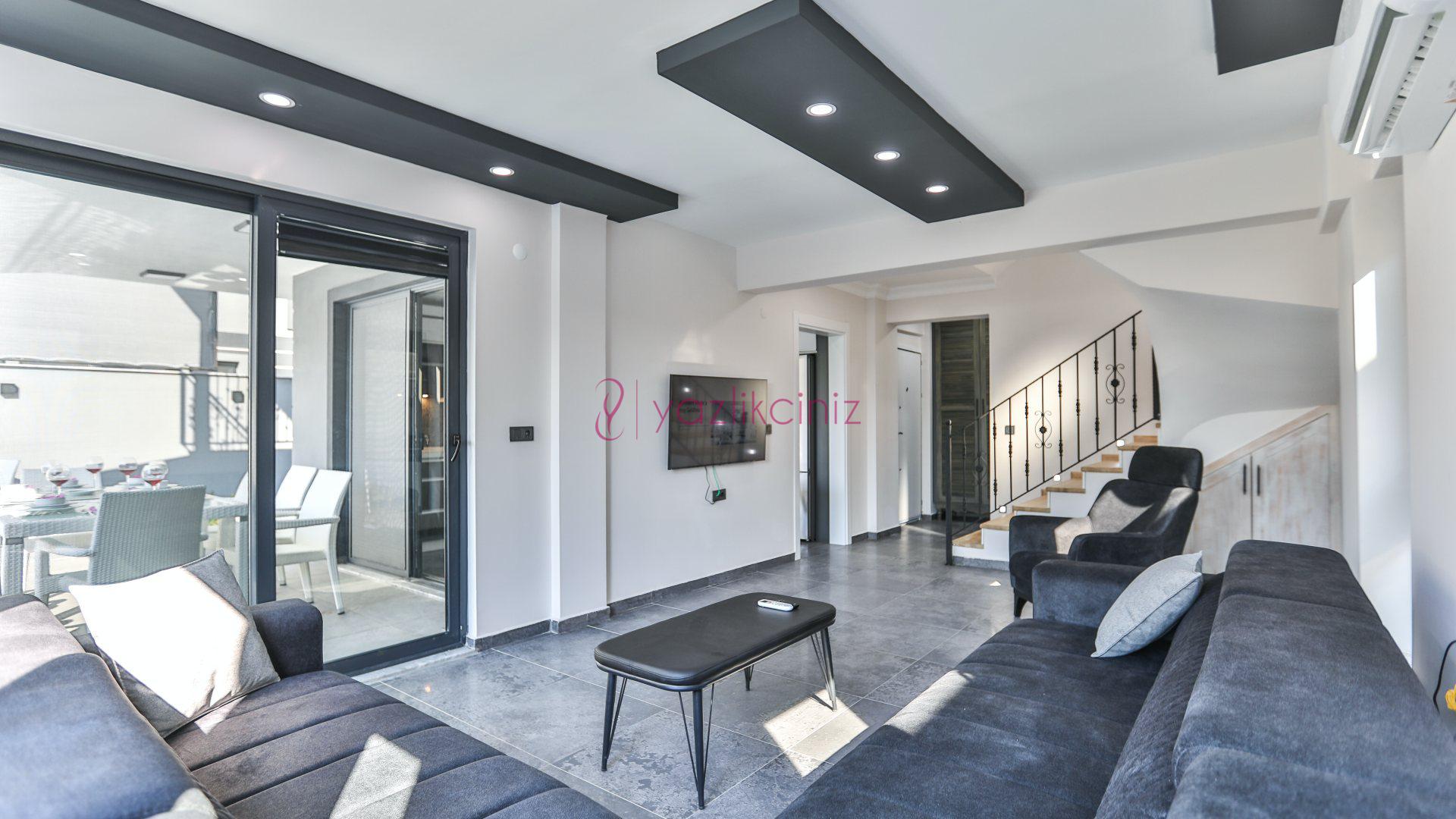 Salon içerisinde konforlu oturma grubu, sehpa, televizyon, uydu alıcı, klima ortak alan tuvalet banyo bulunmaktadır.