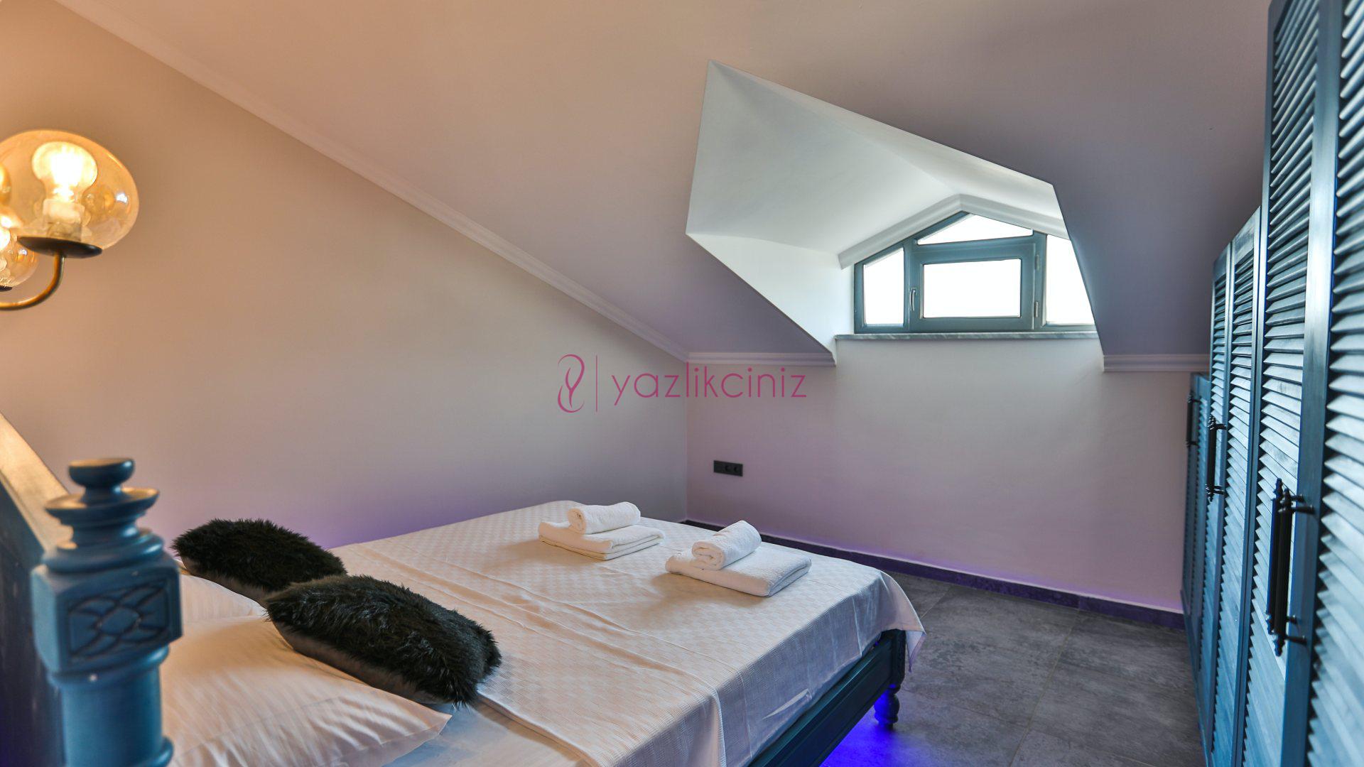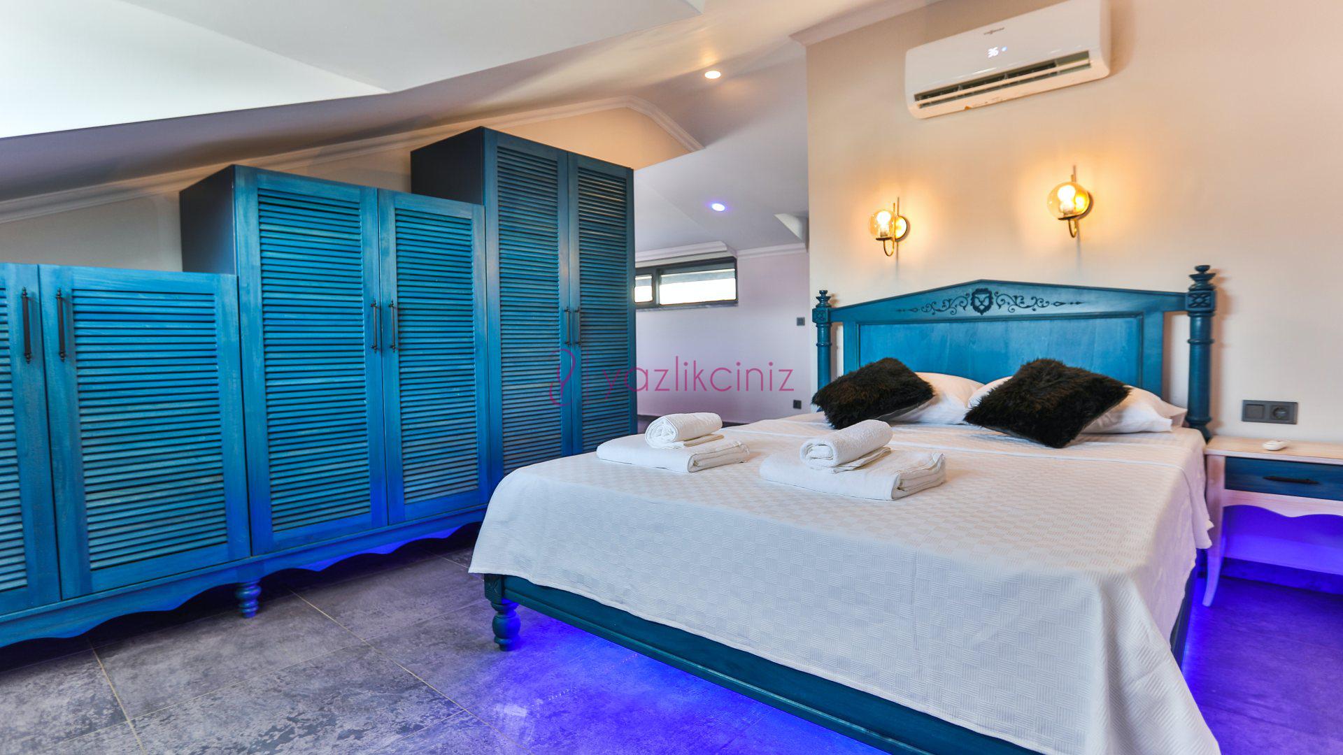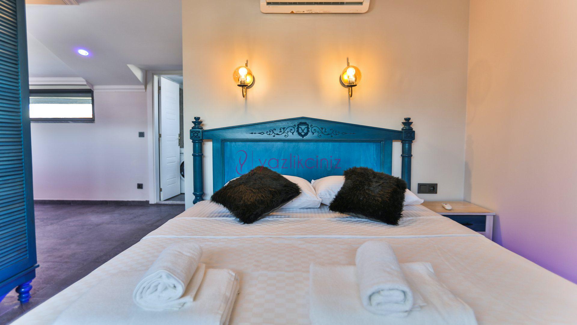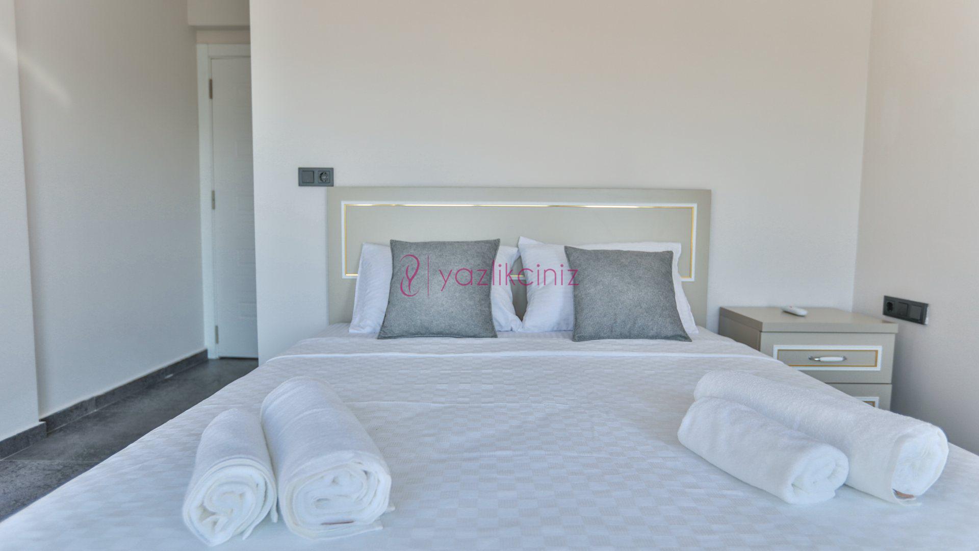 2.Yatak Odası: 1 adet çift kişilik yatak, elbise dolabı, makyaj masası, klima bulunmaktadır. (ortak tuvalet banyo.)